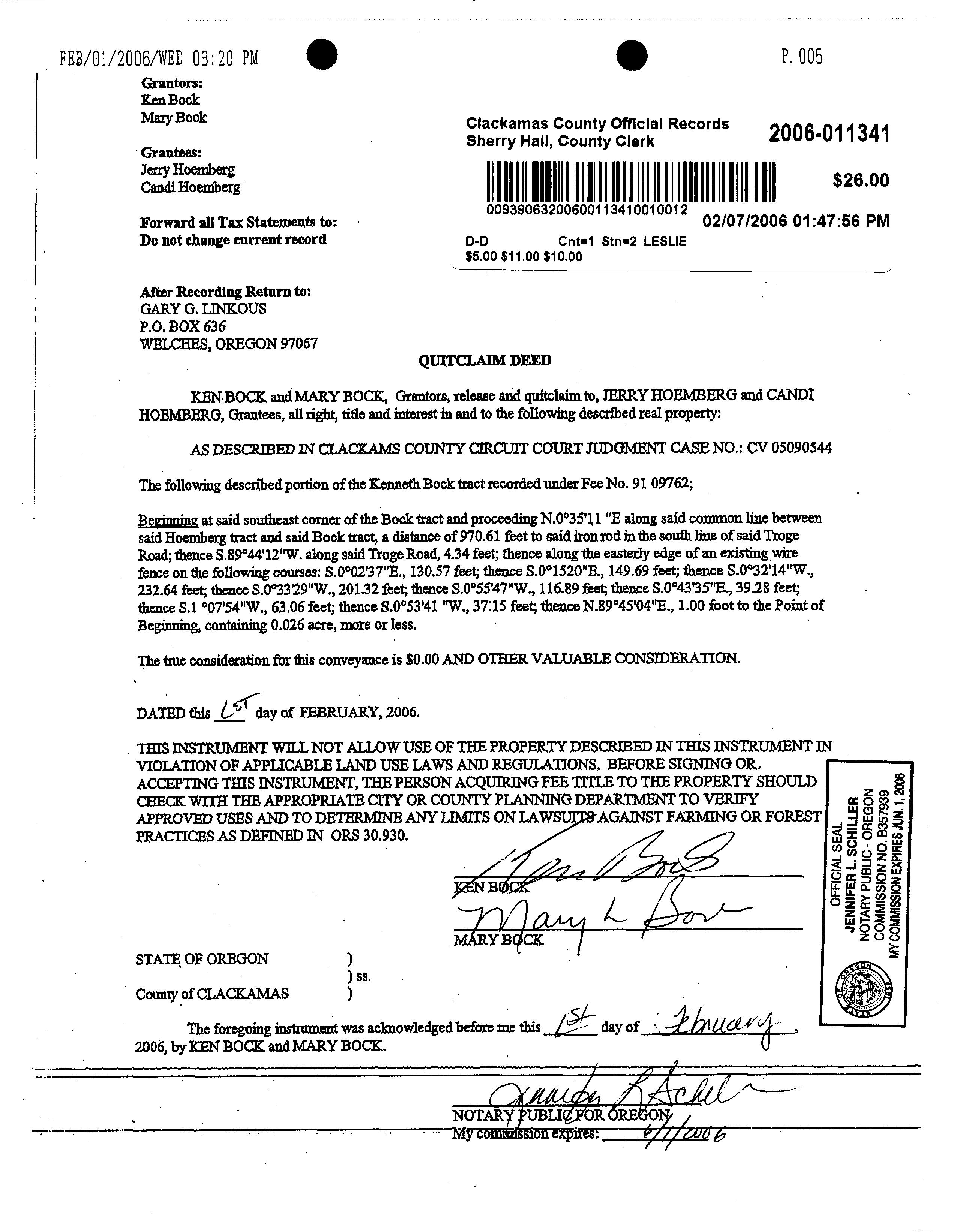 Property Transfer Filing No.: 140783 03/16/2006 by LAURIEB