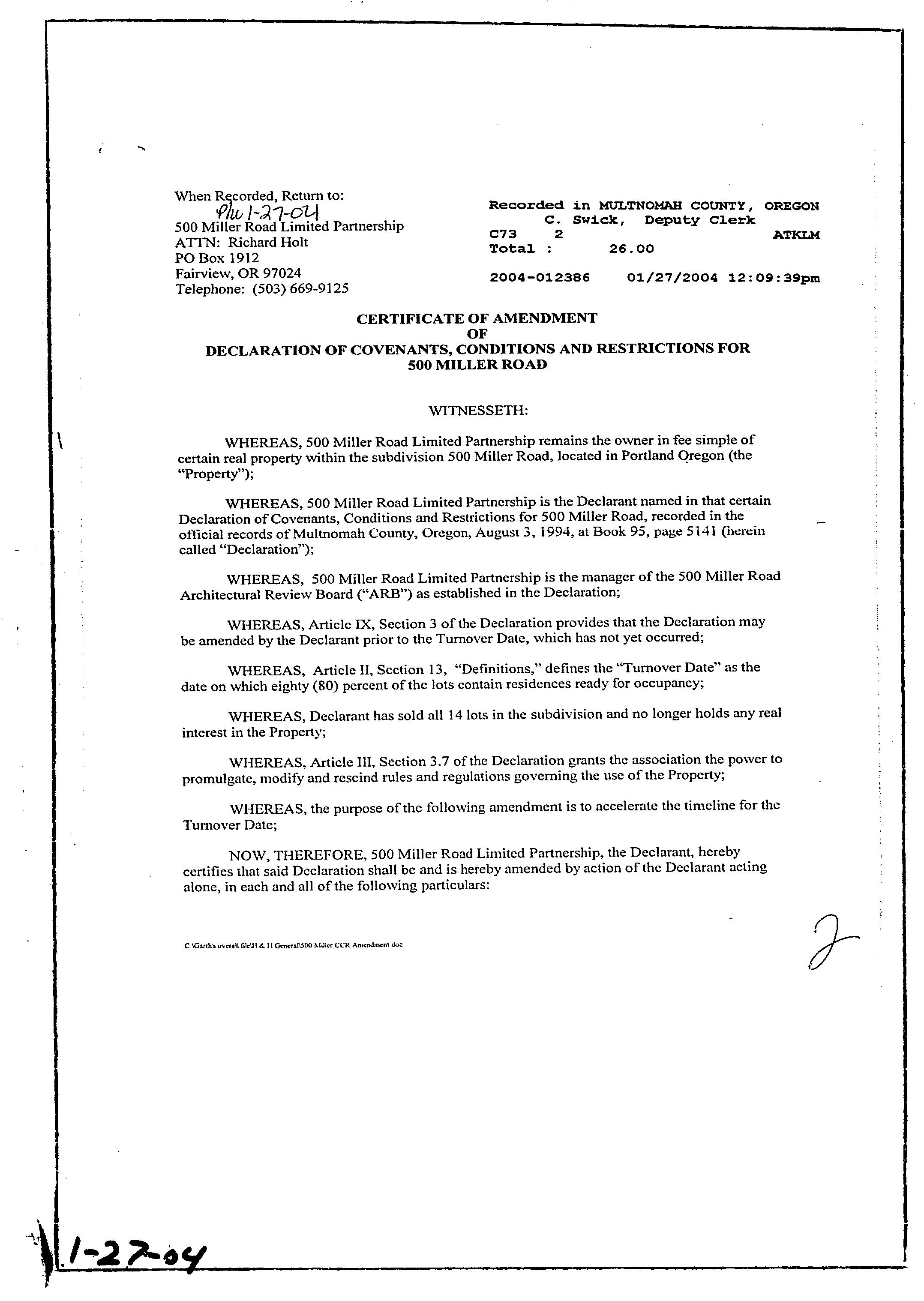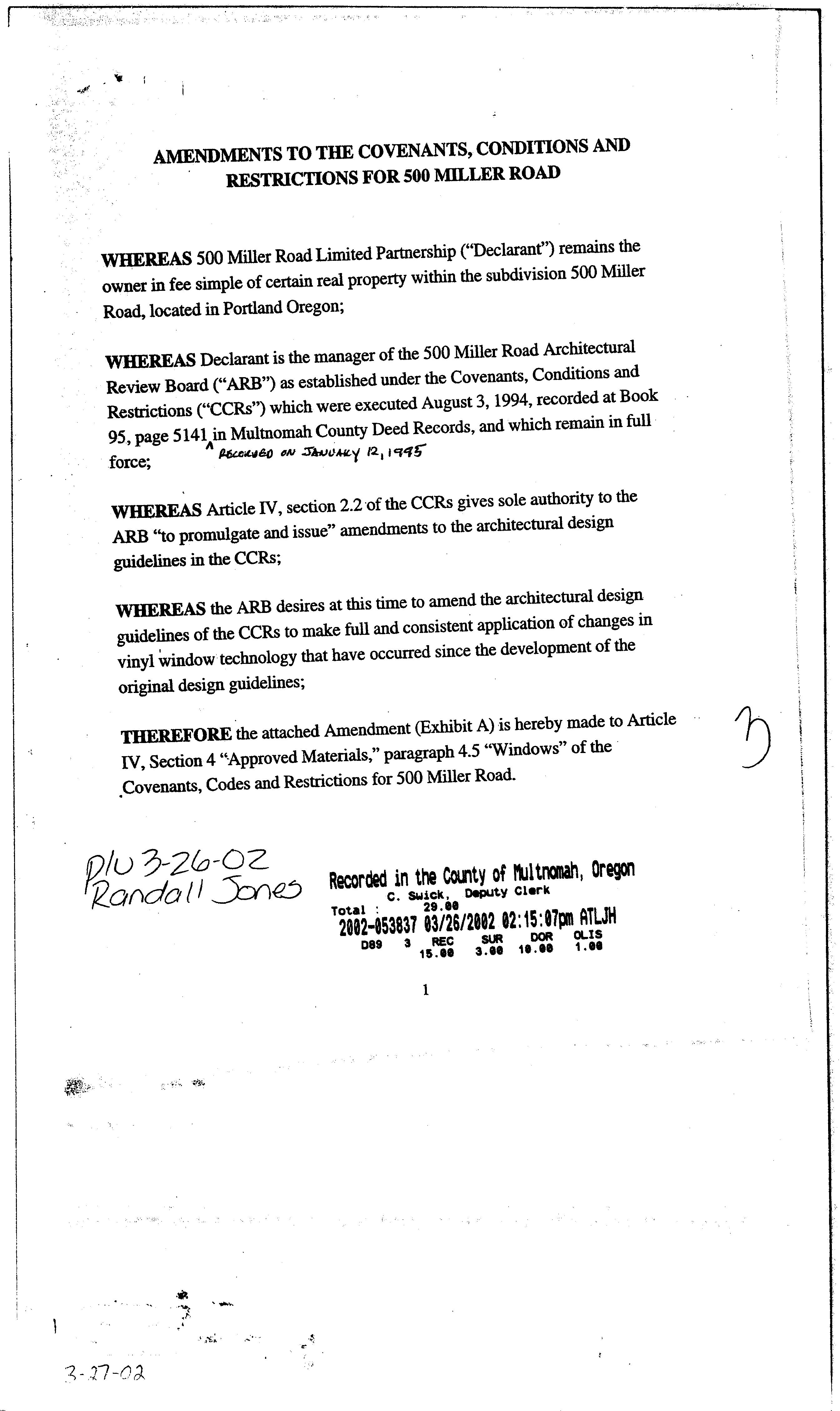 CCR's - 500 Miller Road