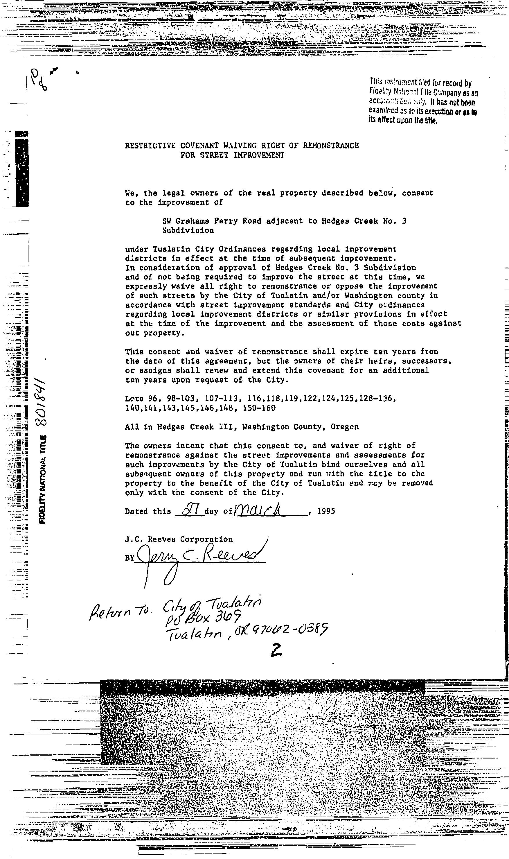 CCR's - Hedges Creek 3