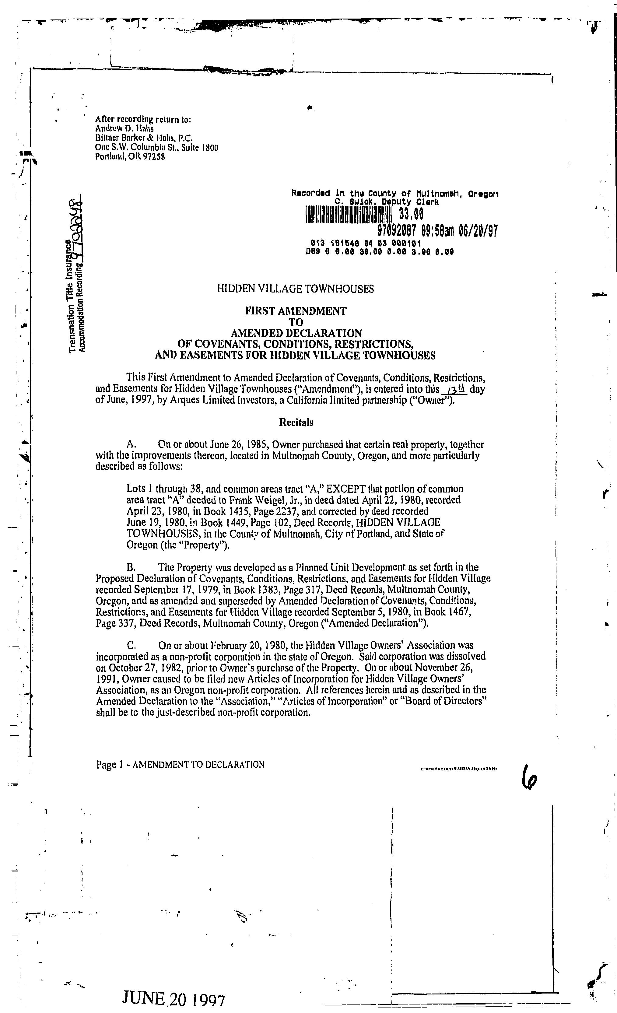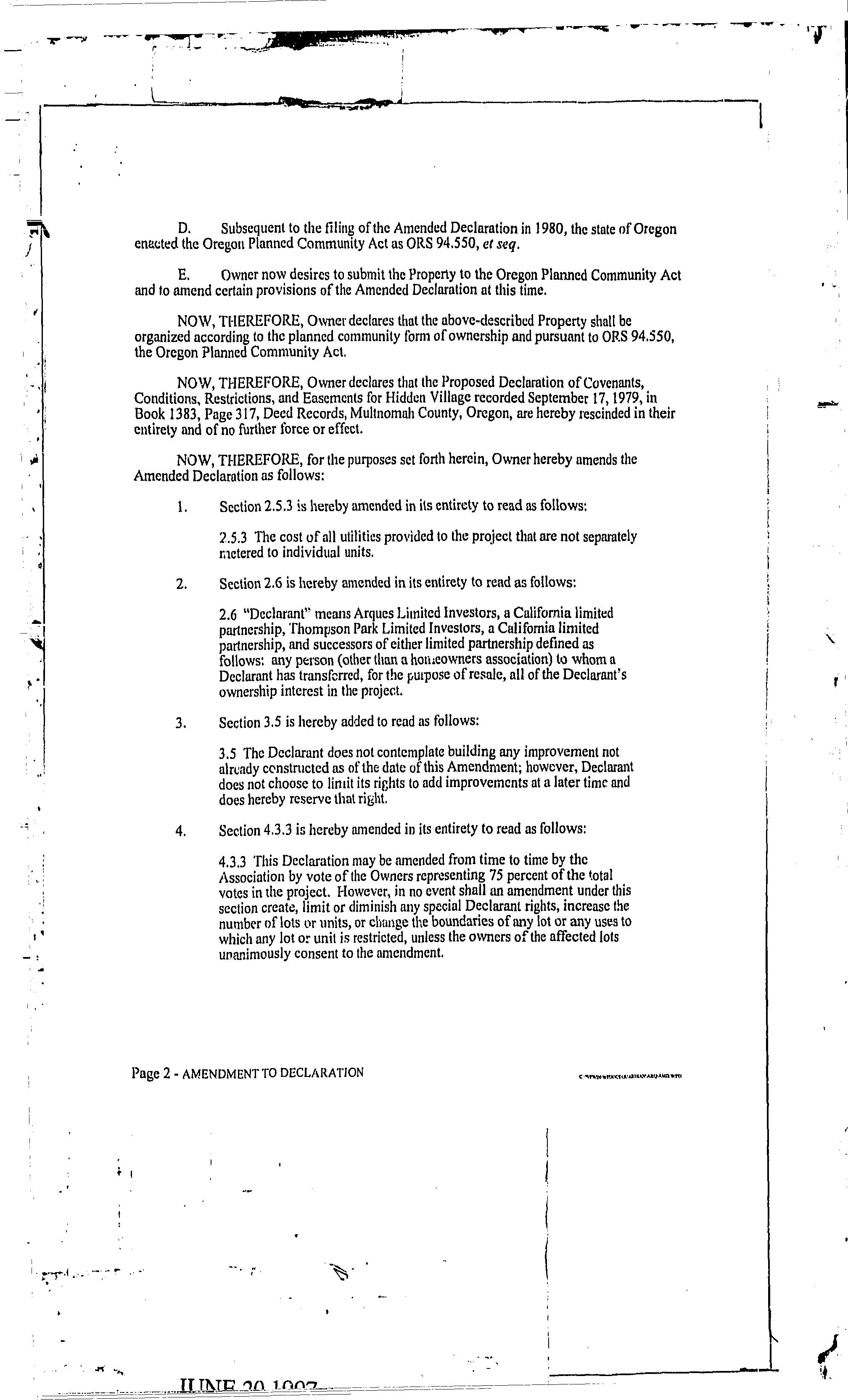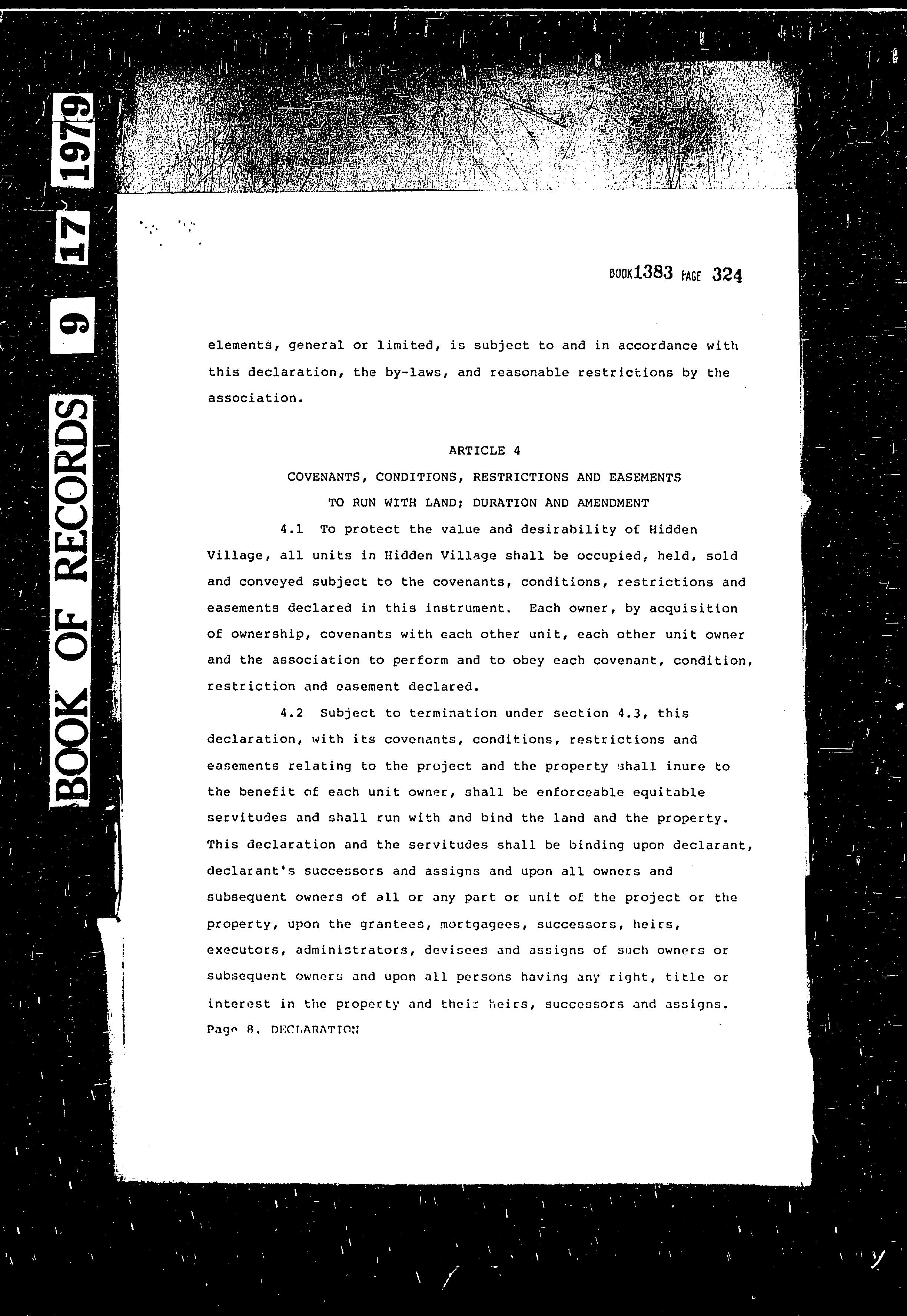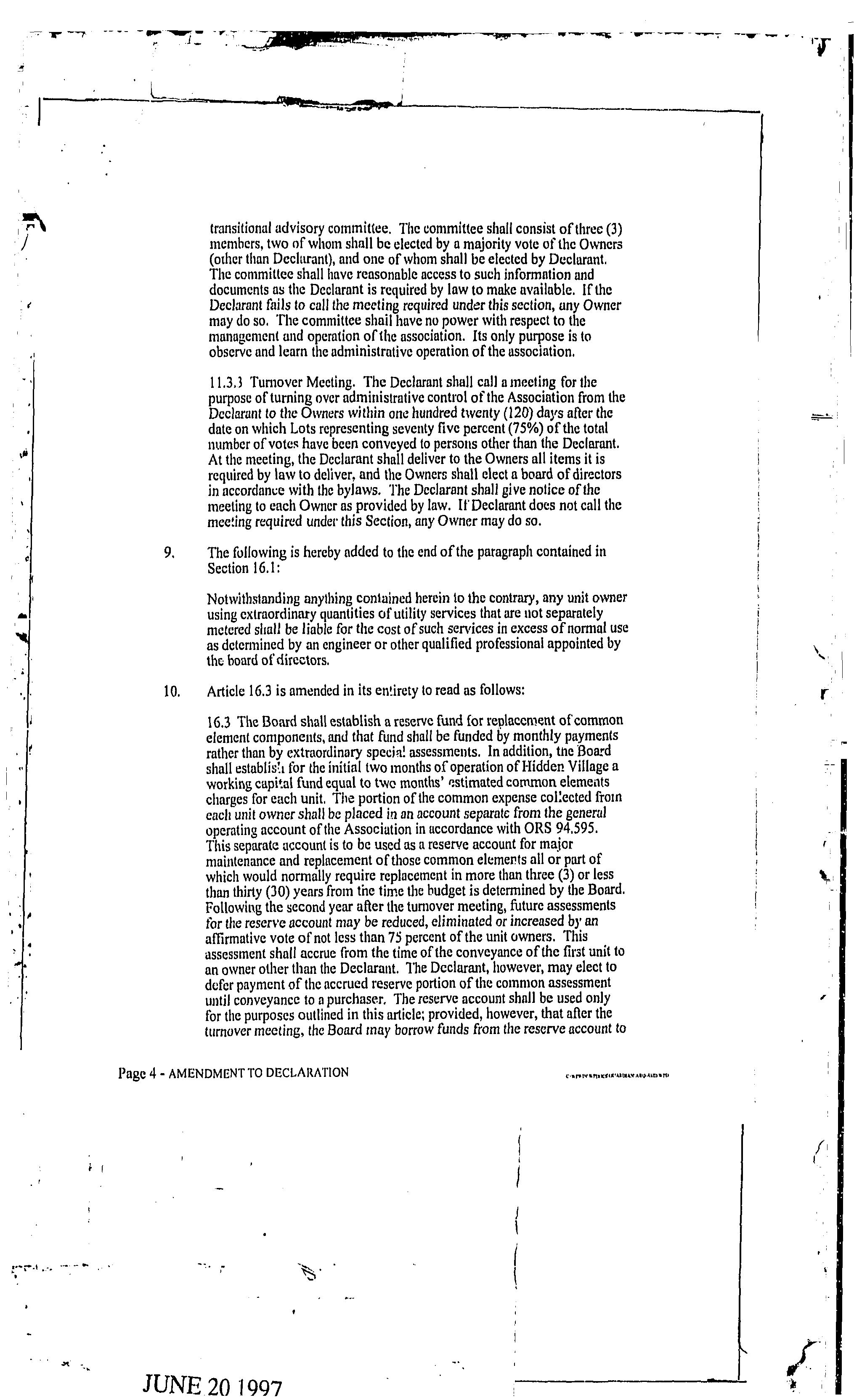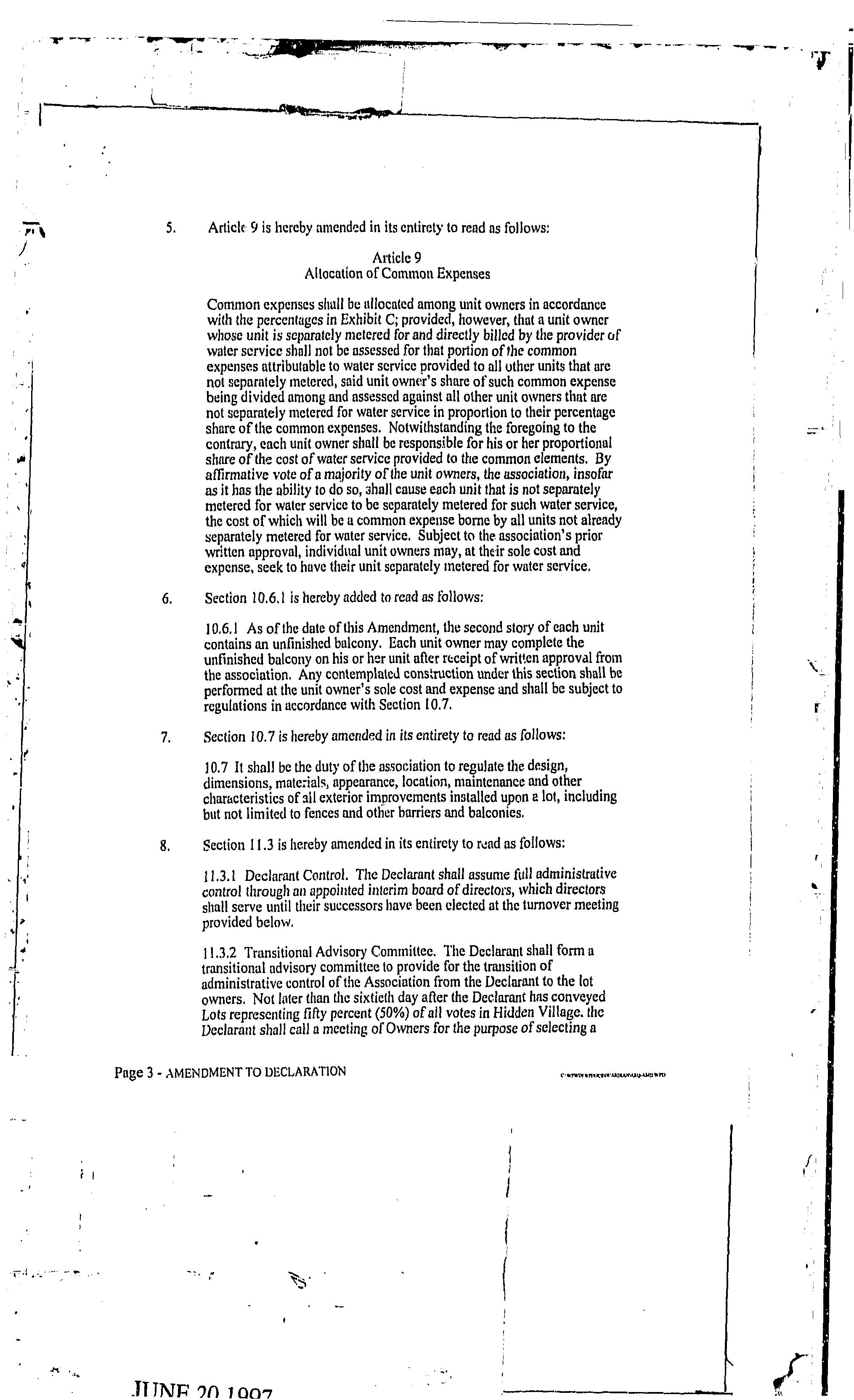 CCR's - Hidden Village Townhomes