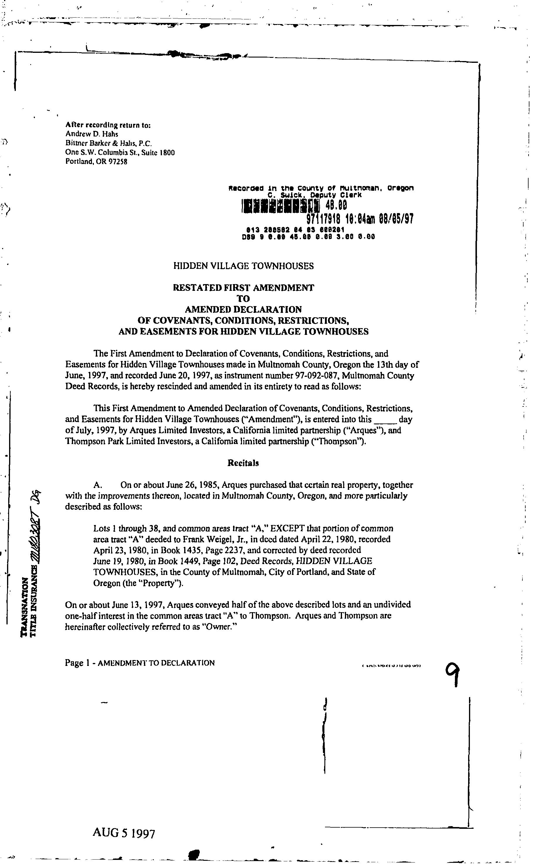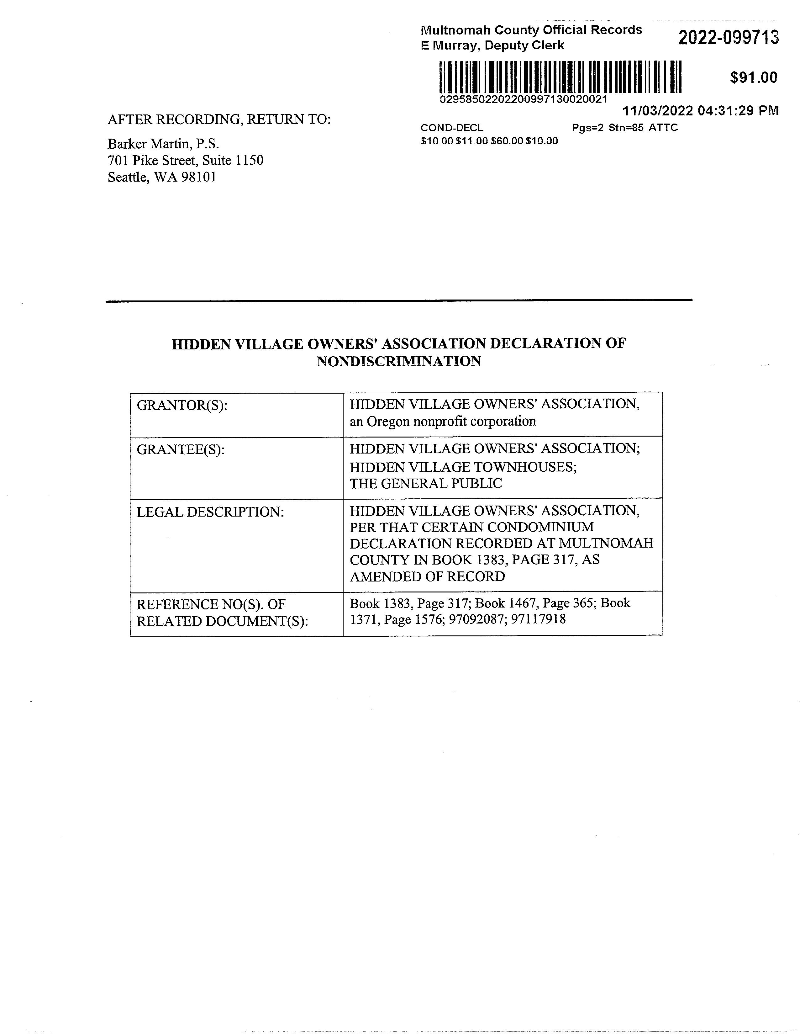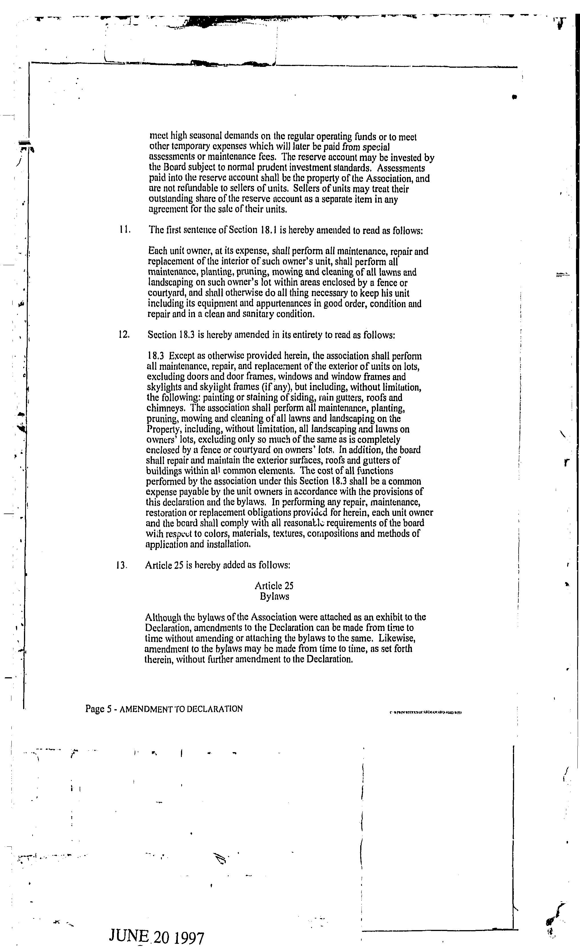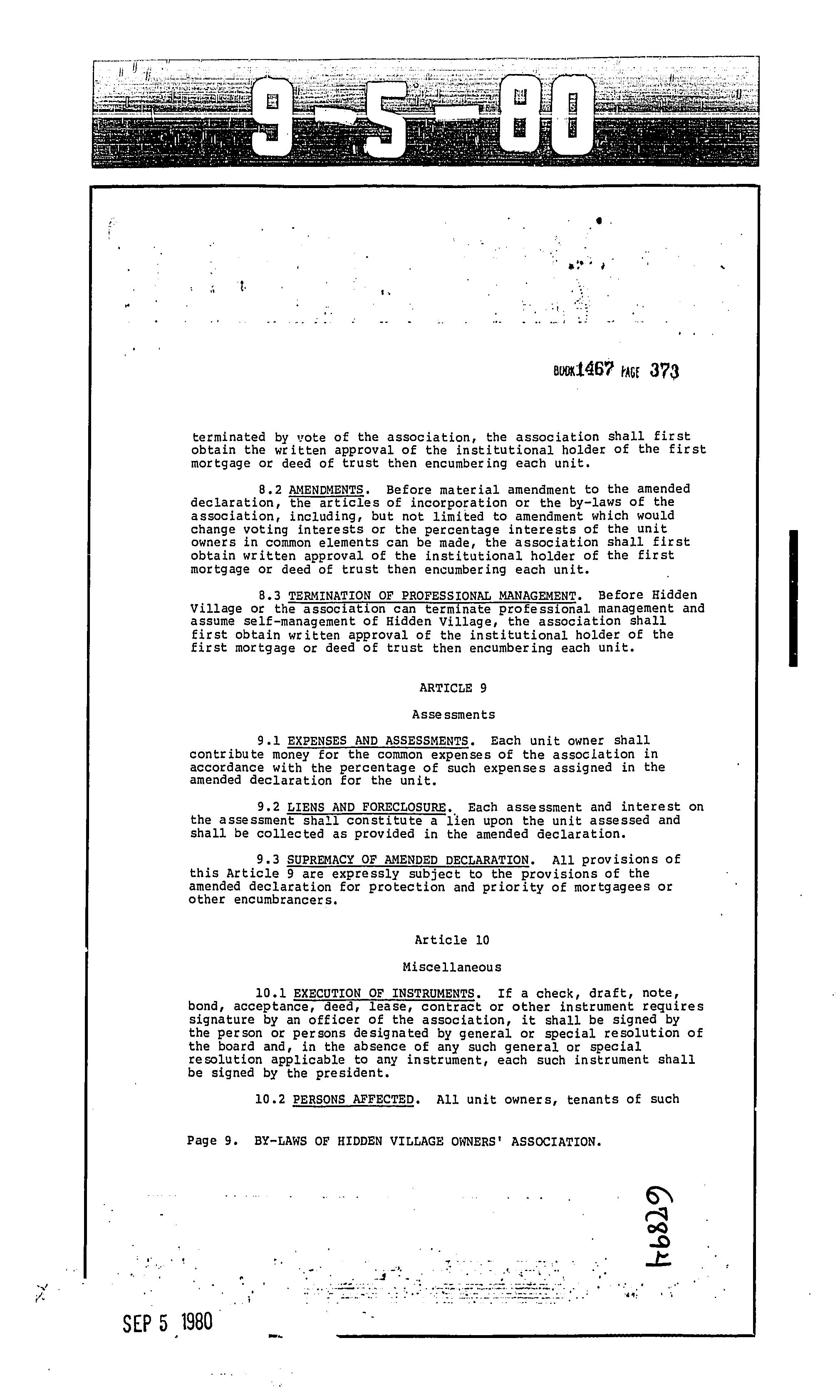 CCR's - Hidden Village Townhomes