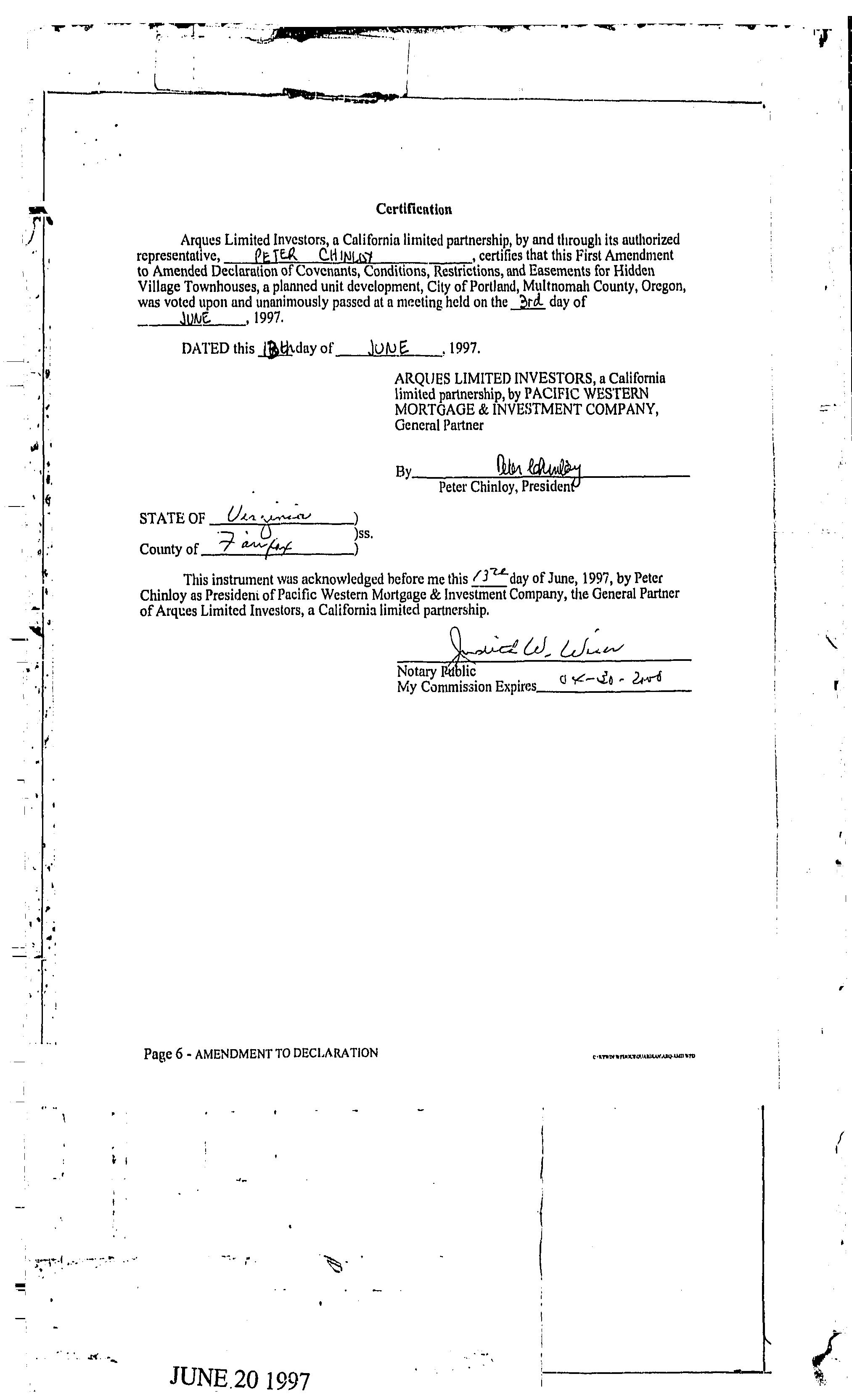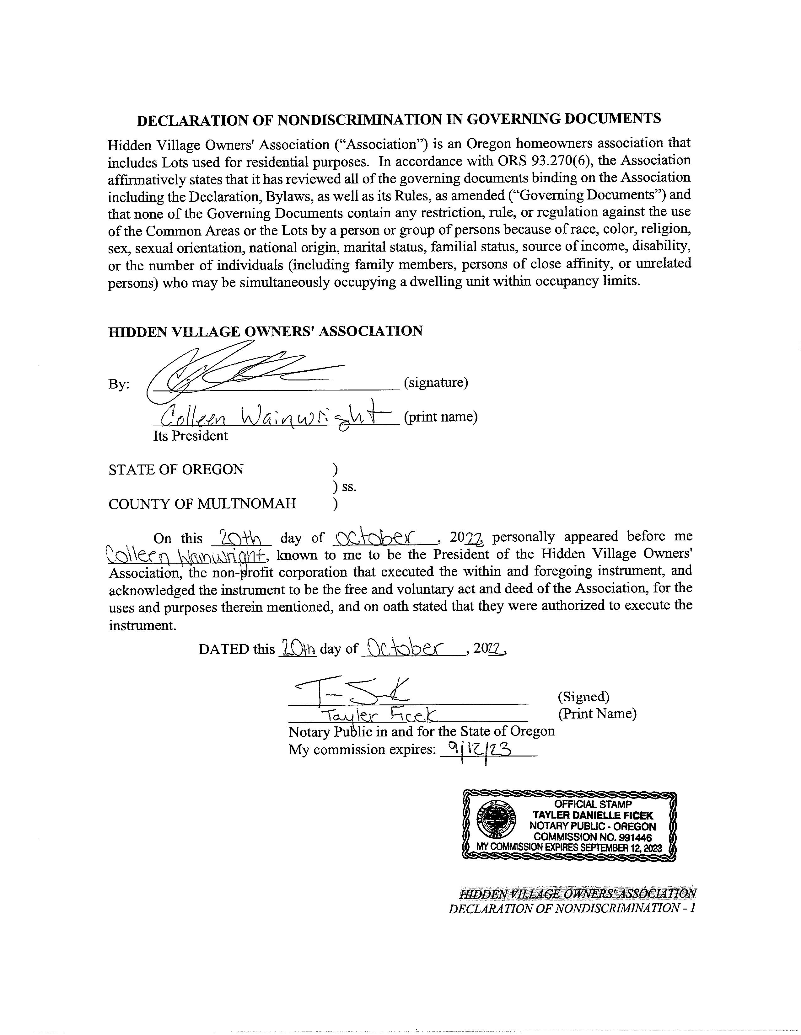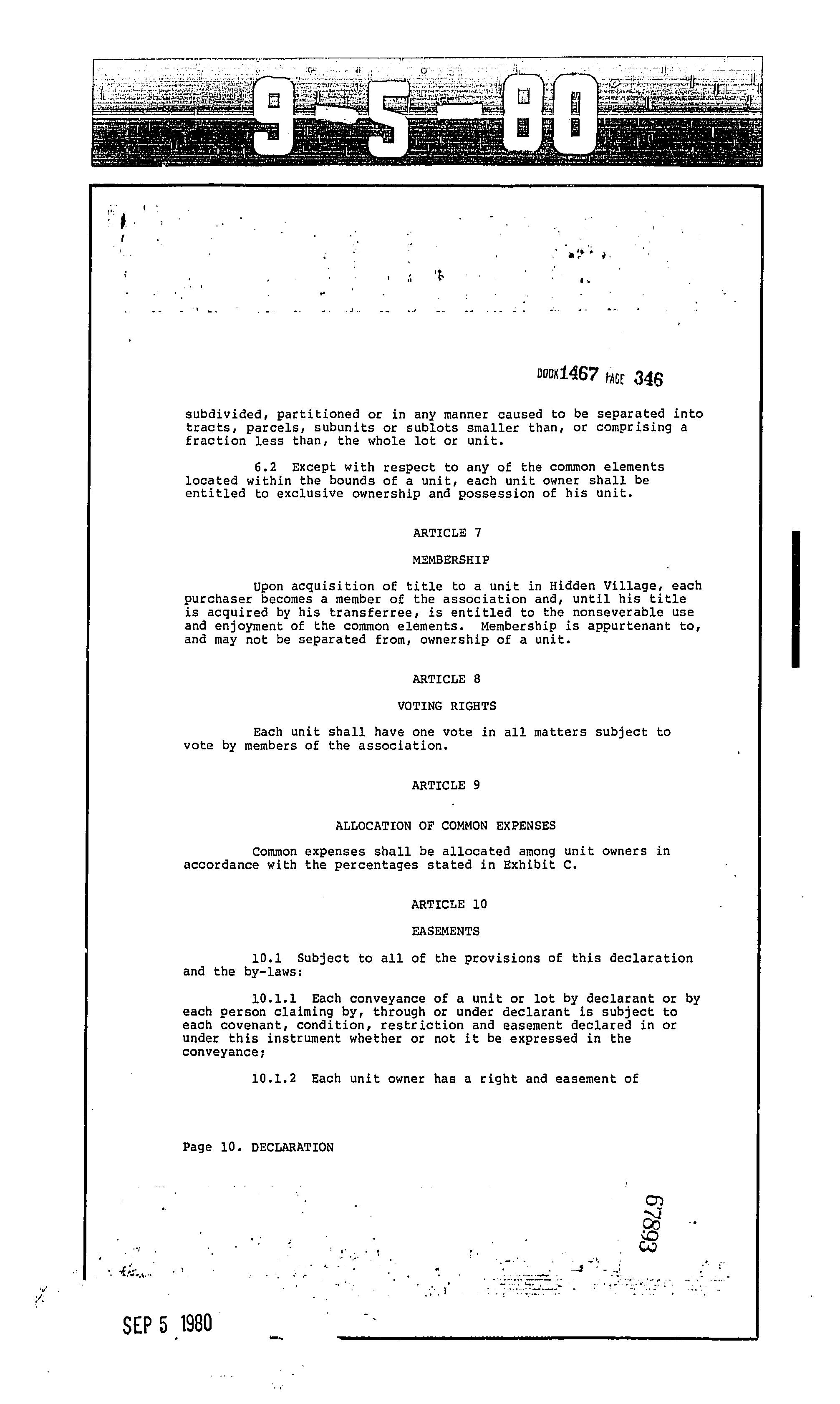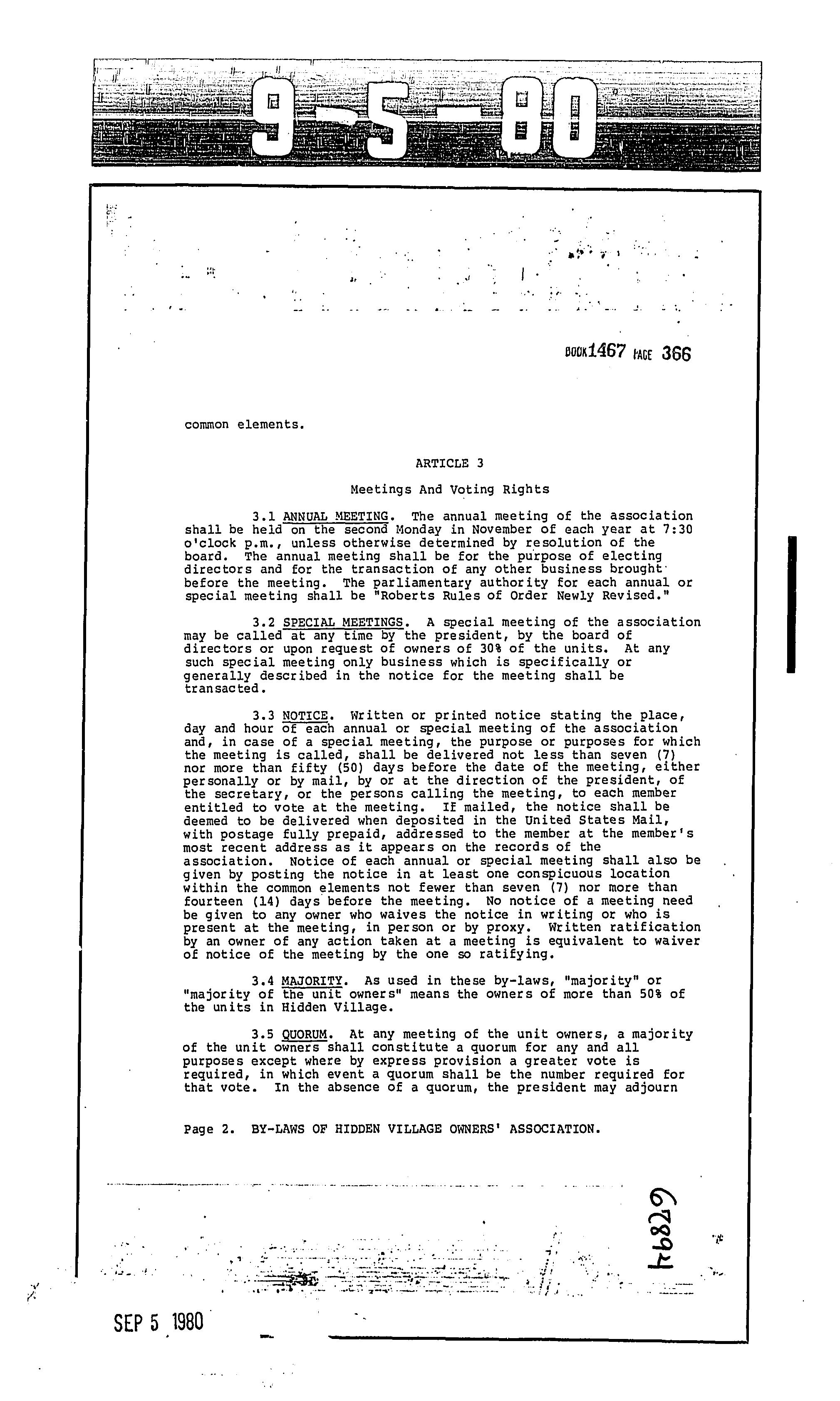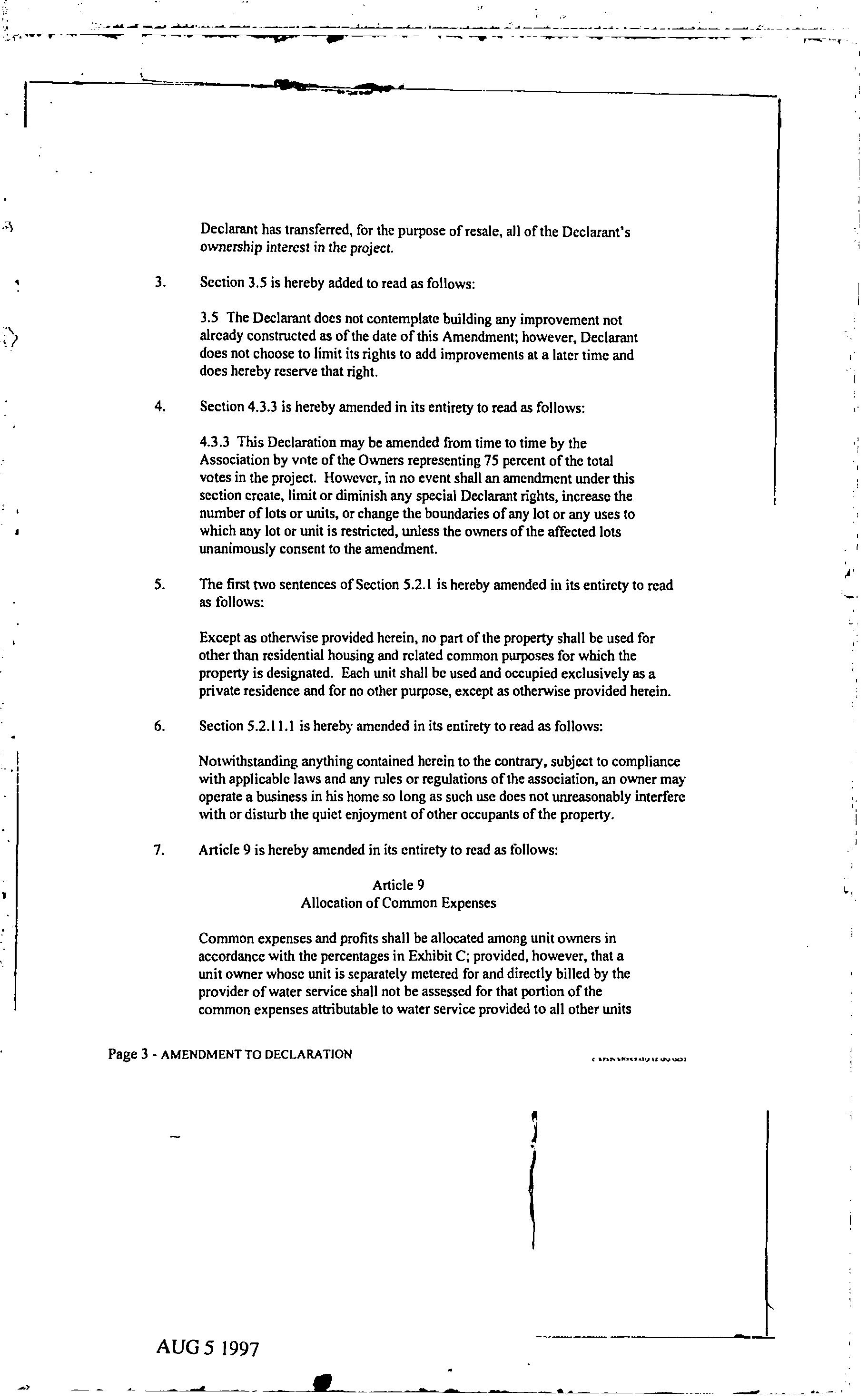 CCR's - Hidden Village Townhomes