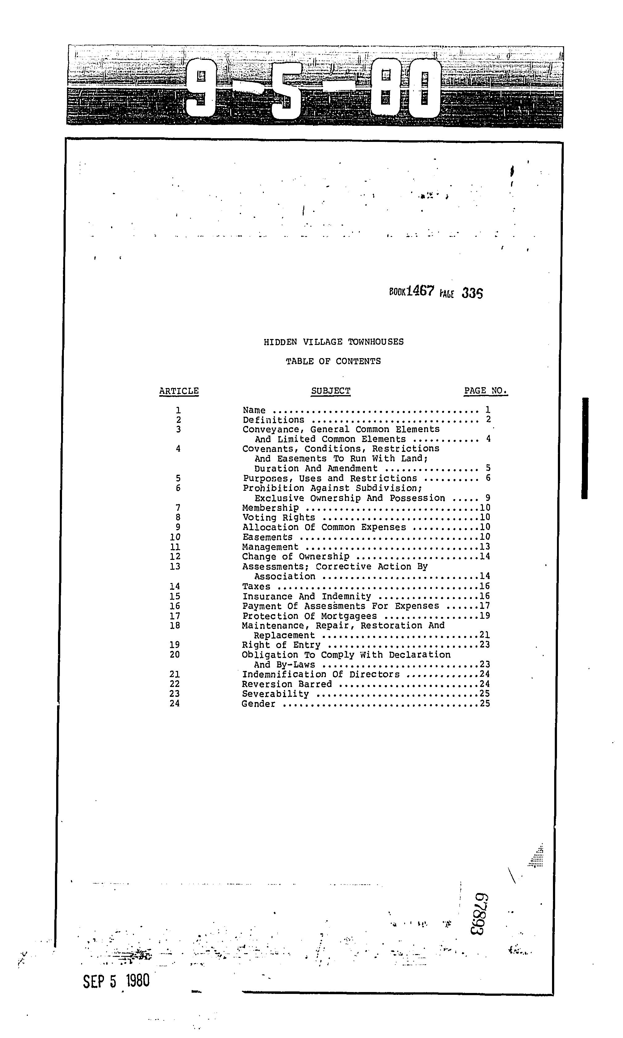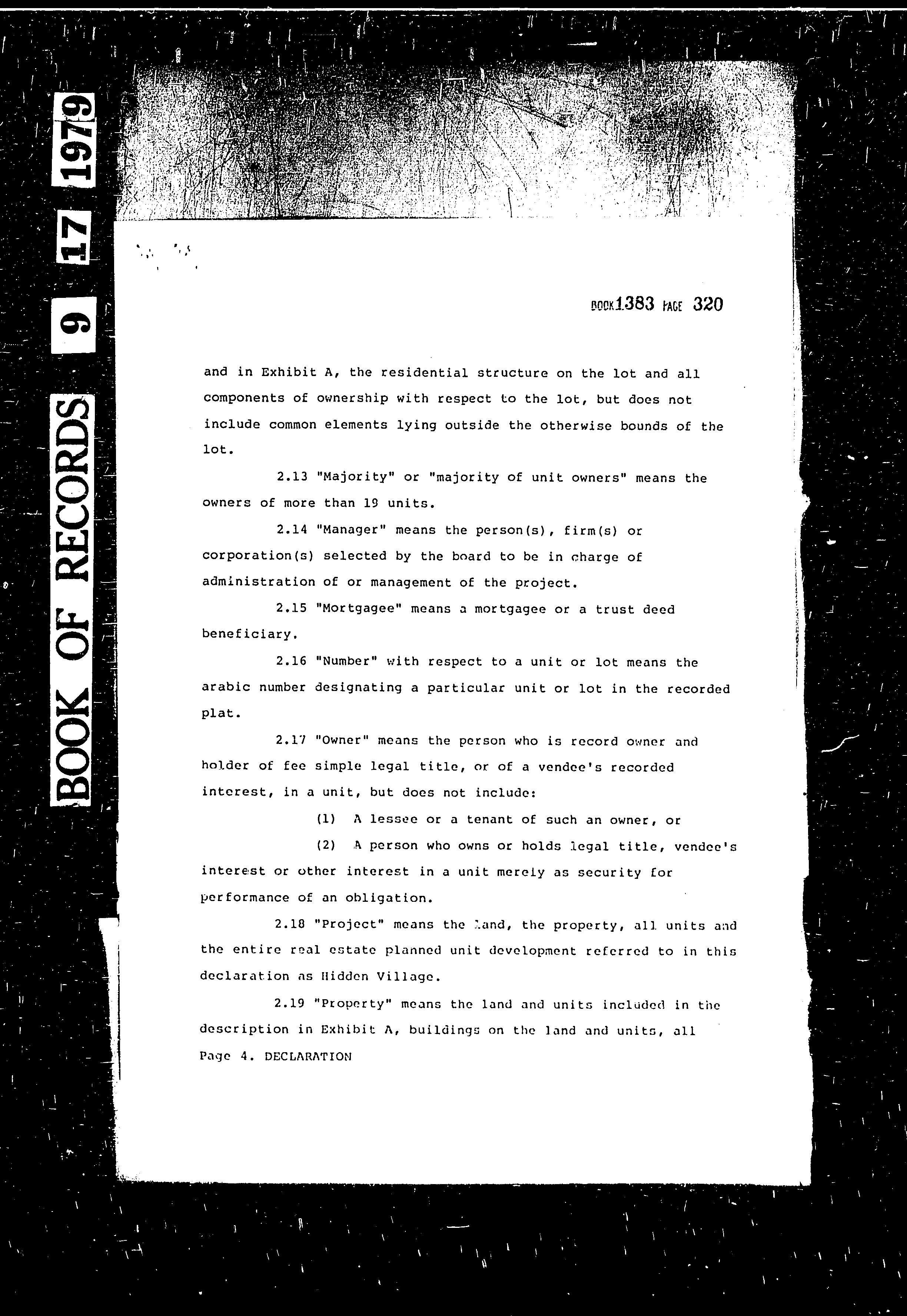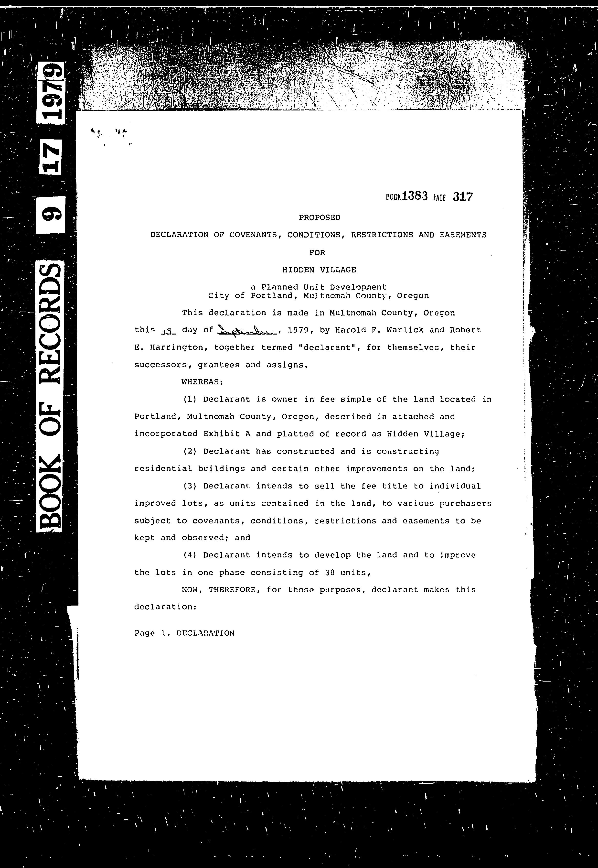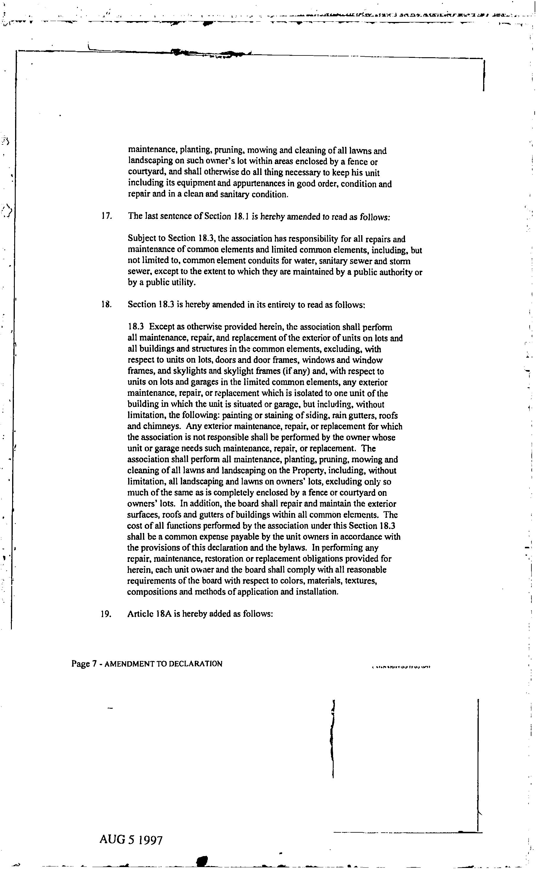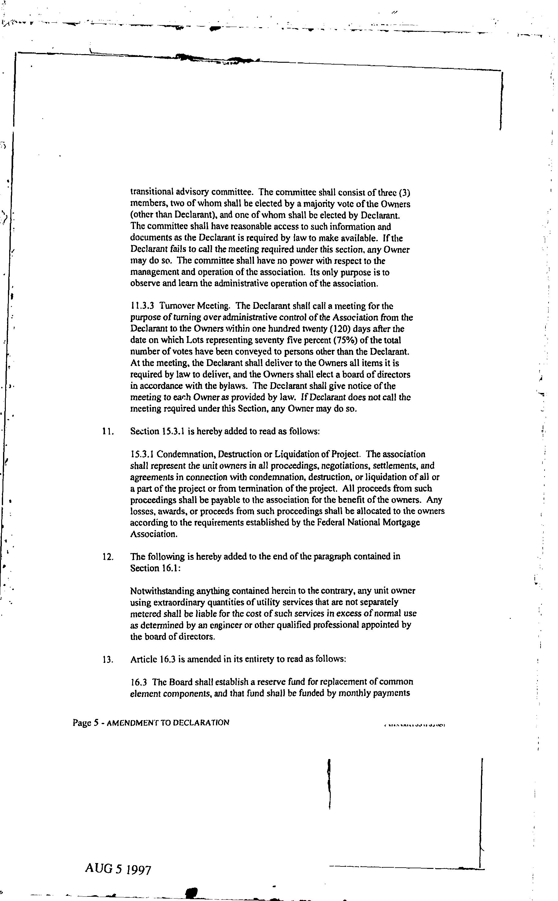 CCR's - Hidden Village Townhomes