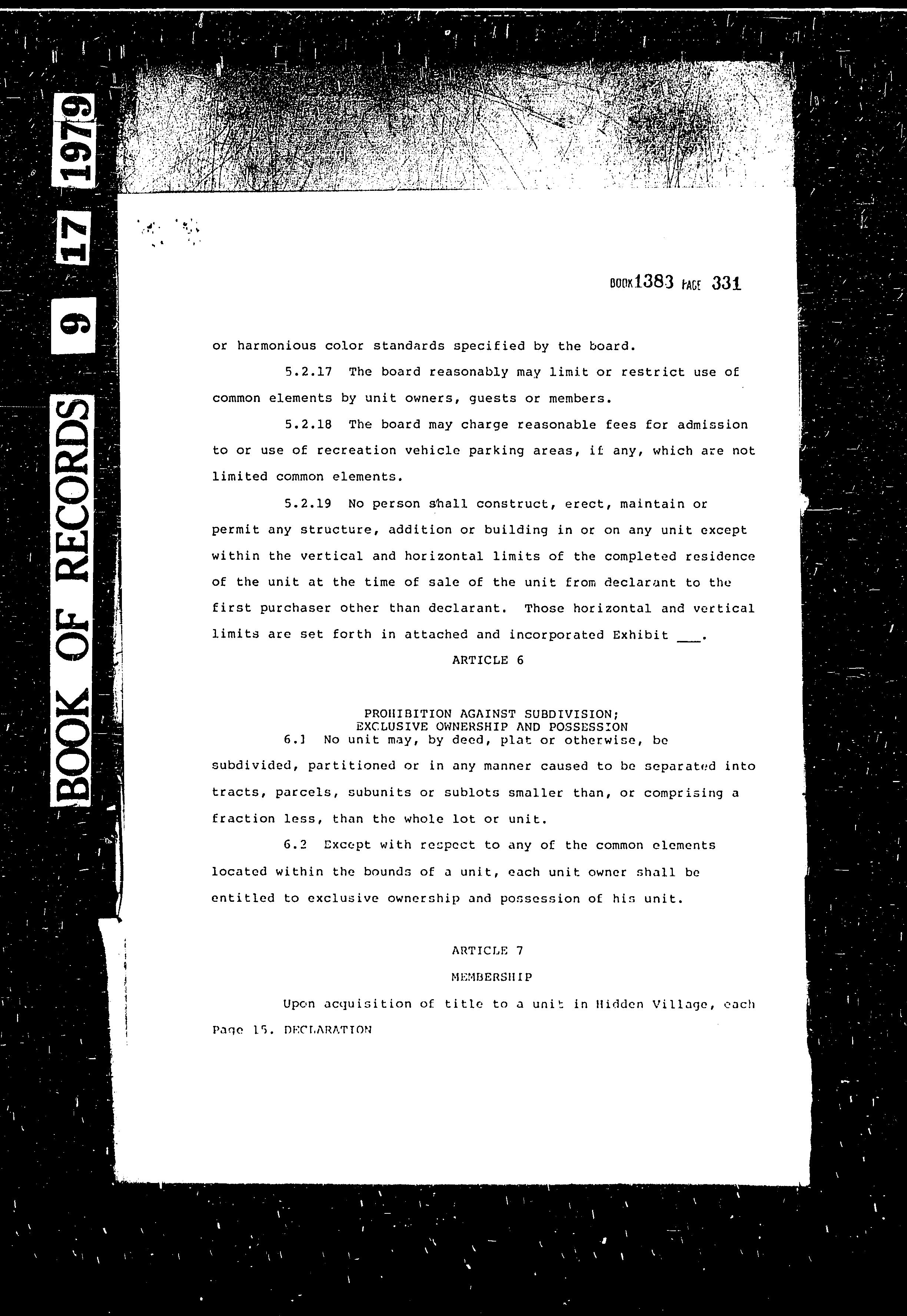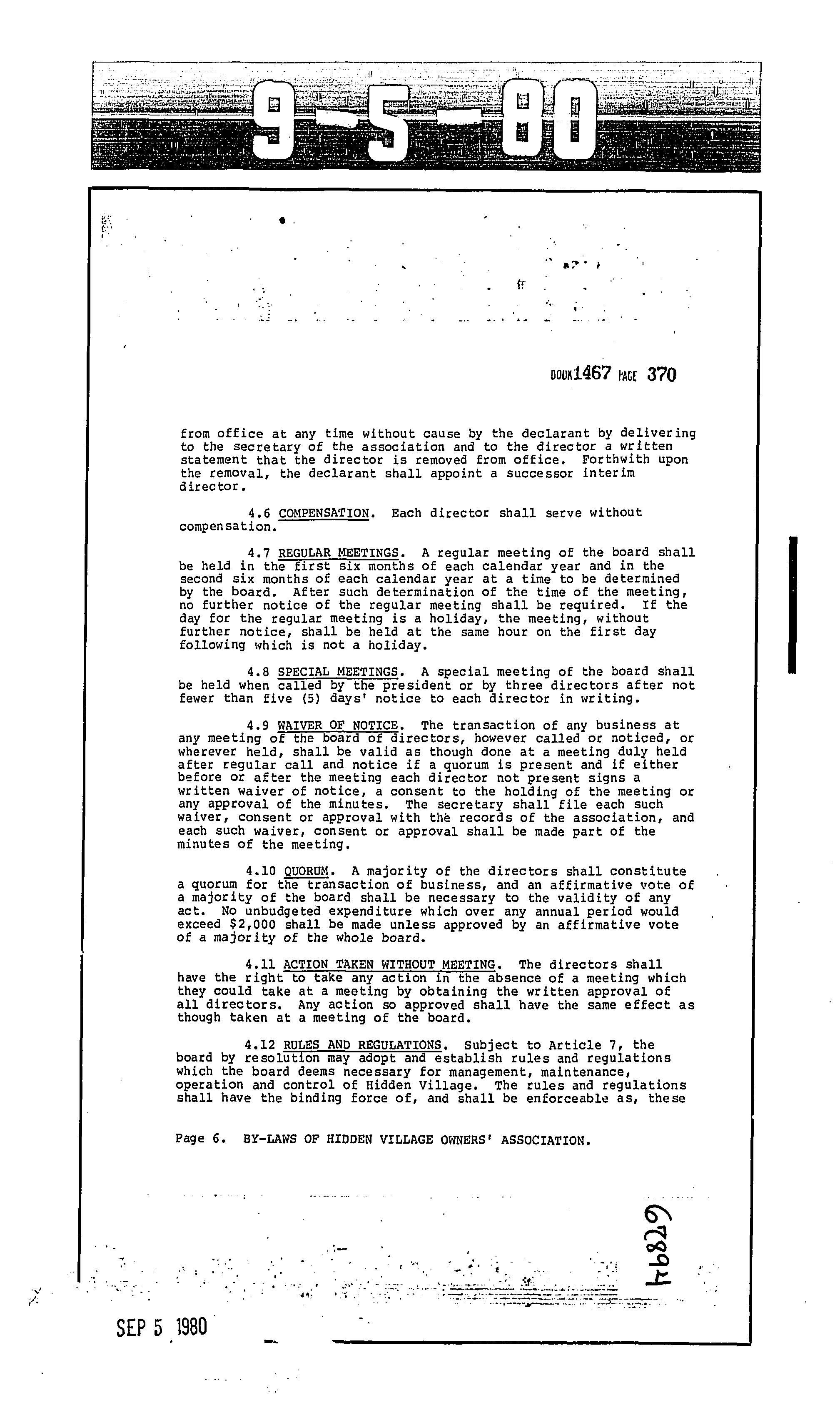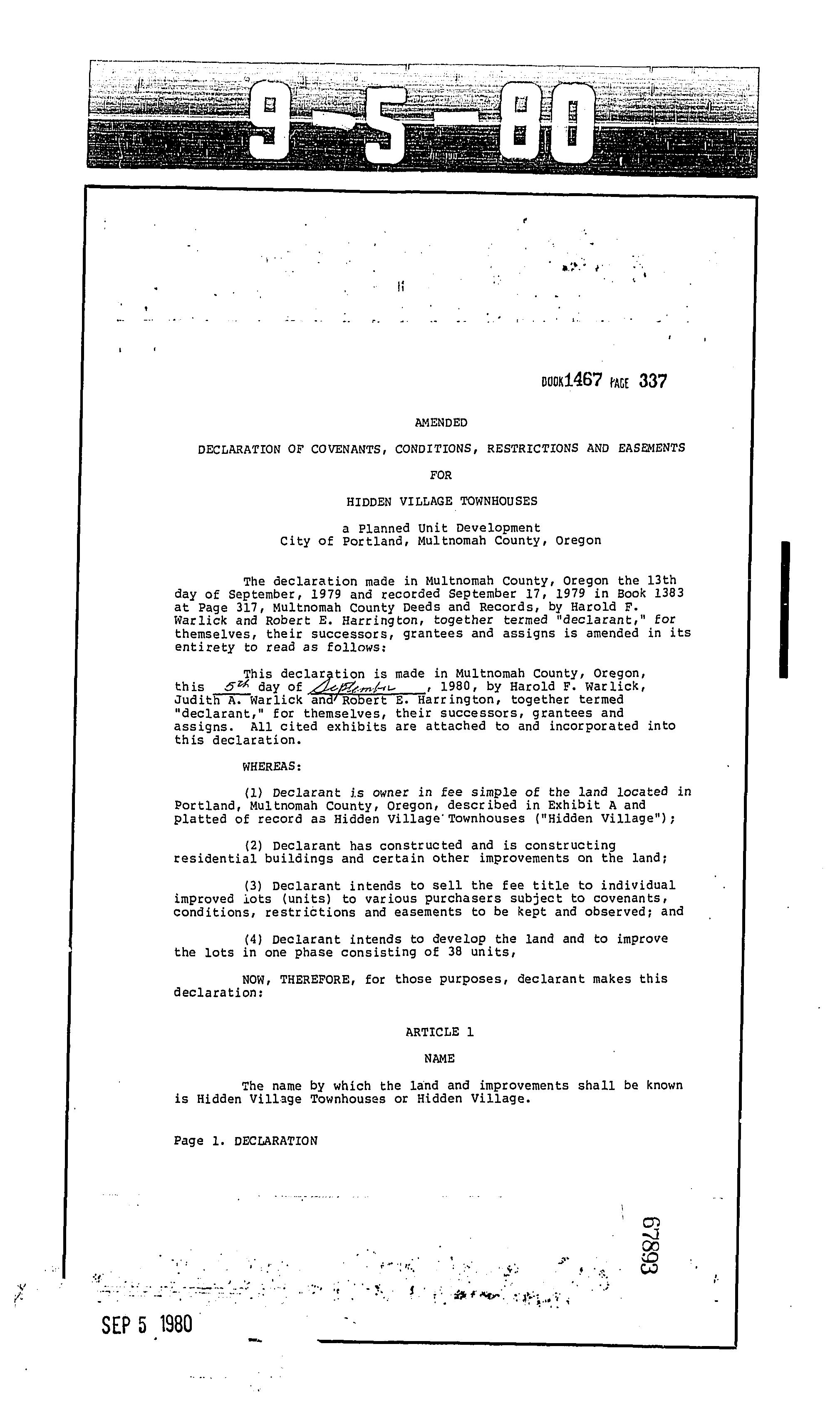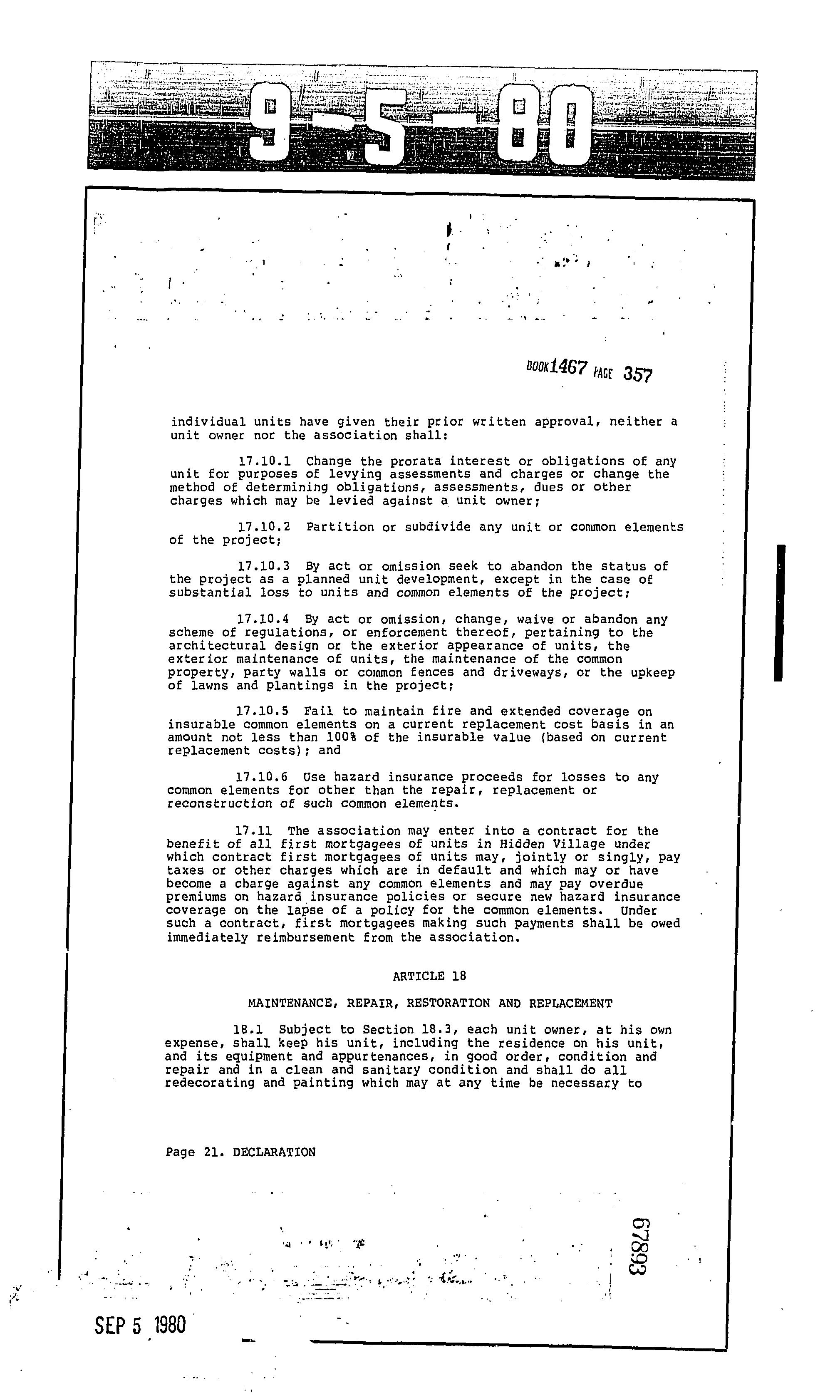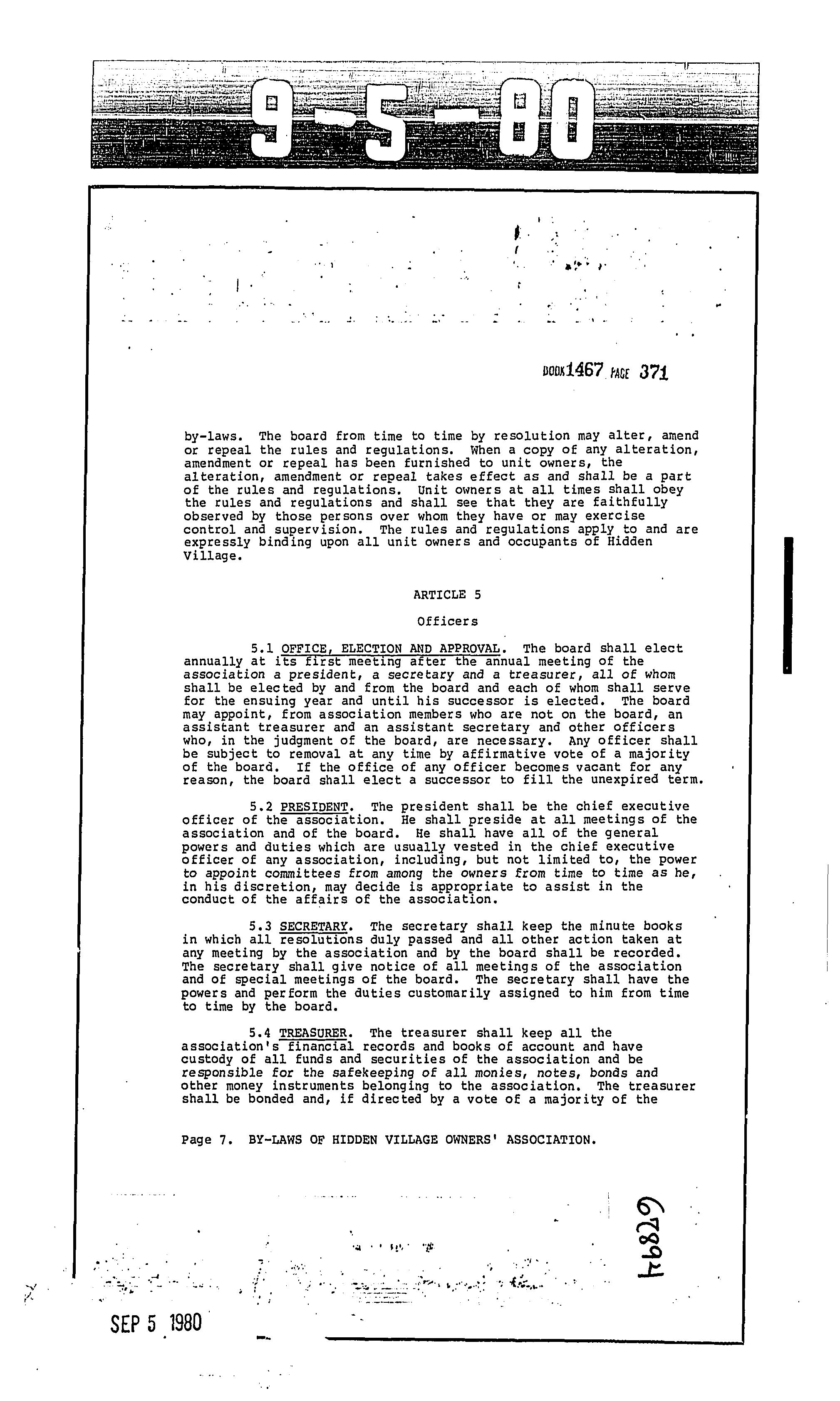 CCR's - Hidden Village Townhomes