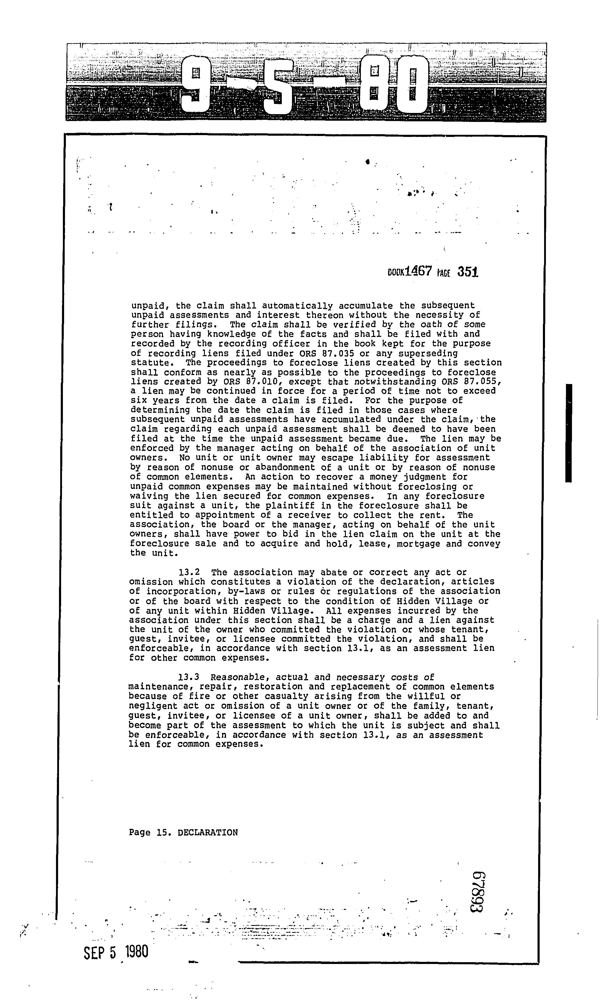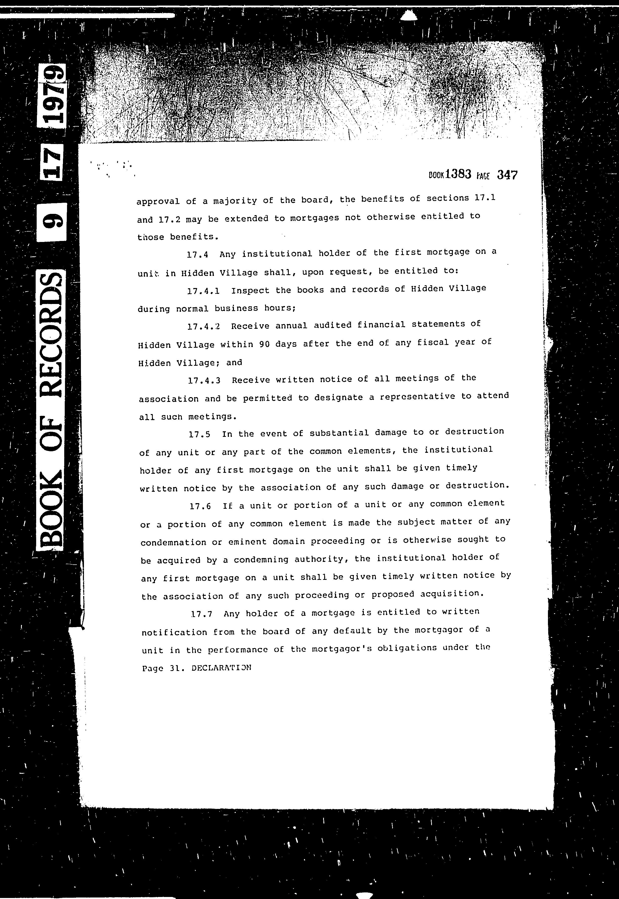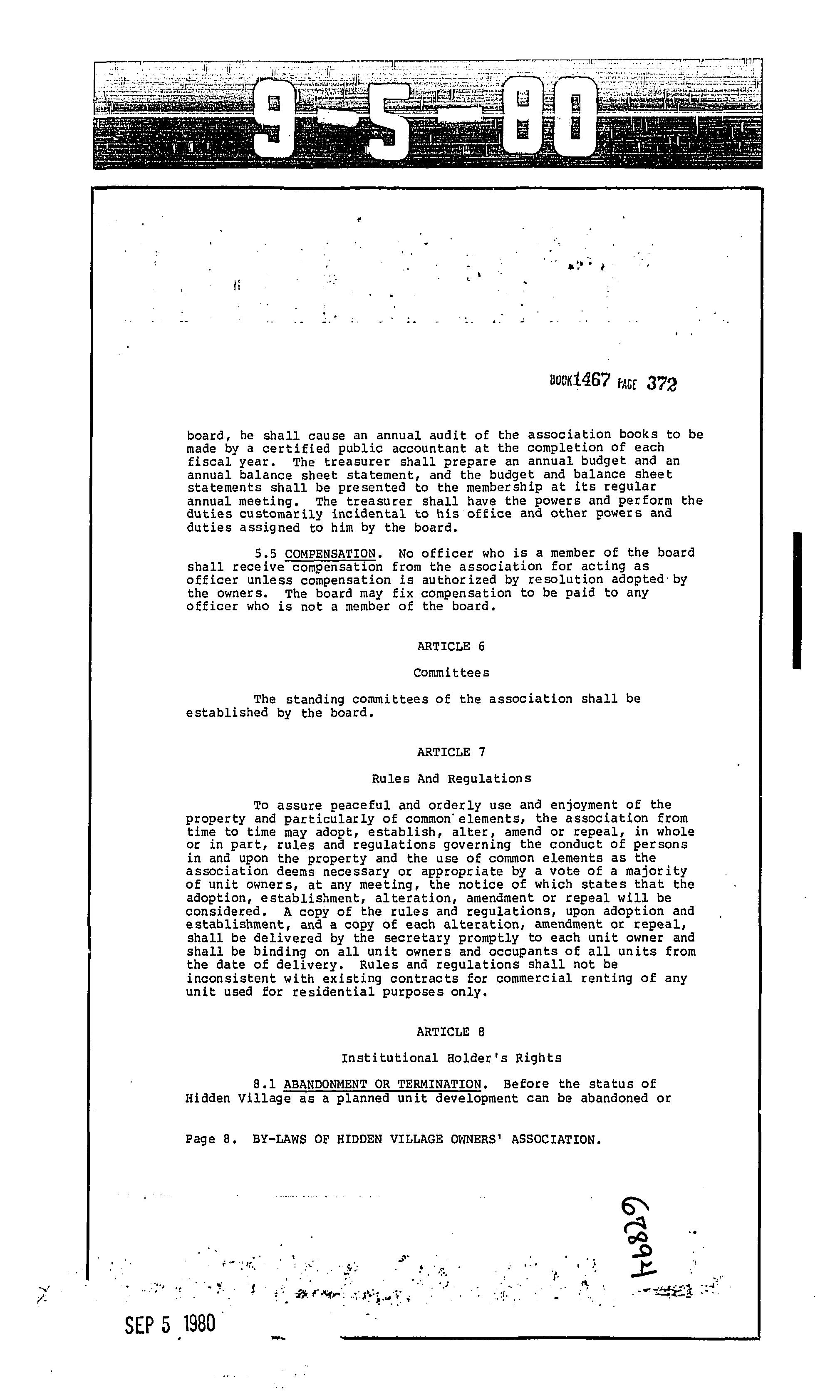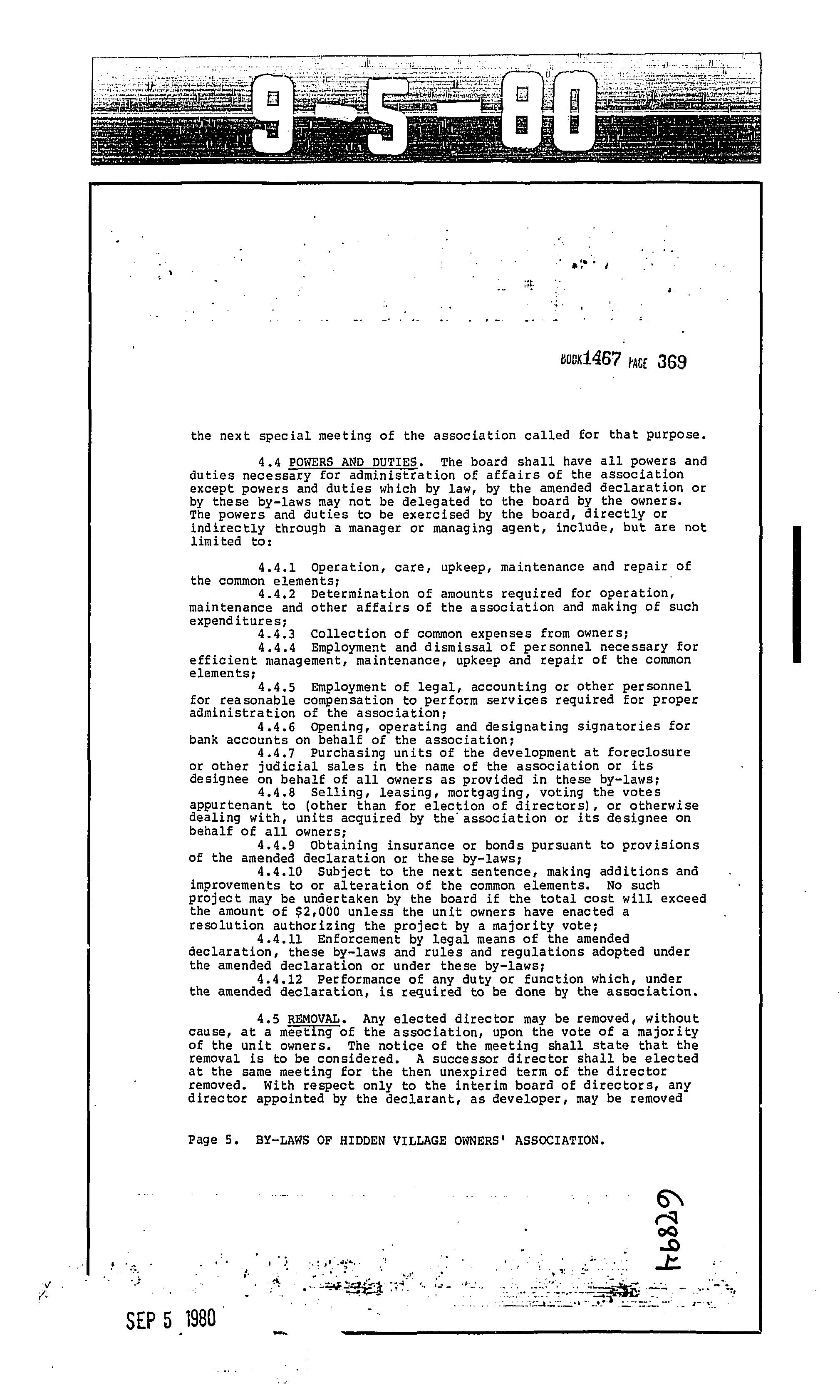 CCR's - Hidden Village Townhomes