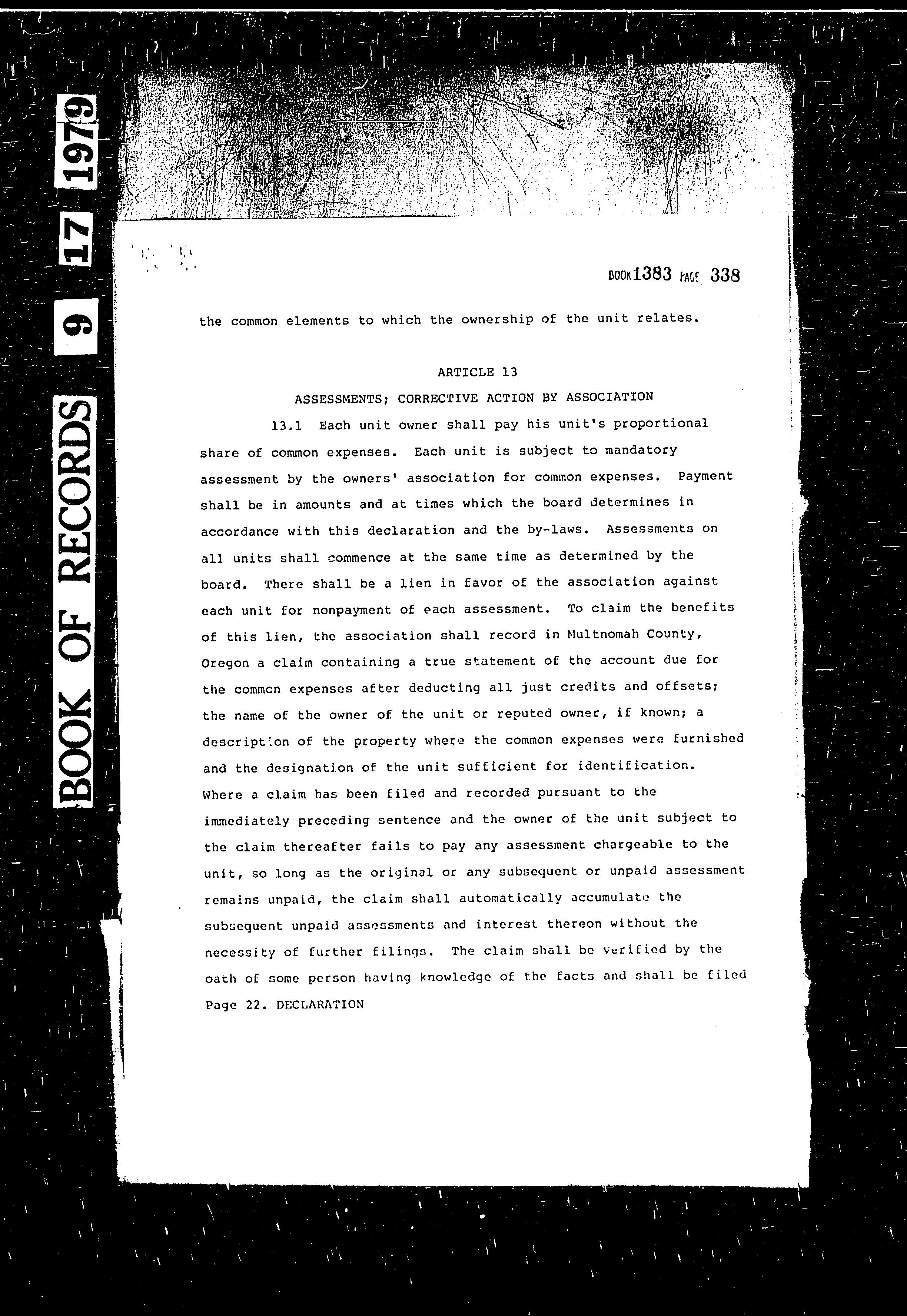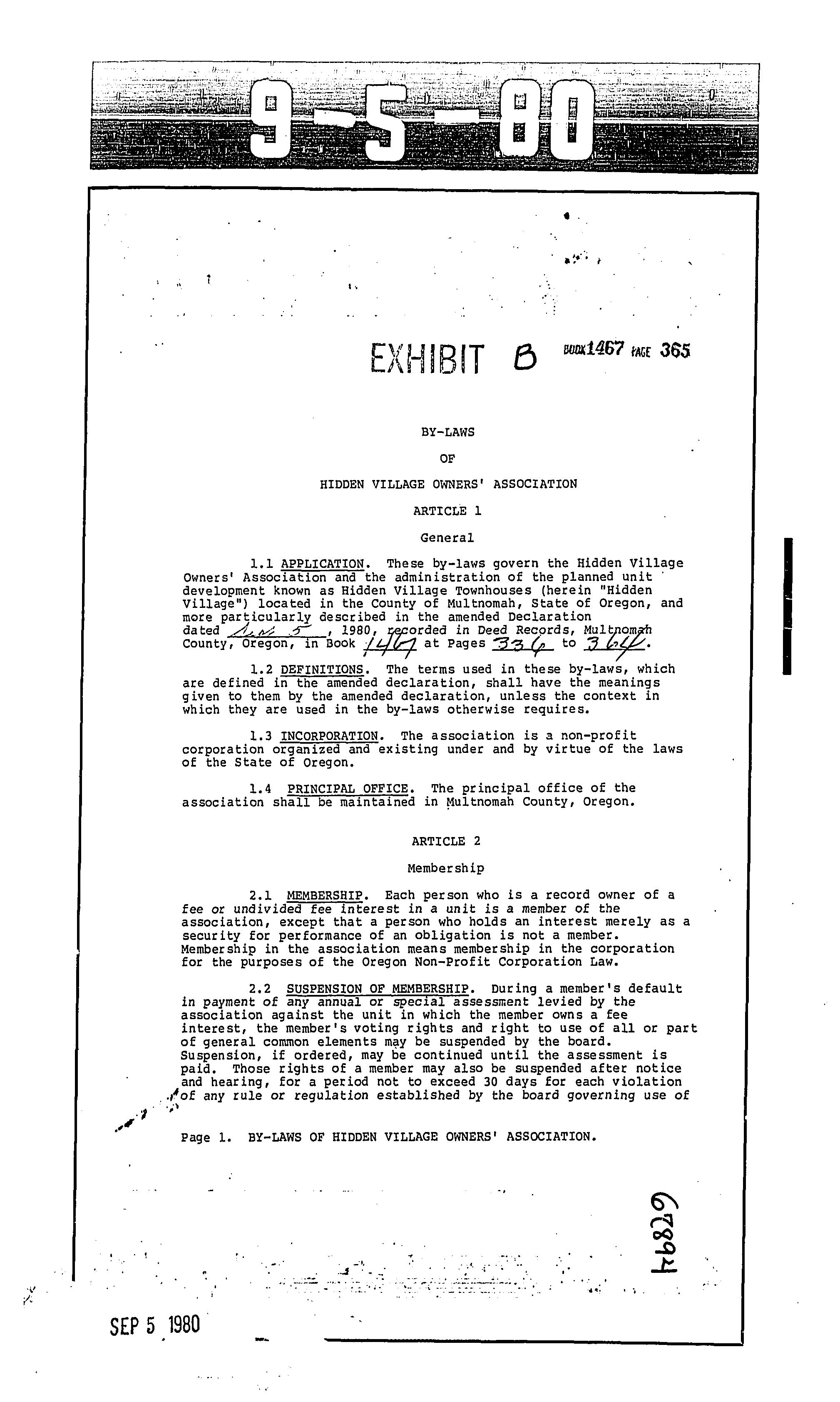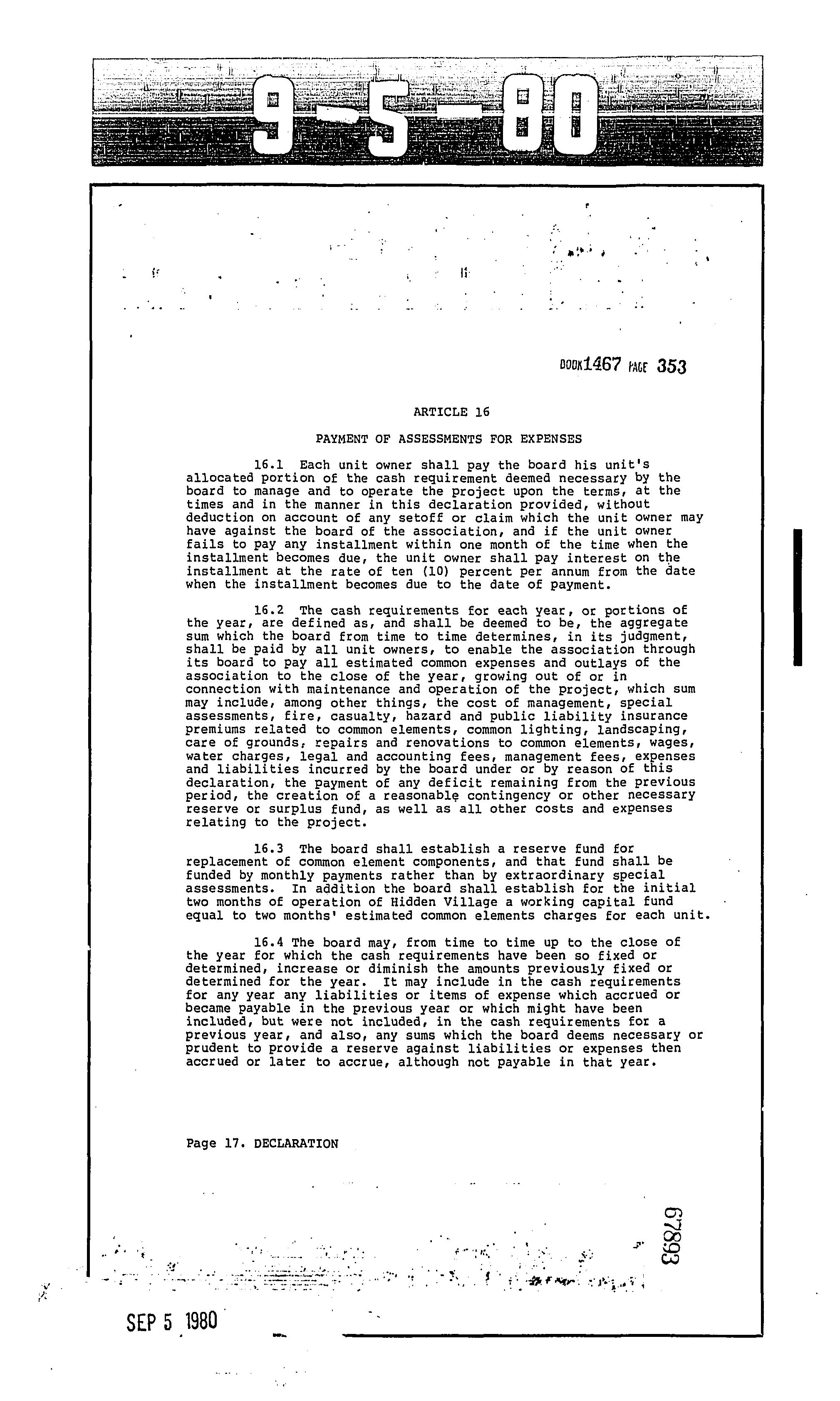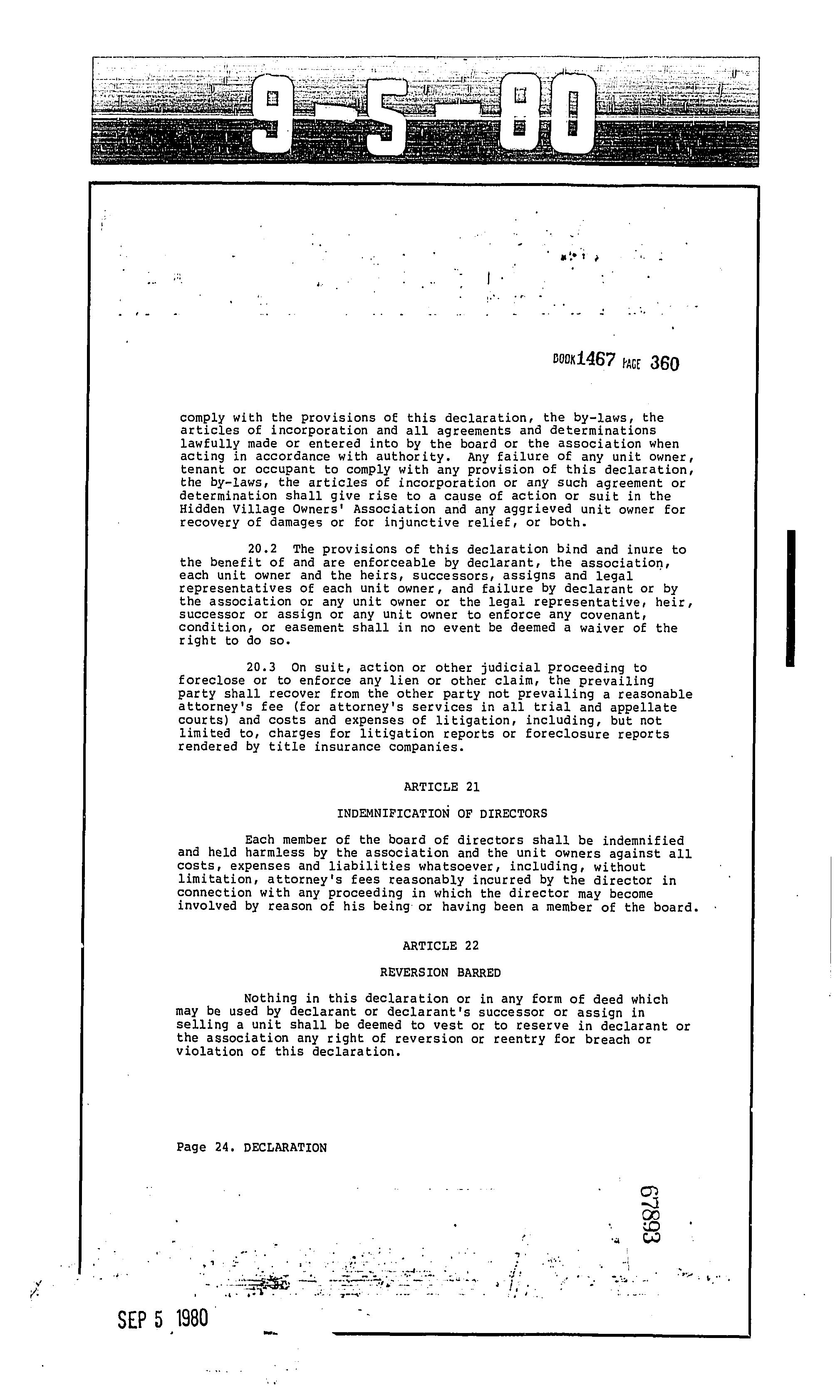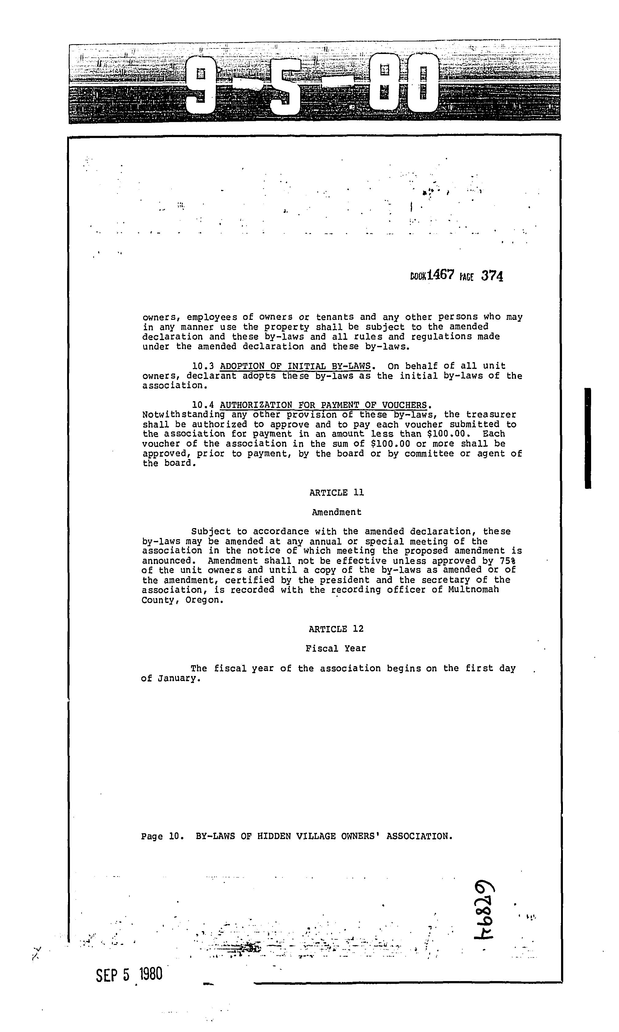 CCR's - Hidden Village Townhomes