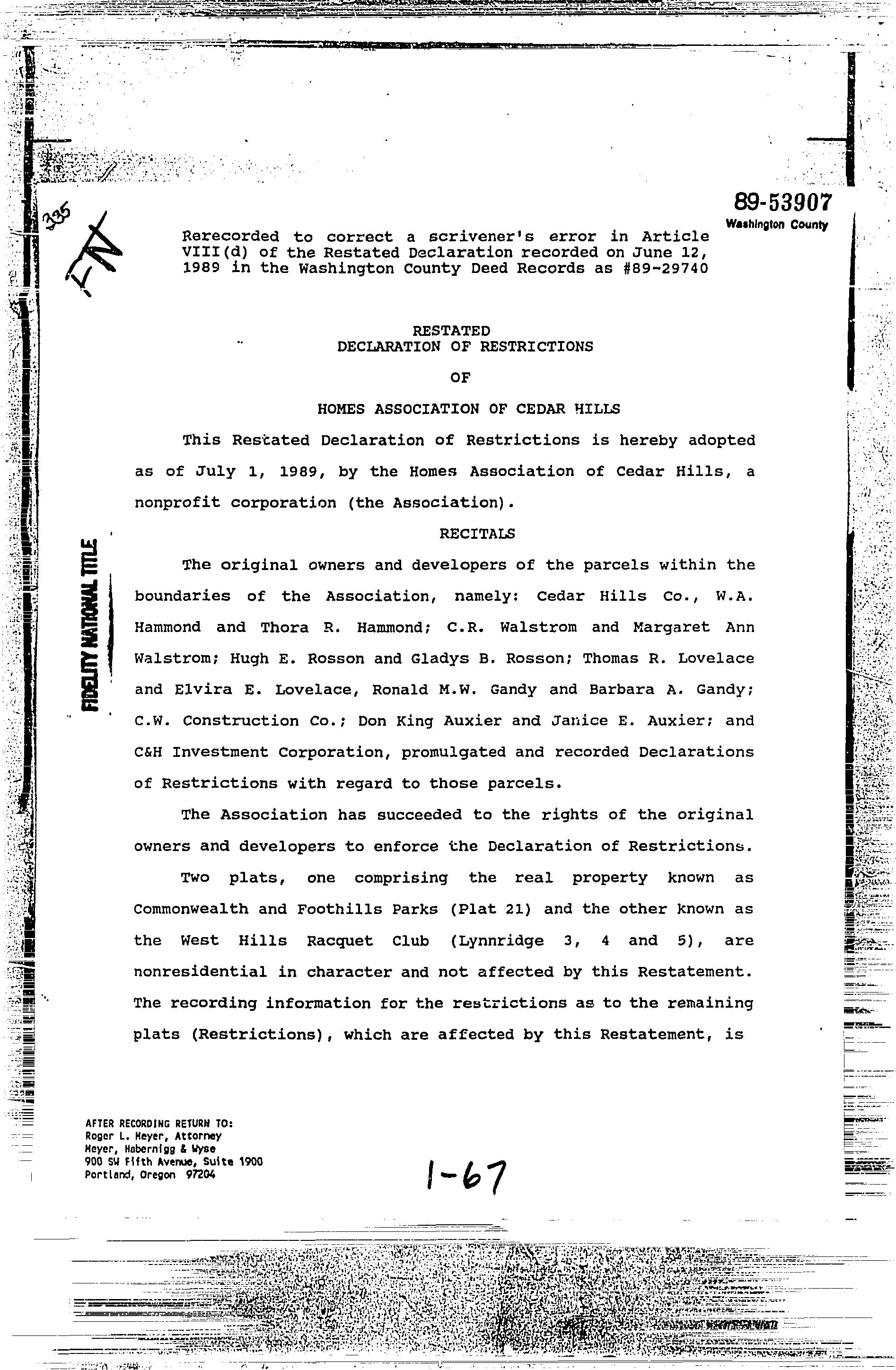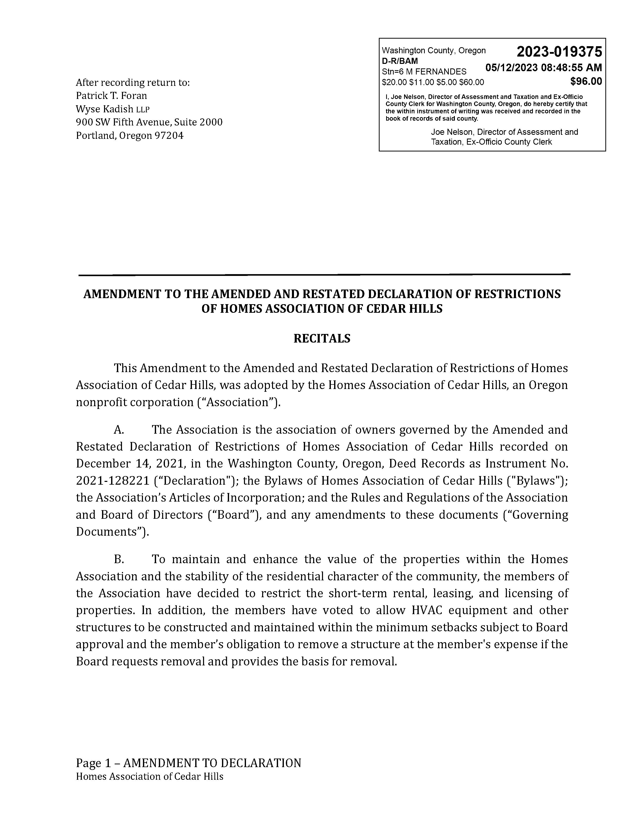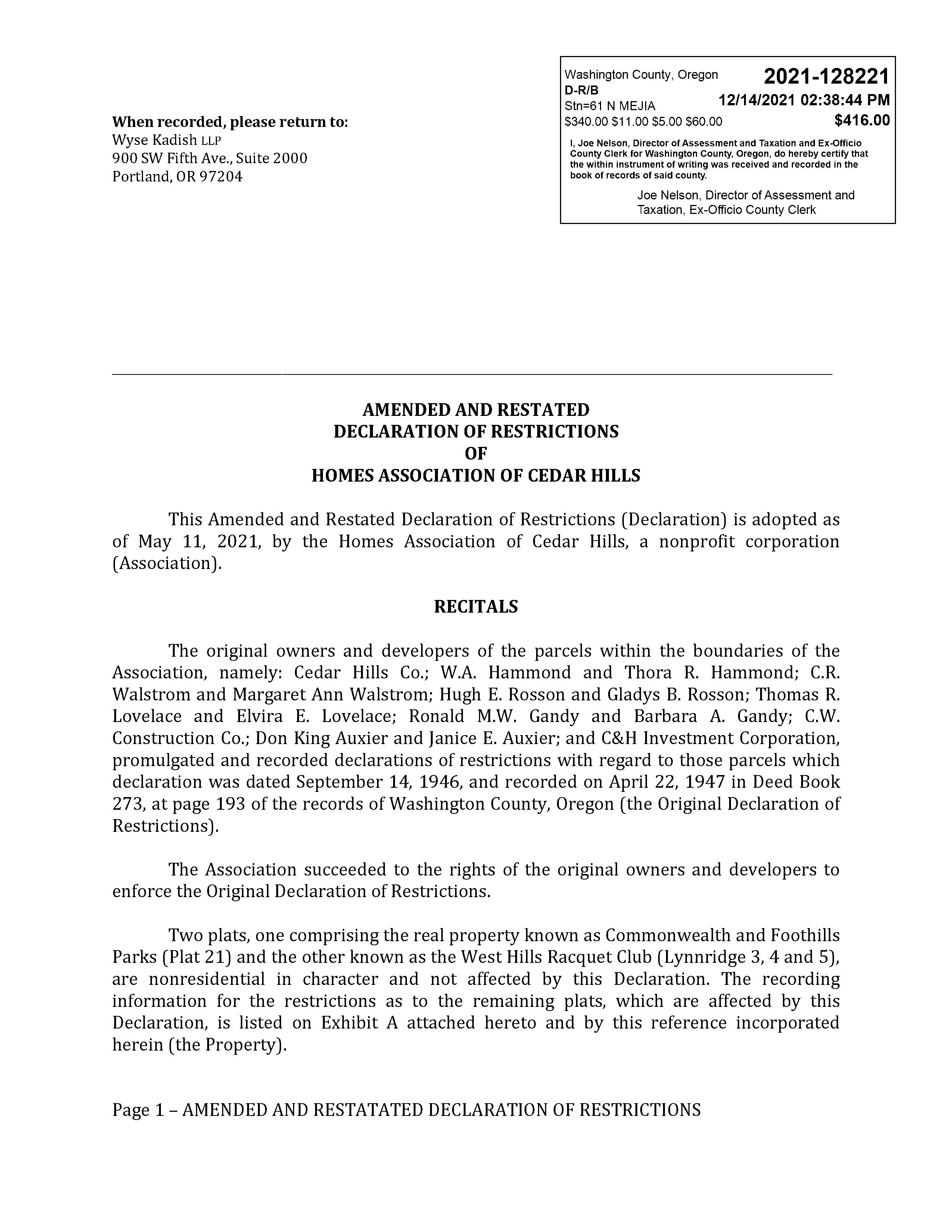 CCRs - 12340 SW Faircrest St