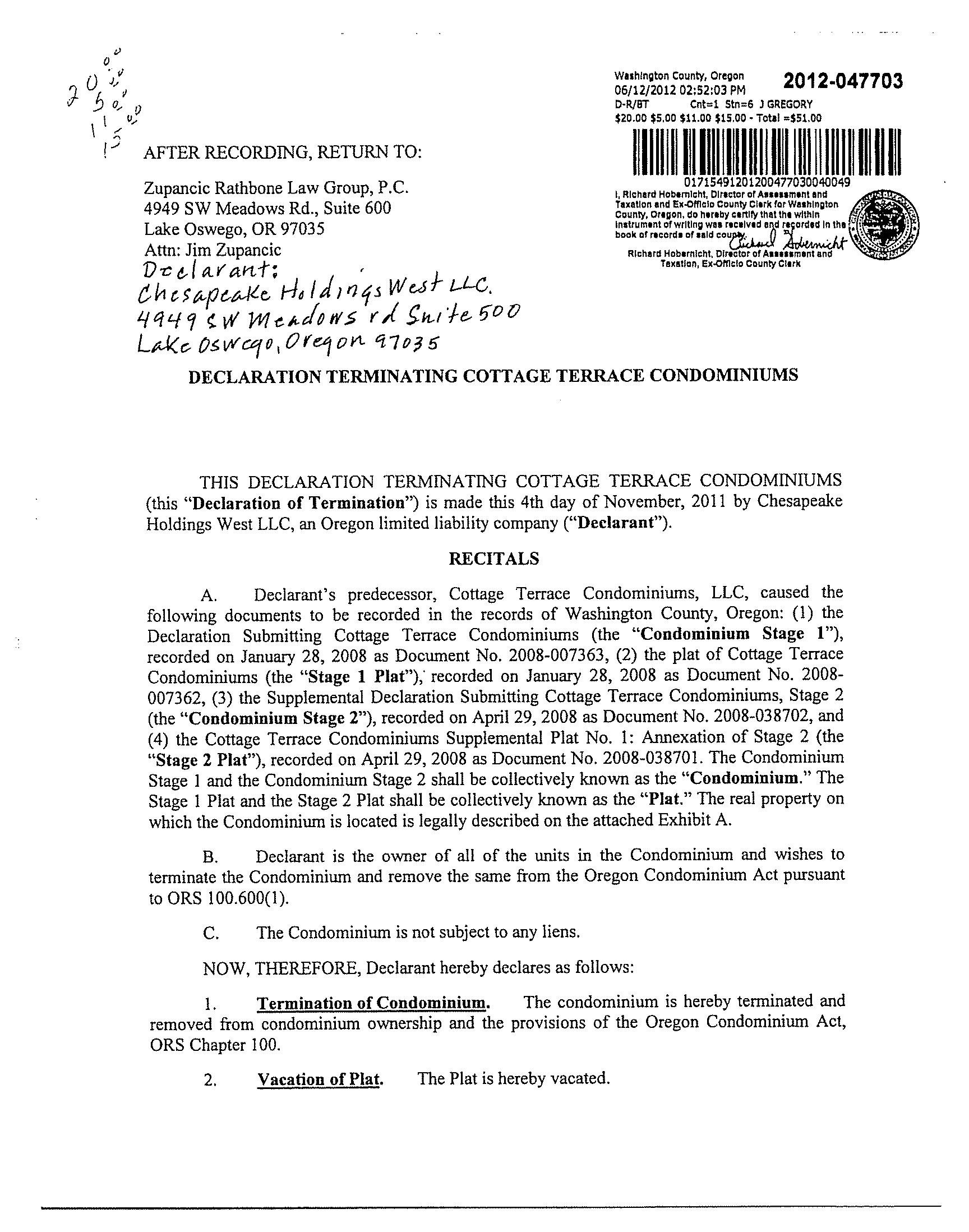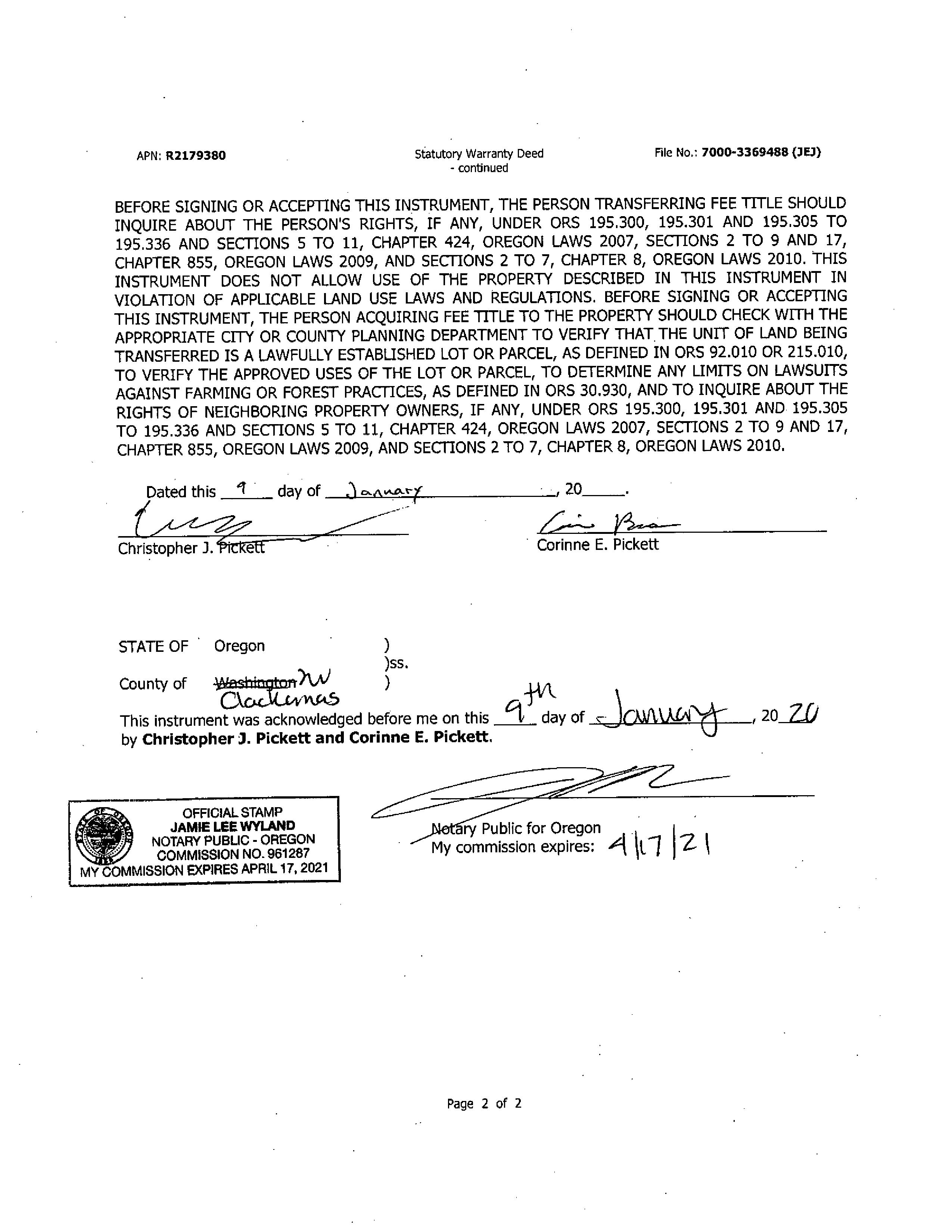 Omitted from the attached document is any covenant or restriction that is based upon, but not necessarily limited to, race, color, religion, sex, sexual orientation, familial status, marital status, disability, handicap, national origin, ancestry, source of income, gender, gender identity, gender expression, medical condition or genetic information, as set forth in applicable state or federal law, except to the extent that such covenant or restriction is permitted by applicable law. Oregon Version 20150707