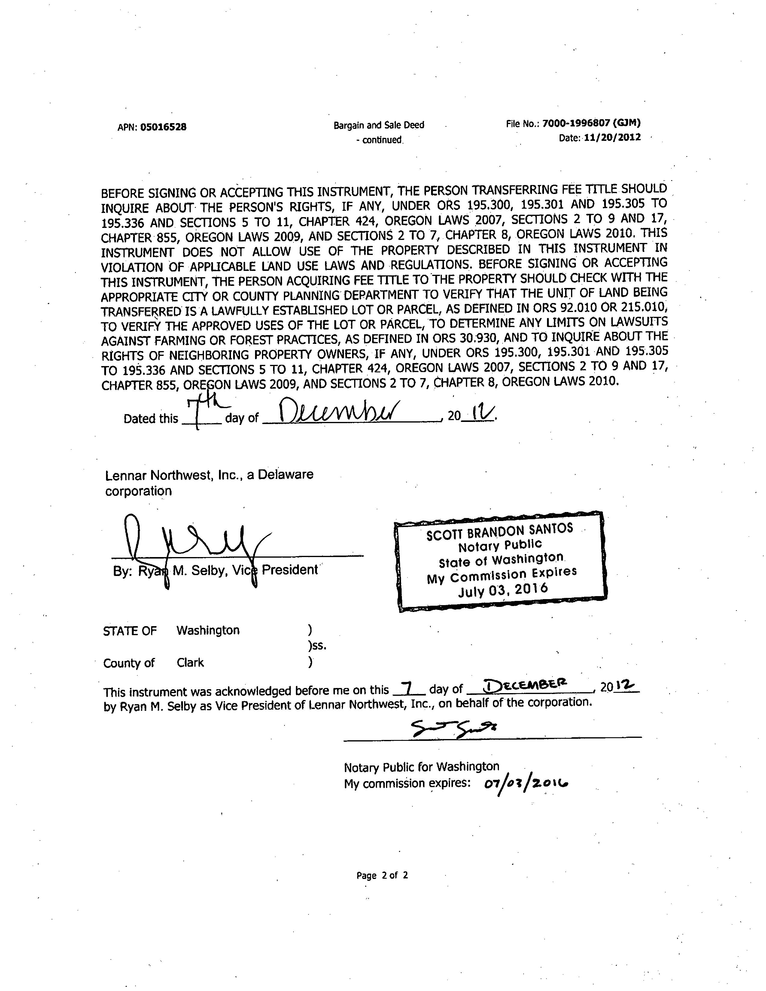 12/14/2012 12/18/2012 16:49:00 Recording Processed Property Transfer Filing No.: 239818, Bargain & Sale, Recording No.: 2012082669 12/14/2012 by ROMANSIE