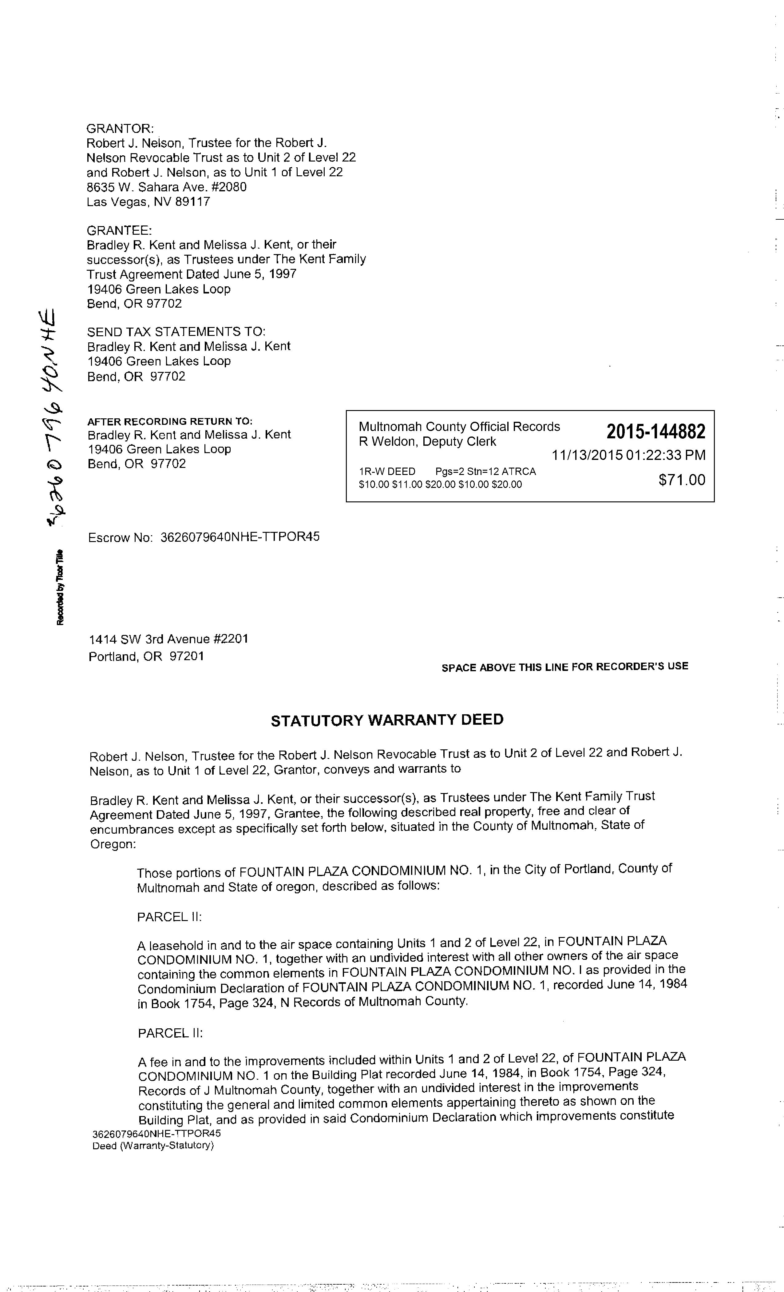 Mailing Address (KENTFAMILYTRUSTAGREEMENT)19406 GREENLAKESLOOPBEND,OR97702