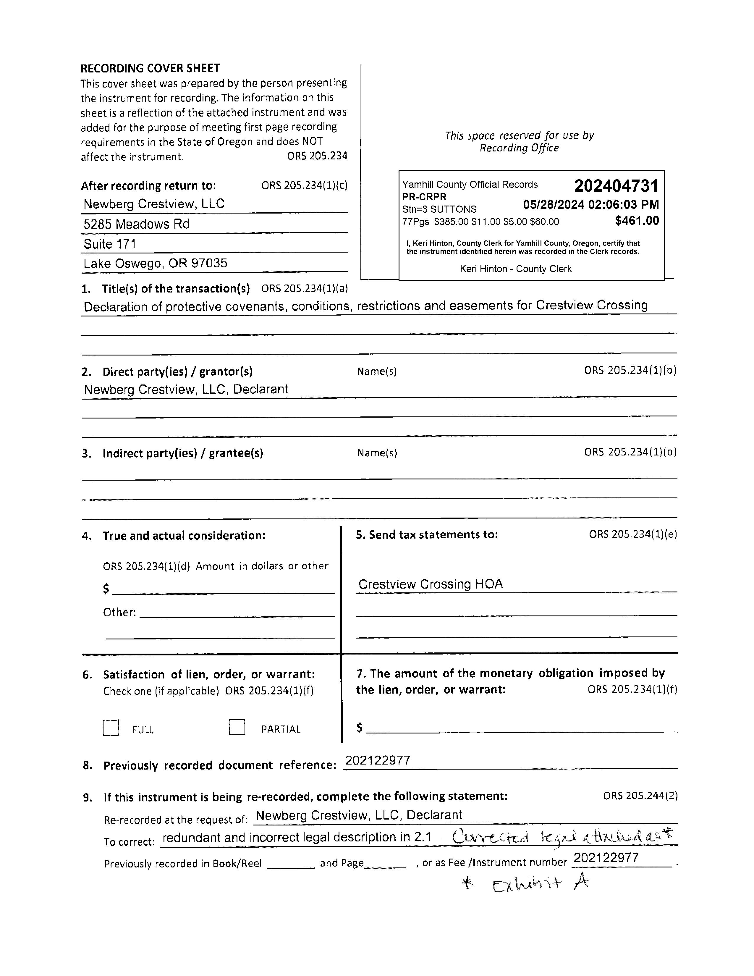 Subdivision: CRESTVIEW CROSSING PUD PHASE 1