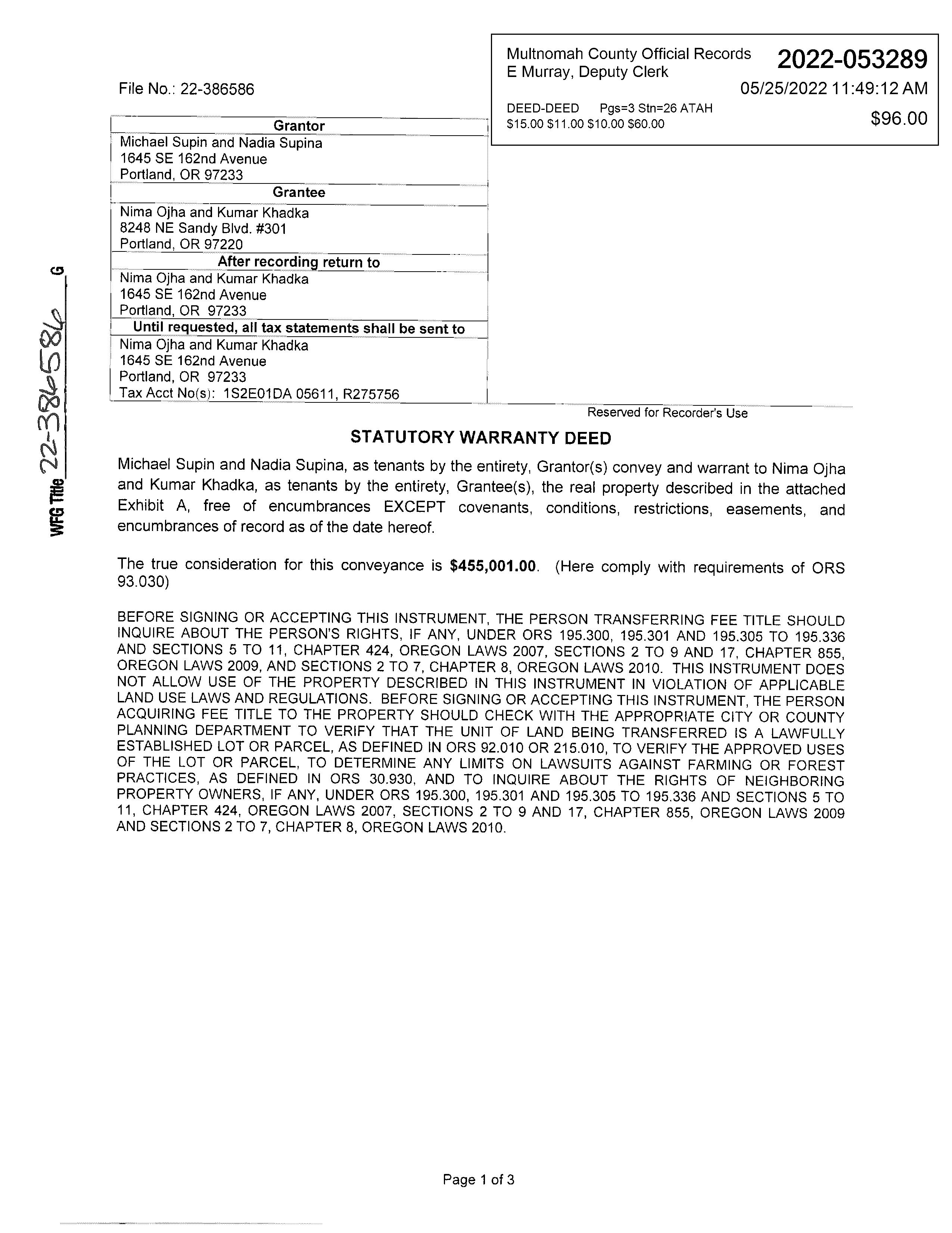 • Recordable documents are released to the County Clerk’s office for recording.