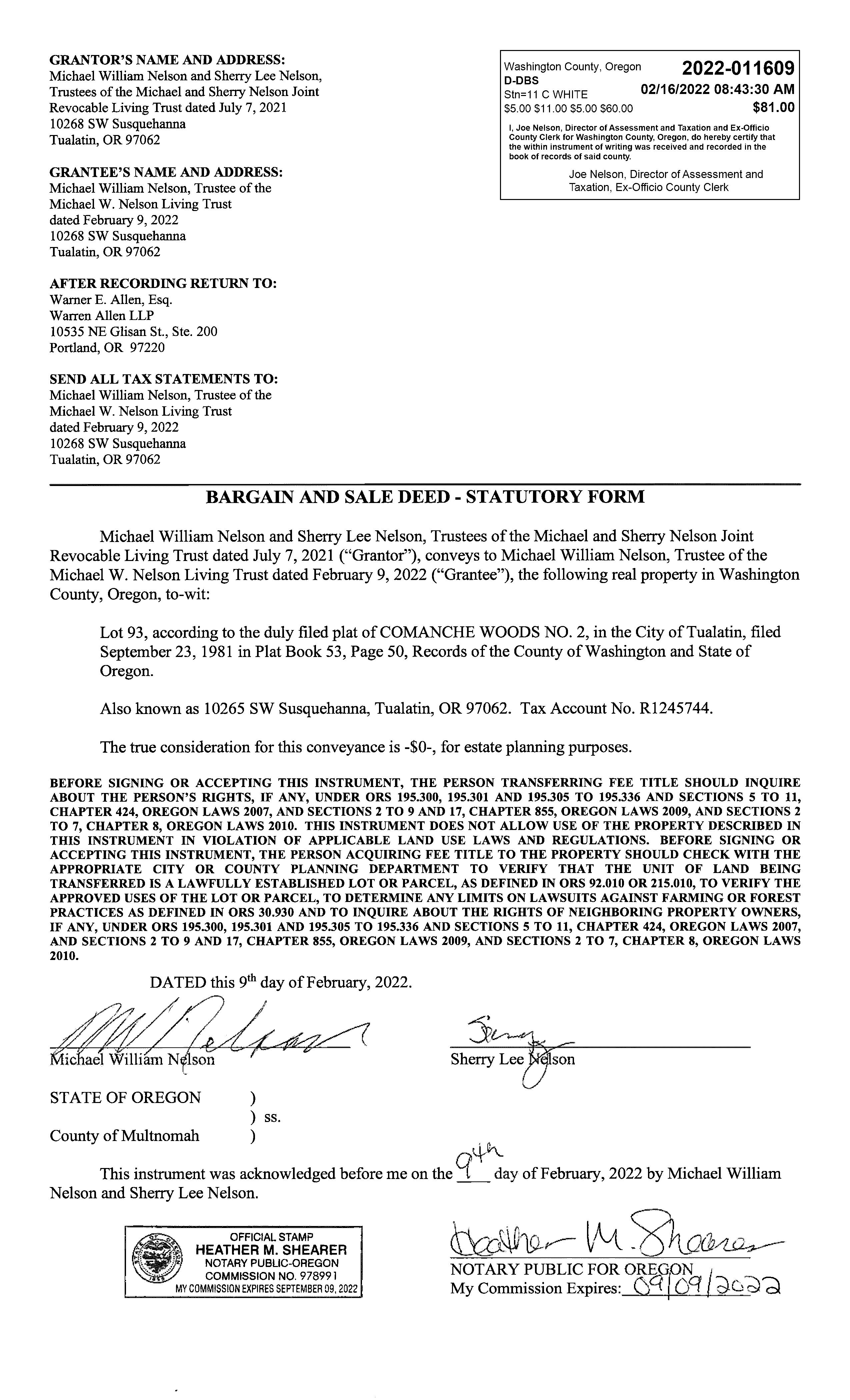Grantor:NELSONMICHAEL&SHERRYLIVING