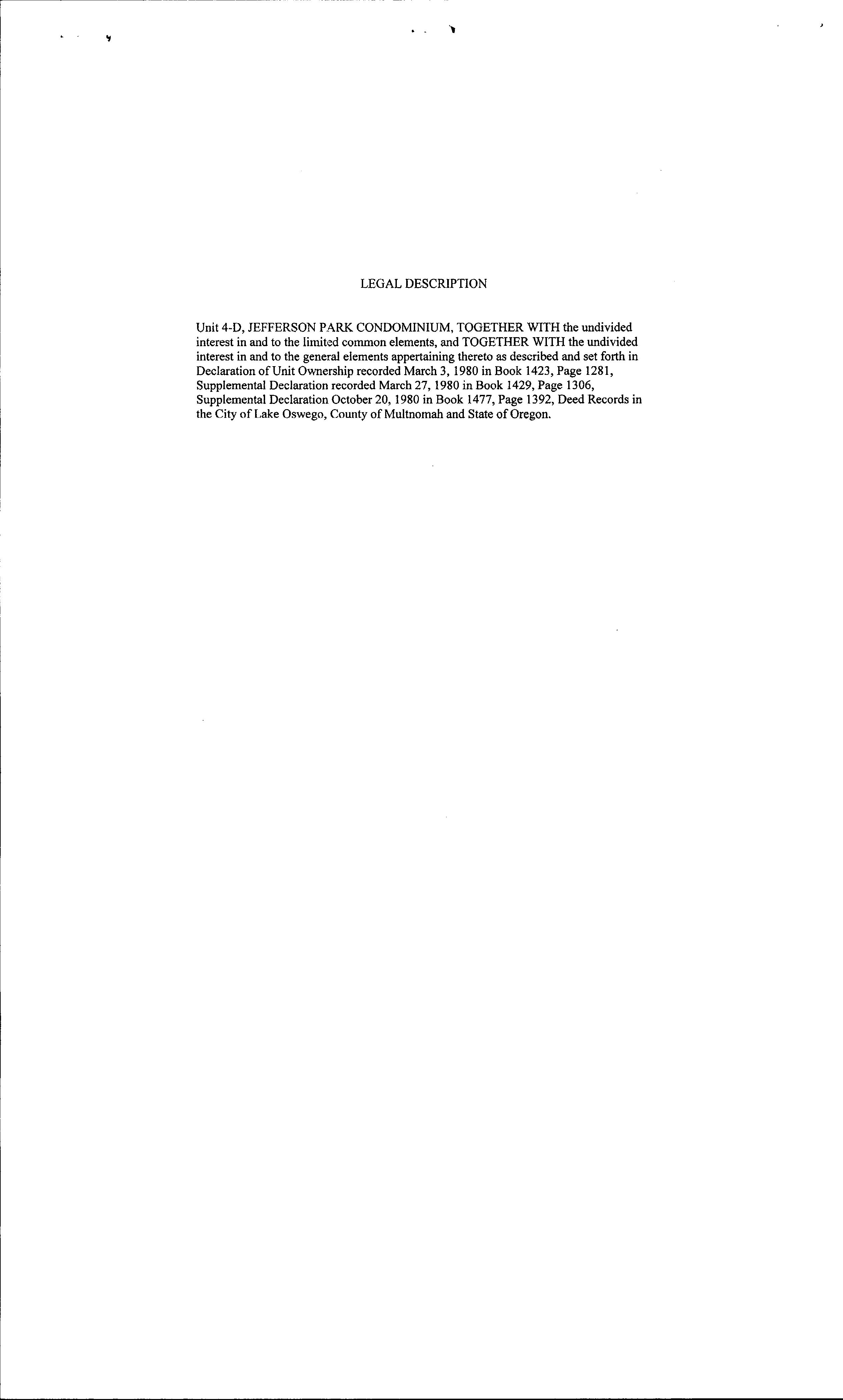 Legal Description JEFFERSONPARKCONDOMINIUM,LOT4-D