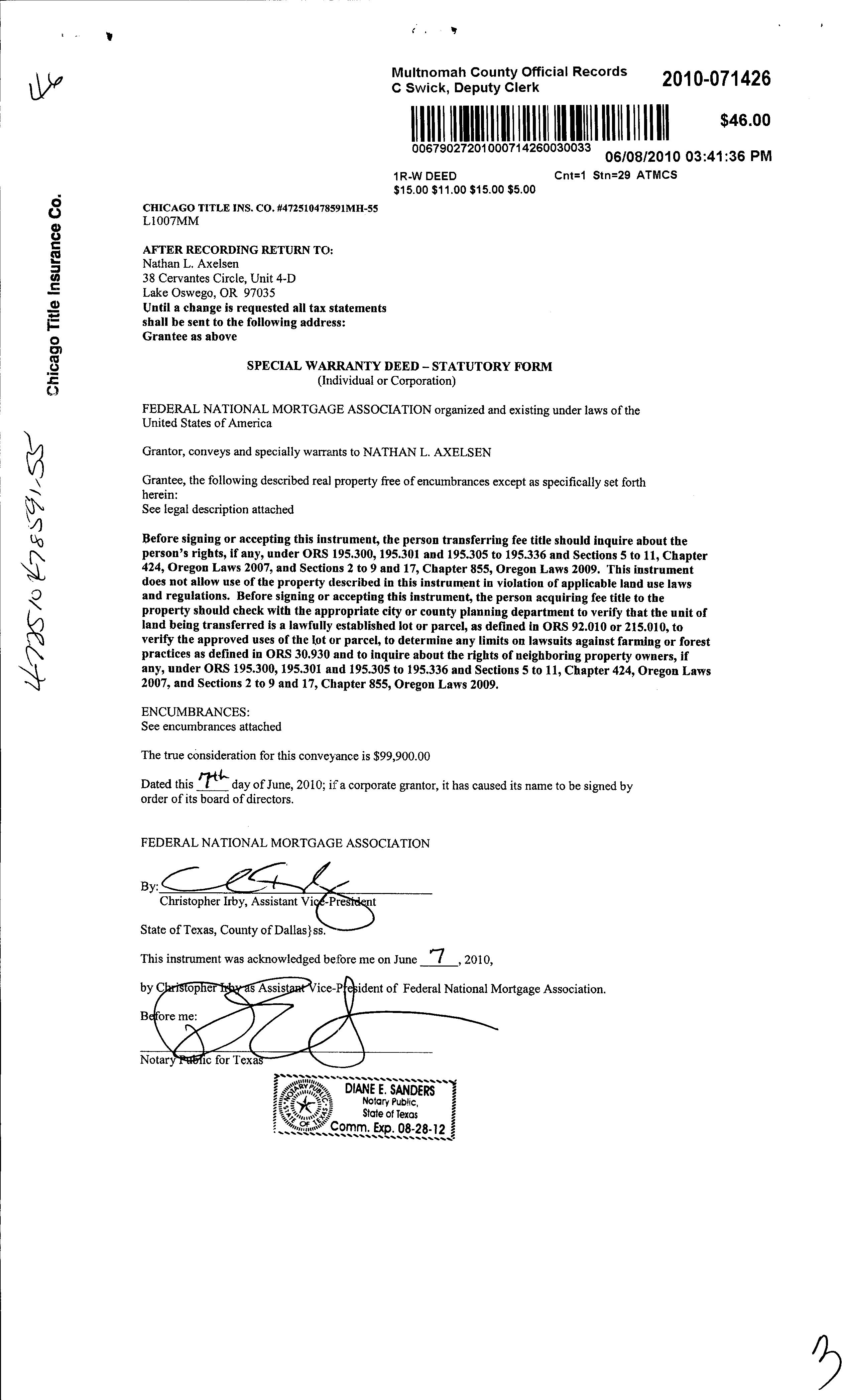 FEDERALNATIONALMORTGAGE 2010030633 3/3/2010 $106,867