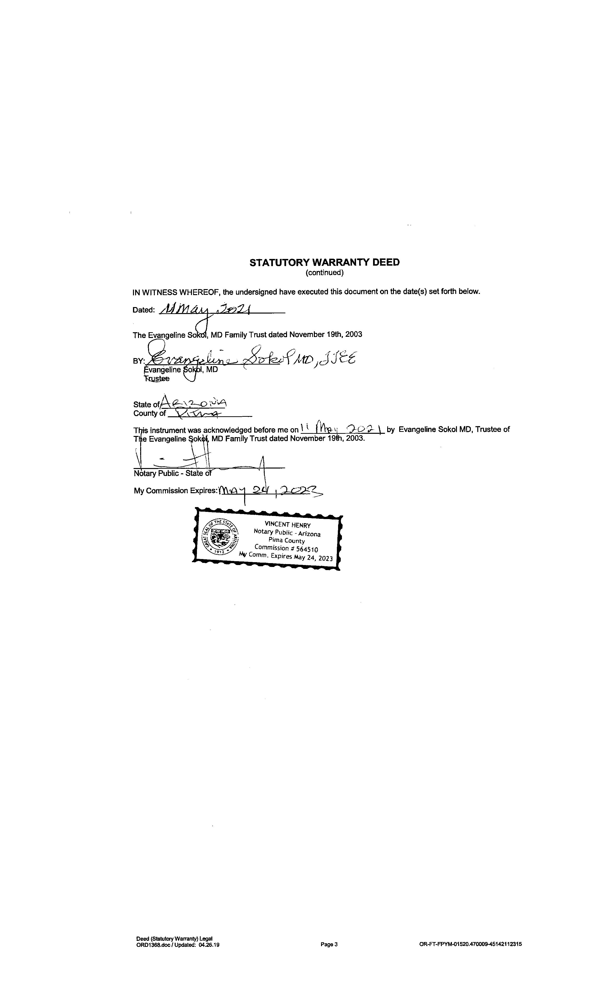 5/11/2021 SOKOL, EVANGELINE MD FAMILY TRUST