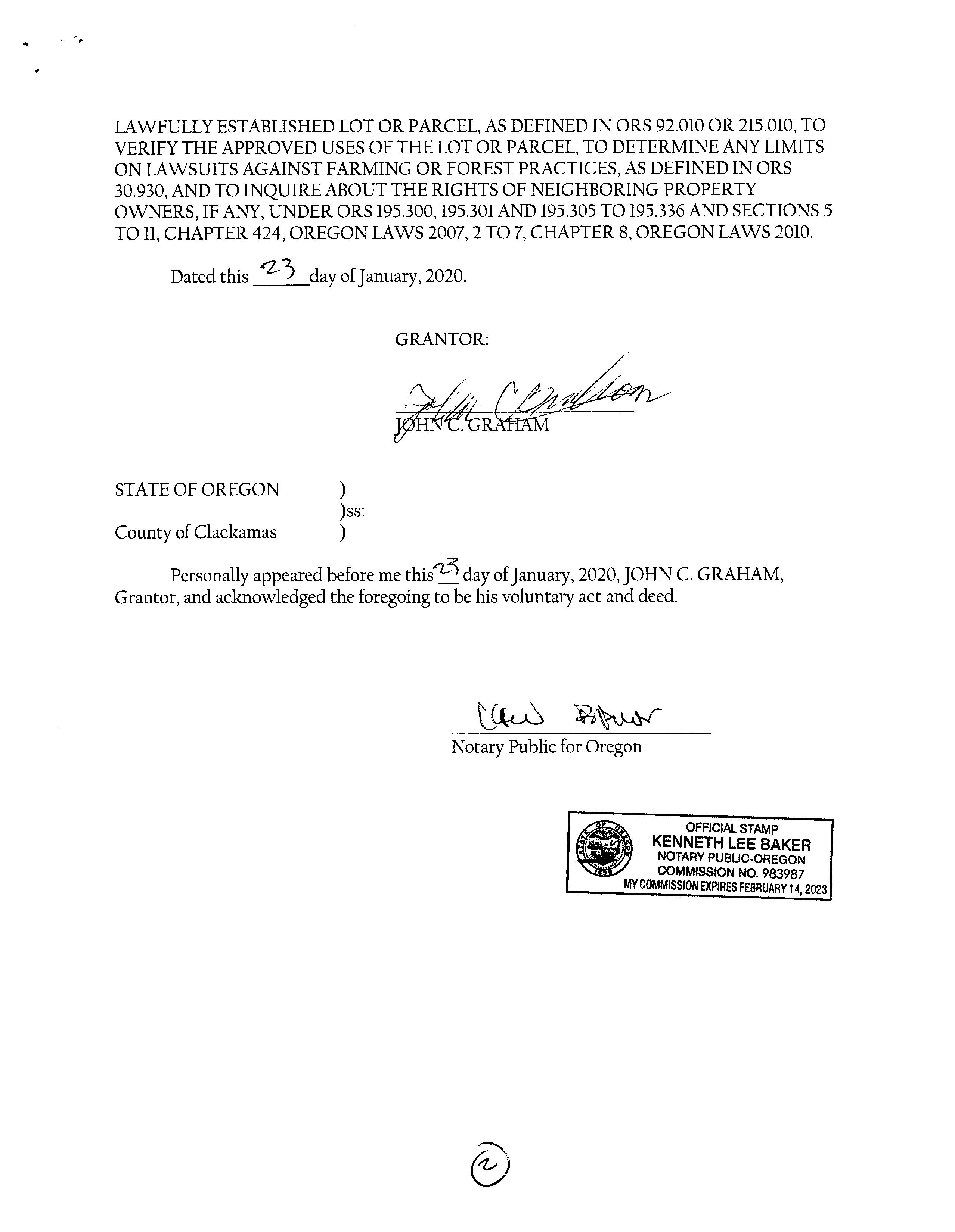 Subject Property Location Report Date: 03/20/2023 Property Address 10675 SE MELITA DR Order ID: R110248692 City, State & Zip HAPPY VALLEY, OR 97086-6207 County CLACKAMAS COUNTY Property Use Single Family Residential Mailing Address 12455 SE WINTER CREEK CT, HAPPY VALLEY, OR 97086-4330 Parcel Number 12E35BA01600 Subject Property Address 10675 SE MELITA DR, HAPPY VALLEY, OR 97086 APN 12E35BA01600 Owner GRAHAM SUSAN LOUISE (TRUSTEE) Lot Size (SF/AC) Bedrooms 3 Year Built 1963 Living Area (SF) 2,214 Bathrooms/Partial 2 Garage/No. of Cars Garage/1 Phones Nearby Neighbor #1 Address 10701 SE MELITA DR, HAPPY VALLEY, OR 97086 APN 12E35BA01700 Owner STEIN CAROL L (TRUSTEE) Lot Size (SF/AC) Bedrooms 2 Year Built 1963 Living Area (SF) 2,392 Bathrooms/Partial 2 Garage/No. of Cars Garage/2 Phones Nearby Neighbor #2 Address 10633 SE MELITA DR, HAPPY VALLEY, OR 97086 APN 12E35BA01500 Owner ESTRADA CARLOS & ESMERALDA MARIE Lot Size (SF/AC) Bedrooms 4 Year Built 1963 Living Area (SF) 2,170 Bathrooms/Partial 2 Garage/No. of Cars Garage/2 Phones Nearby Neighbor #3 Address 10788 SE 129TH AVE, HAPPY VALLEY, OR 97086 APN 12E35BA01300 Owner GORDIYENKO VITALIY Lot Size (SF/AC) Bedrooms 5 Year Built 1960 Living Area (SF) 2,708 Bathrooms/Partial 2/1 Garage/No. of Cars Phones (503) 995-4993 Nearby Neighbor #4 Address 10790 SE 129TH AVE, HAPPY VALLEY, OR 97086 APN 12E35BA01400 Owner HIGGINS, DANIEL E Lot Size (SF/AC) Bedrooms 4 Year Built 1961 Living Area (SF) 2,328 Bathrooms/Partial 1/1 Garage/No. of Cars Garage/2 Phones Nearby Neighbor #5 Address 10741 SE MELITA DR, HAPPY VALLEY, OR 97086 APN 12E35BA01800 Owner MADRIGAL ROBERT B Lot Size (SF/AC) Bedrooms 3 Year Built 1963 Living Area (SF) 2,000 Bathrooms/Partial 2 Garage/No. of Cars Garage/2 Phones Nearby Neighbor #6 Address 10794 SE 129TH AVE, HAPPY VALLEY, OR 97086 APN 12E35BA01901 Owner KATO RAYMOND J & SUSAN K Lot Size (SF/AC) 40,075/.92 Bedrooms 3 Year Built 1978 Living Area (SF) 2,082 Bathrooms/Partial 2/1 Garage/No. of Cars Phones