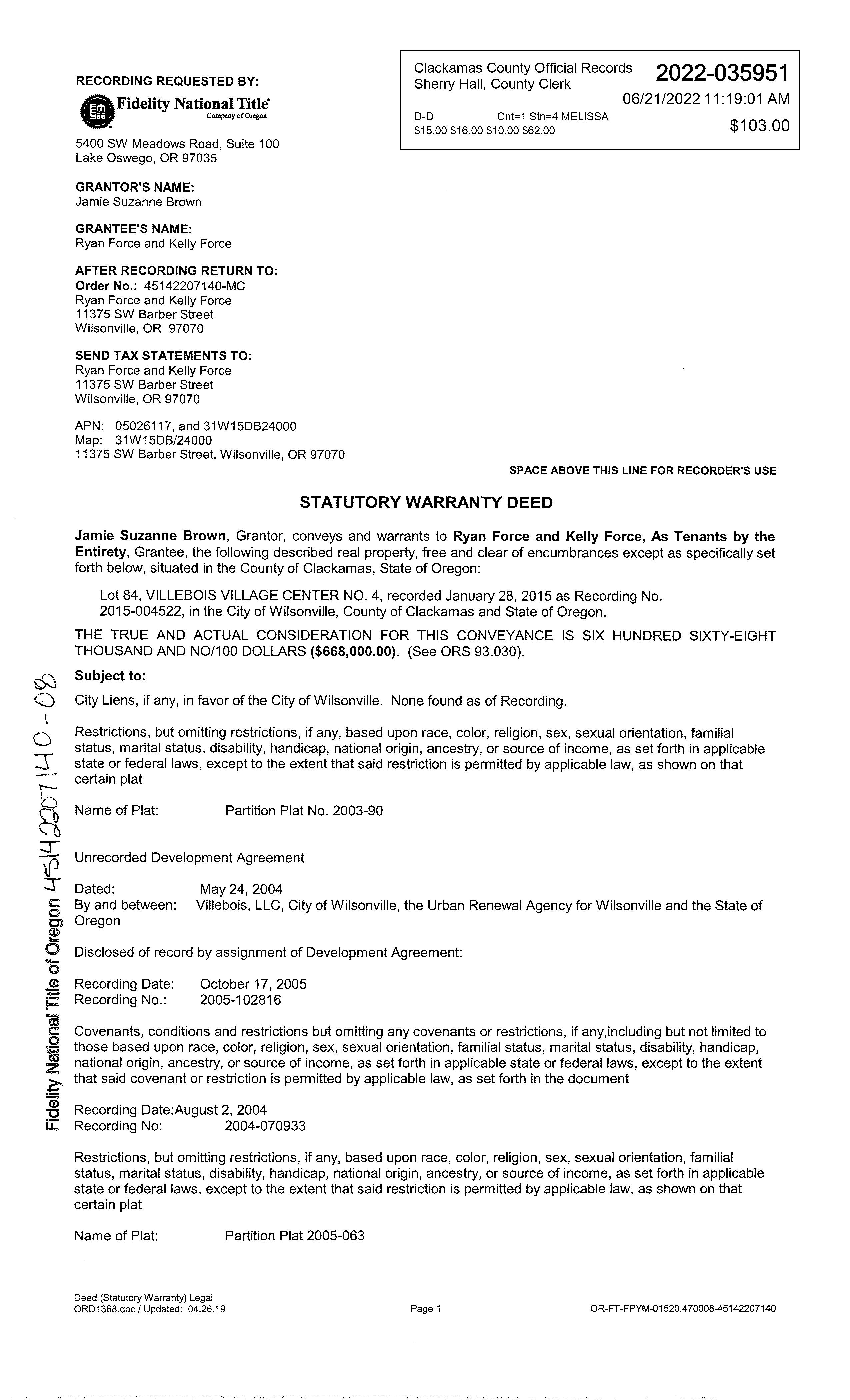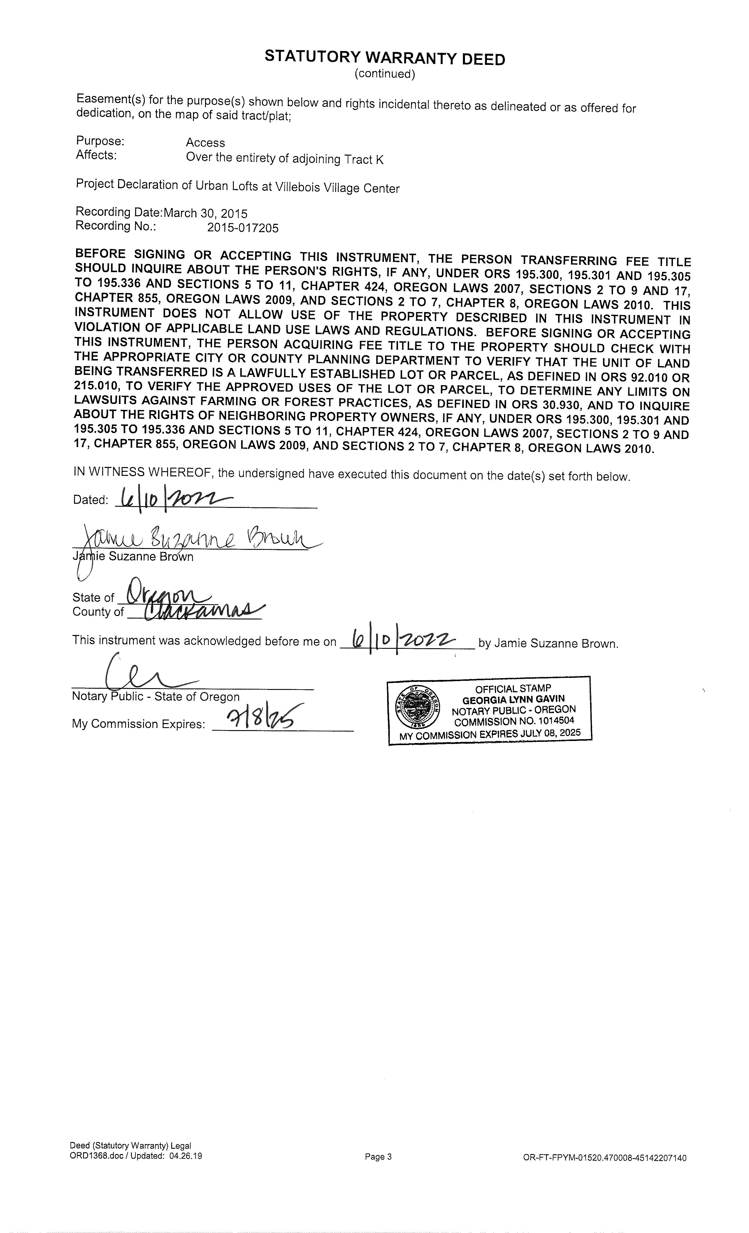 06/21/2022 06/22/2022 16:42:00 Recording Processed Property Transfer Filing No.: 414958, Warranty Deed, Recording No.: 2022-035951 06/21/2022 by SMALSOM