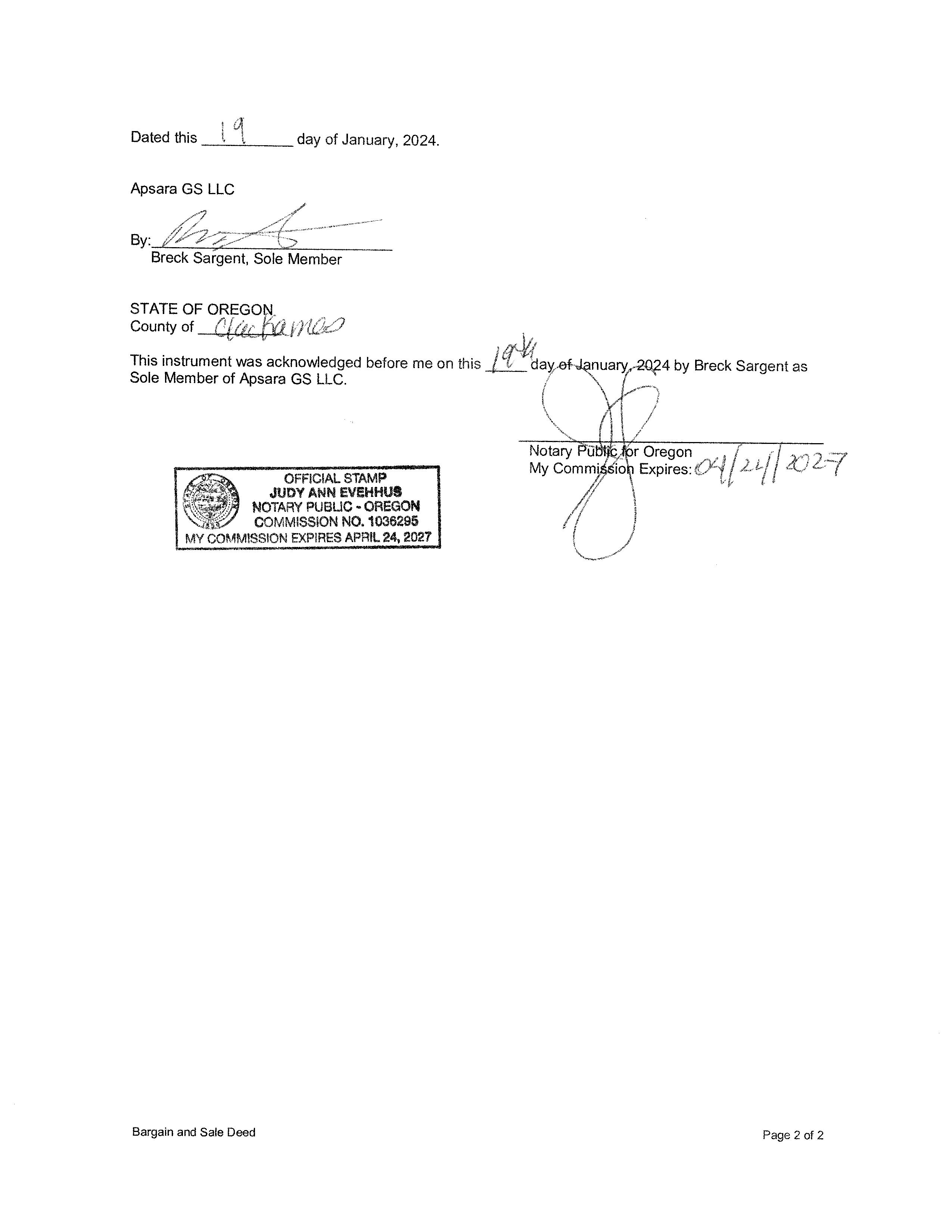 Property Transfer Filing No.: 437658, Bargain & Sale, Recording No.: 2024-002591 01/24/2024 by KKELLEY