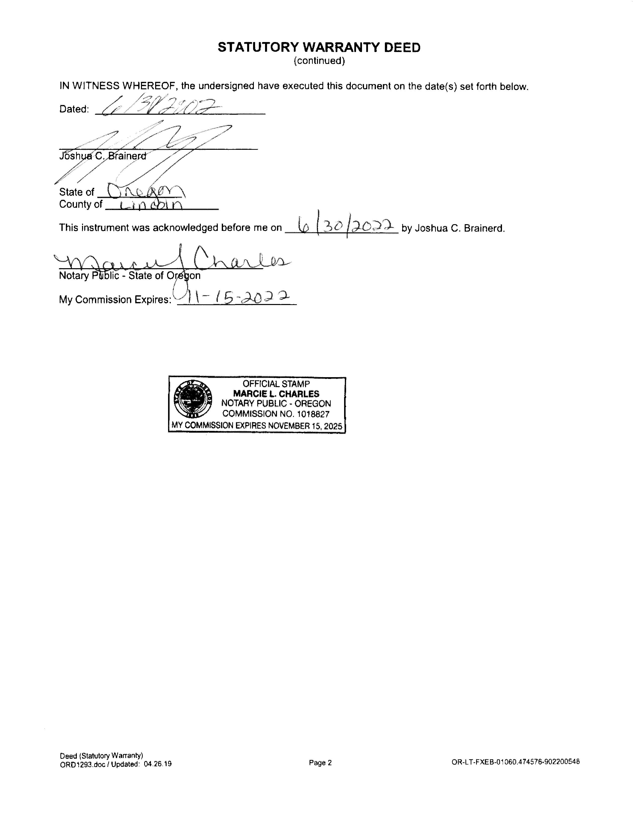 Mailing Address: 14825 SW 119TH AVE CLACKAMAS, OR 97015 Property Description County: