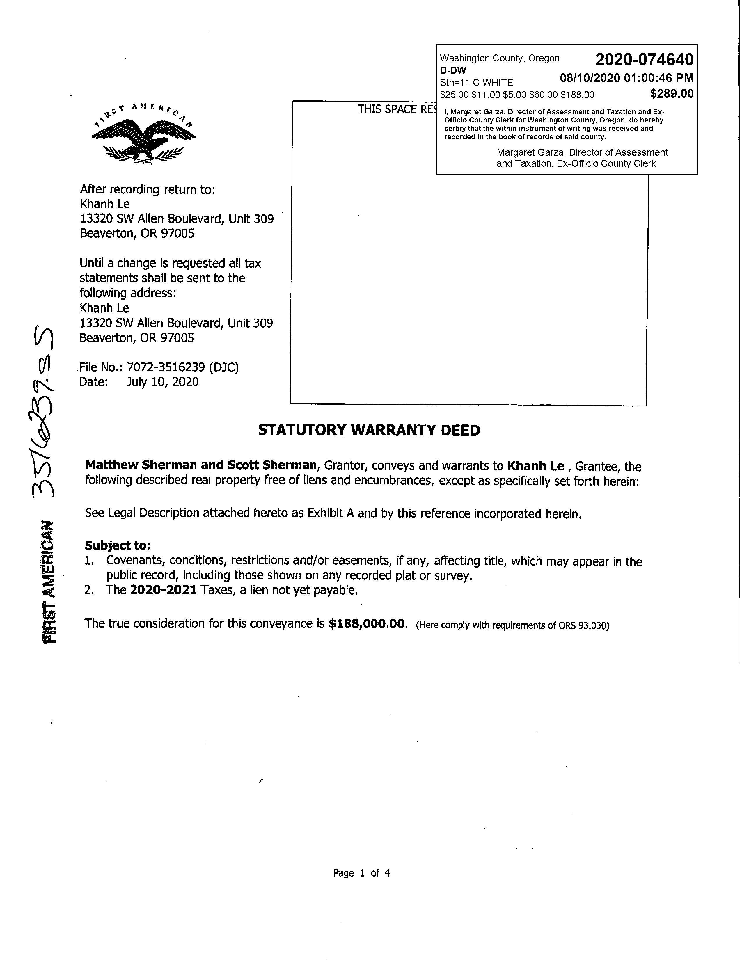 Rec Date:08/10/2020 Sale Price:$188,000 00 Doc Num:2020074640