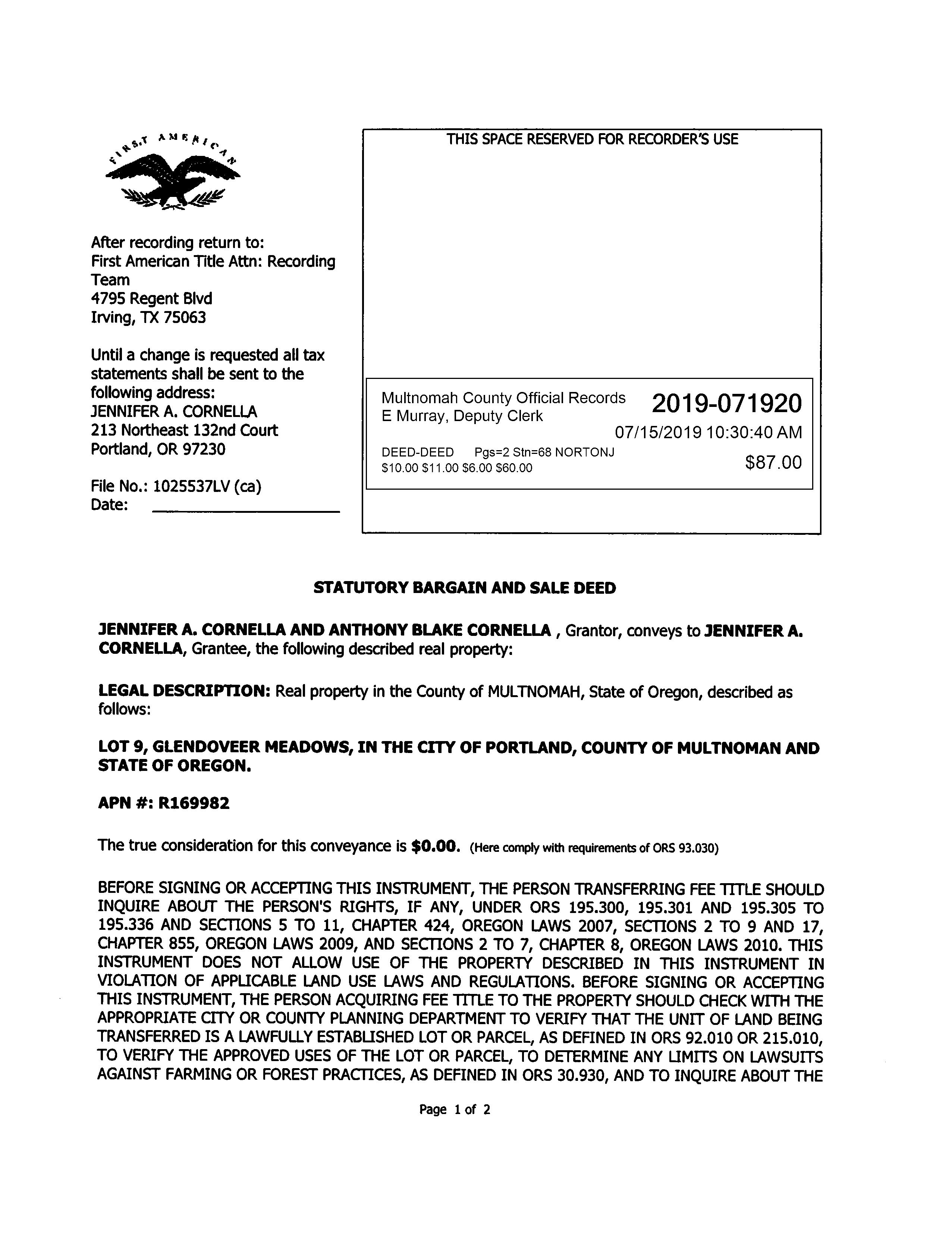 Rec Date:07/15/2019 Sale Price: Doc Num:2019071920 DocType:Deed