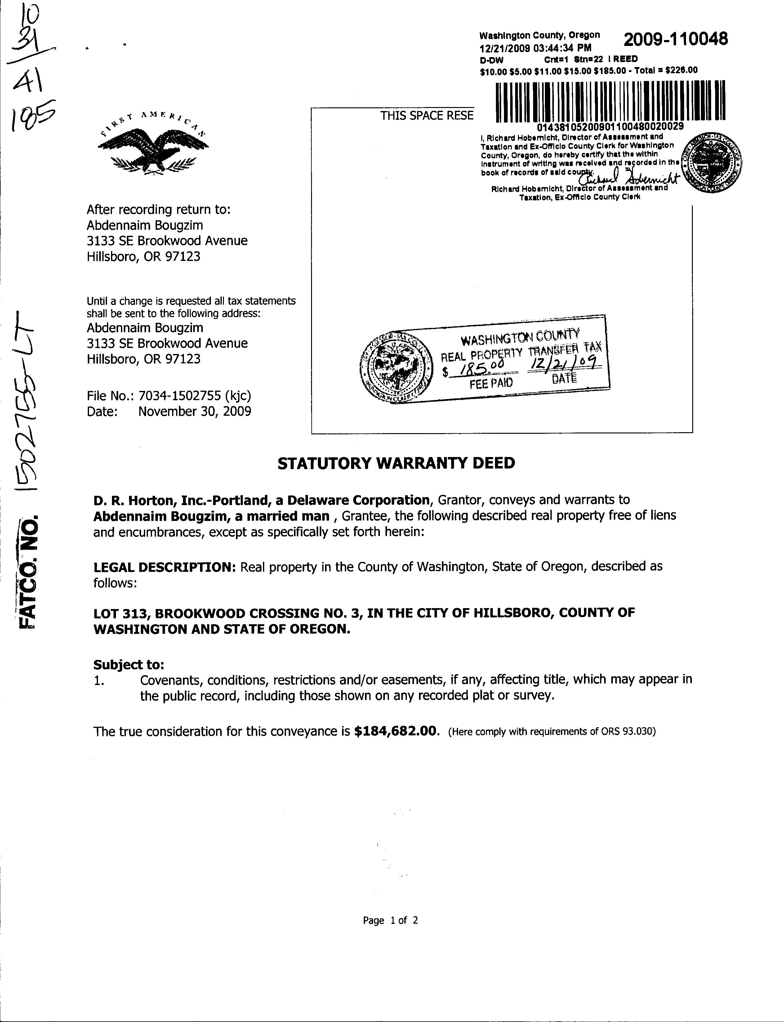 SALE DATE SELLER BUYER INST # SALE PRICE INST TYPE 12/8/2009 DR HORTON INCPORTLAND BOUGZIM, ABDENNAIM 2009110048 $184,682 DW HOME PAID USERS LOGIN Improvement #1 Improvement Type Beds / Baths - Town House 3 / 3 Sketch