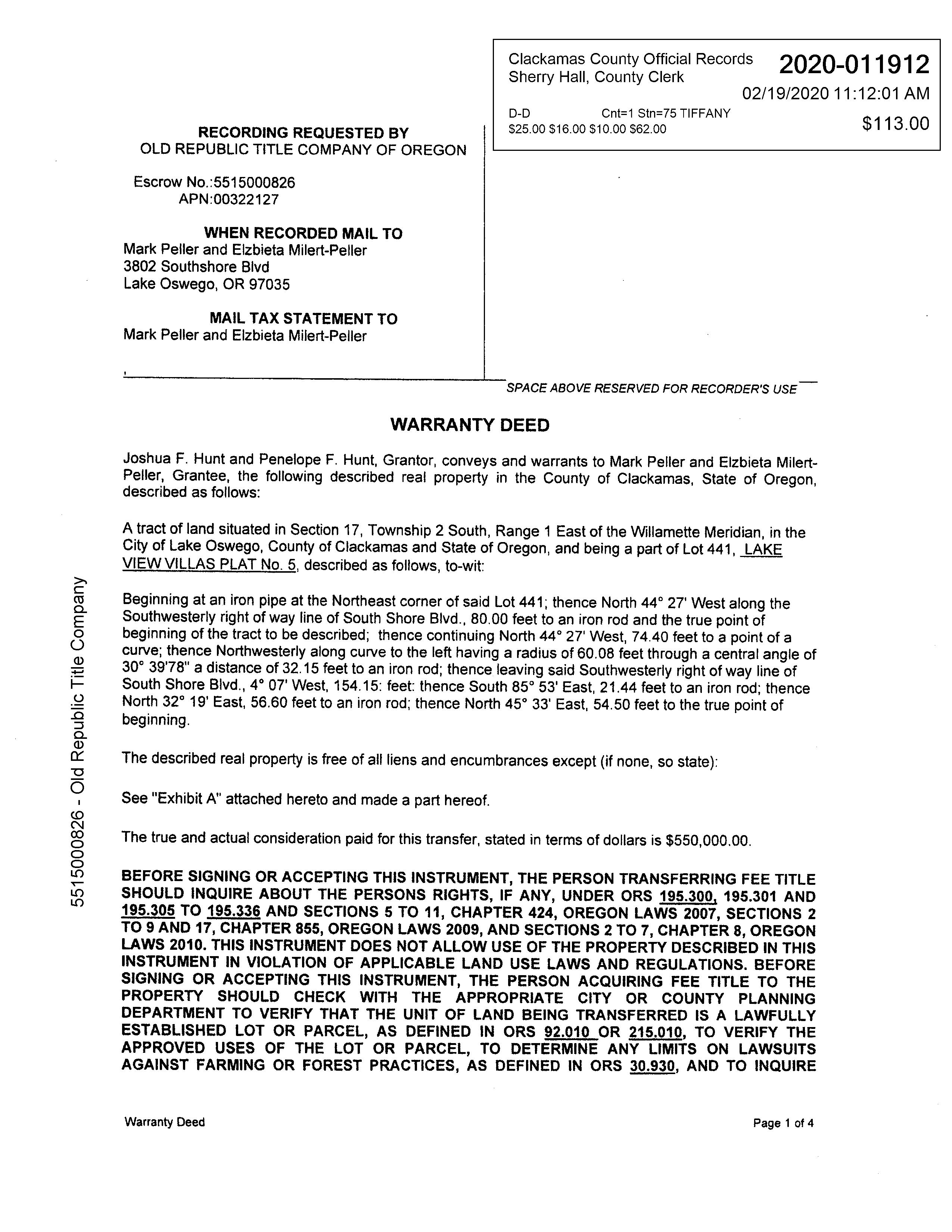 ParcelNumber 00322127 PropertyAddress 3802 SOUTH SHORE BLVD , LAKE OSWEGO, OR 97035