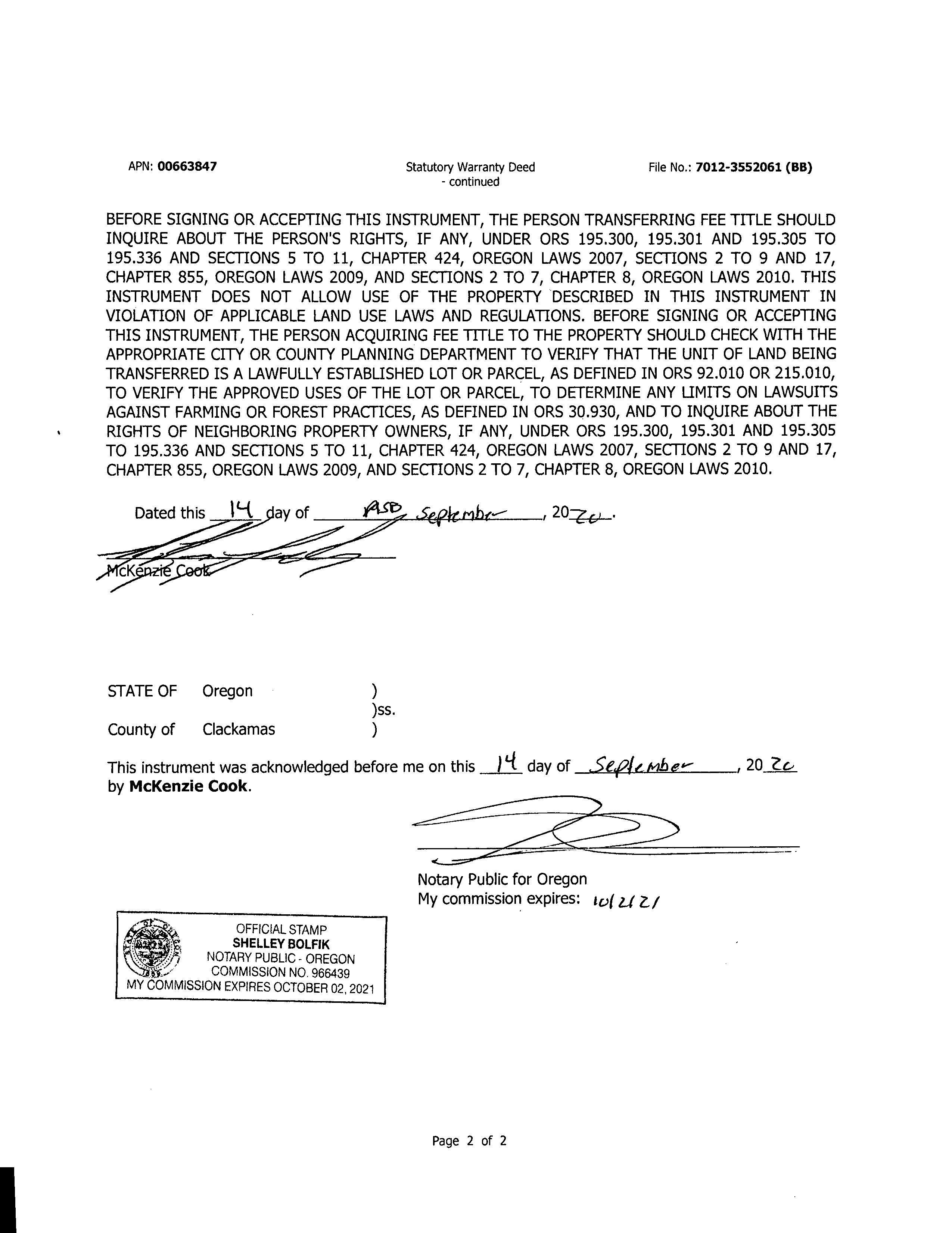 09/17/2020 09/21/2020 15:17:00 Taxpayer Changed Property Transfer Filing No.: 378586 09/17/2020 by SMALSOM