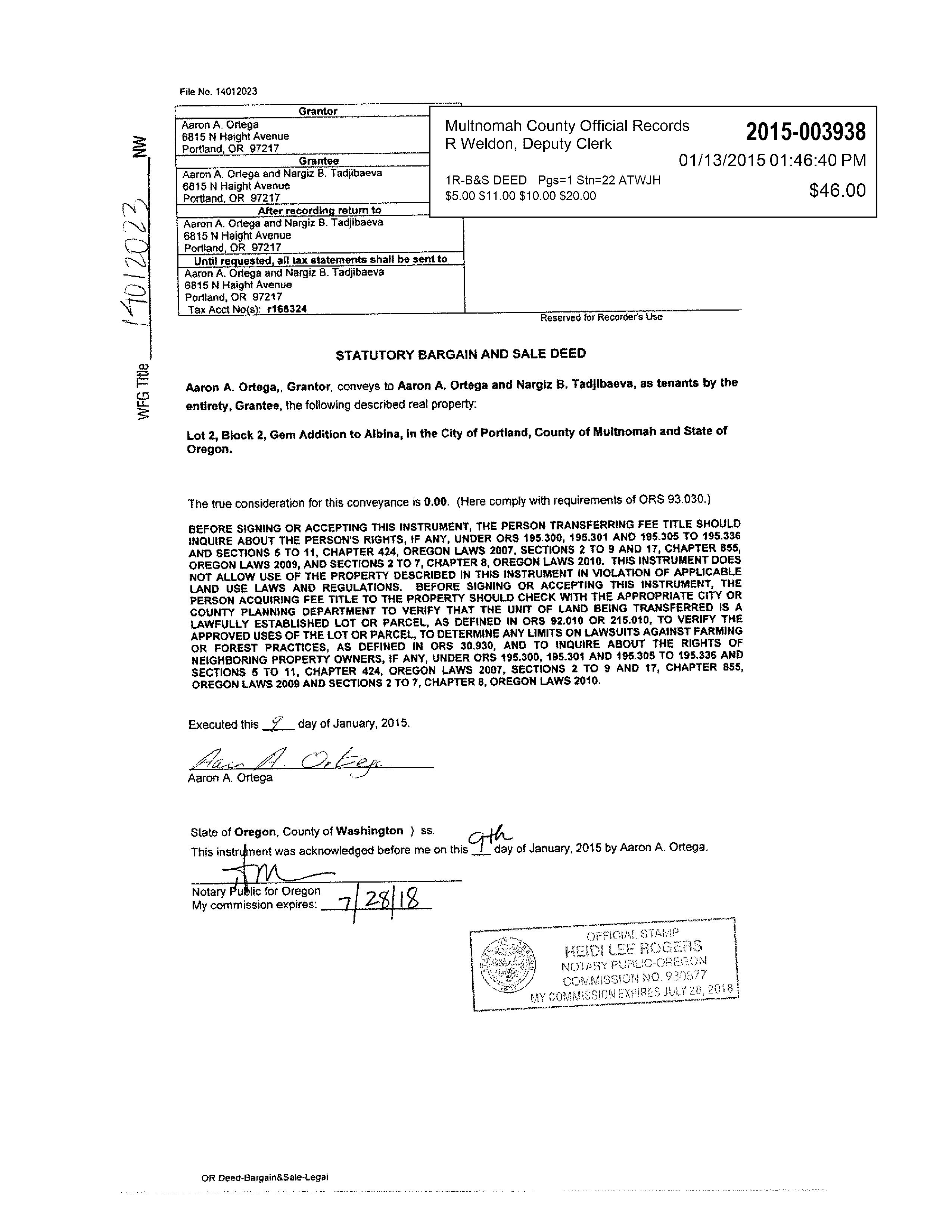 INFORMATION Owner Name ORTEGA,AARONA&TADJIBAEVA,NARGIZB Mailing Address 6815NHAIGHTAVEPORTLAND,OR97217