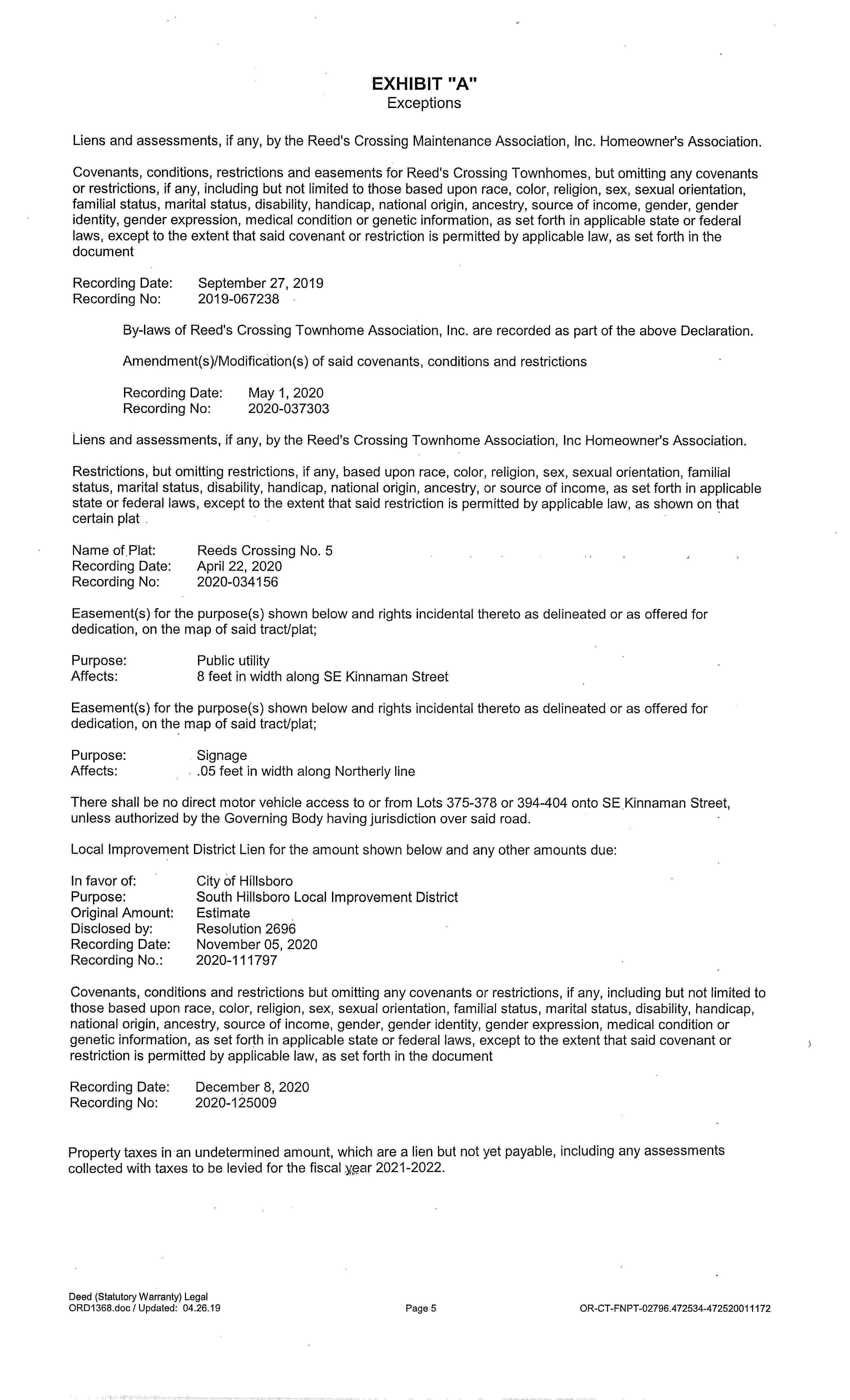 Eìective Date: Property Owner Property Address 2022 Real Market R2215261 UMSCHEID,MICHAELFRANCIS&CANNADY,MONIQUENOELLE 6842SECRIMSONLN,HILLSBORO,OR97123 $486,640 2023GENERALINFORMATION Property Status AActive Property Type Residential Legal Description REEDSCROSSINGNO.5,LOT396,ACRES0.05 Alternate Account NumberNeighborhood SHRCSOUTHHILLSBOROREED'SCROSSING Map Number 1S215AA05500 Property Use 1010:RESIDENTIALIMPROVED LevyCodeArea 029.13 2022 Certiíed Tax Rate 16.8822 2023OWNERINFORMATION Owner Name UMSCHEID,MICHAELFRANCIS&CANNADY, MONIQUENOELLE Mailing Address 6842SECRIMSONLNHILLSBORO,OR97123 RELATEDPROPERTIES Linked PropertiesProperty Group IDGrouped PropertiesSplit / Merge DateSplit / Merge AccountsSplit / Merge Message2022IMPROVEMENTS ? Expand/Collapse All 2022LANDSEGMENTS STATECODE SEGMENTTYPE LANDSIZE L1 05:TOWNHOUSE 0.05acres TOTALS 0.05acres CERTIFIED/INPROCESSVALUES YEAR IMPROVEMENTS LAND RMV SPECIALUSE ASSESSEDVALUE 2022 $307,660 $178,980 $486,640 $0 $258,260 2021 $23,330 $168,720 $192,050 $0 $113,500 SALESHISTORY SALEDATE SELLER BUYER INST# SALEPRICE INSTTYPE 7/6/2021 WEEKLEYHOMESLLC UMSCHEID,MICHAELFRANCIS&CANNADY,MONIQUENOELLE 2021076185 $425,416 DW 12/2/2020 GLC-SOUTHHILLSBOROLLC WEEKLEYHOMESLLC 2020125008 $3,236,000 DW
