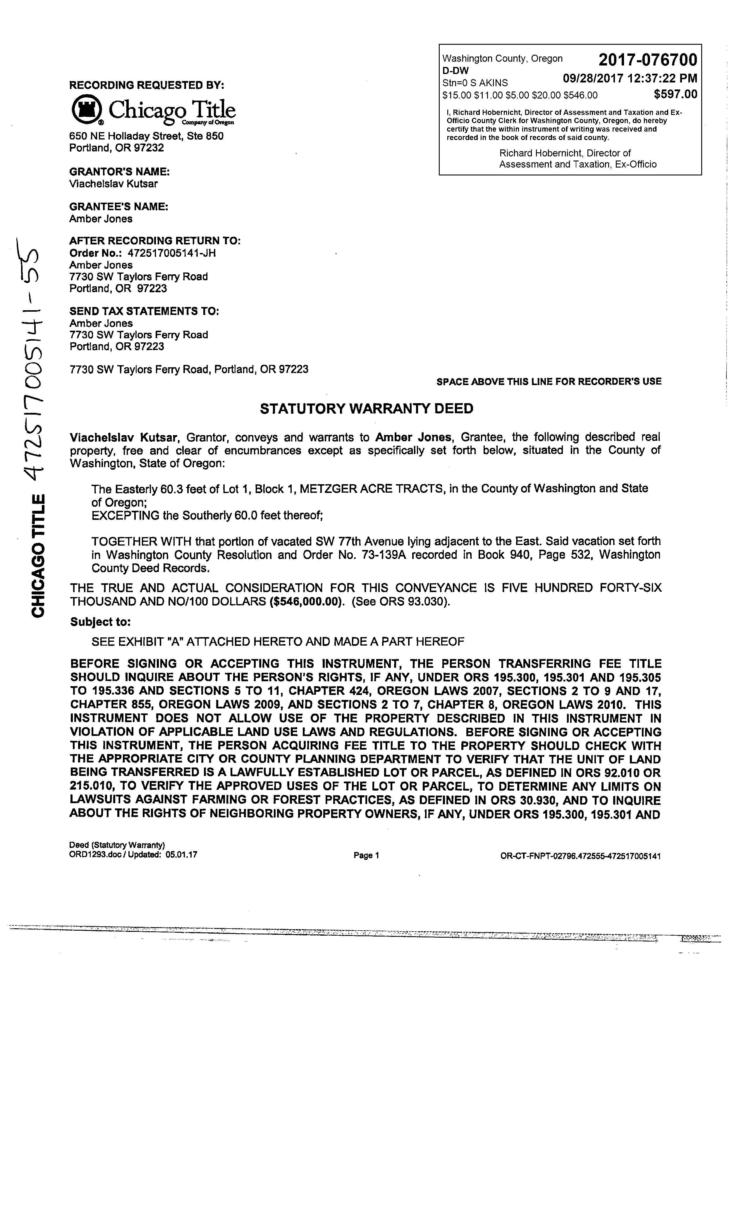Rec Date:09/28/2017 Sale Price:$546,000 00