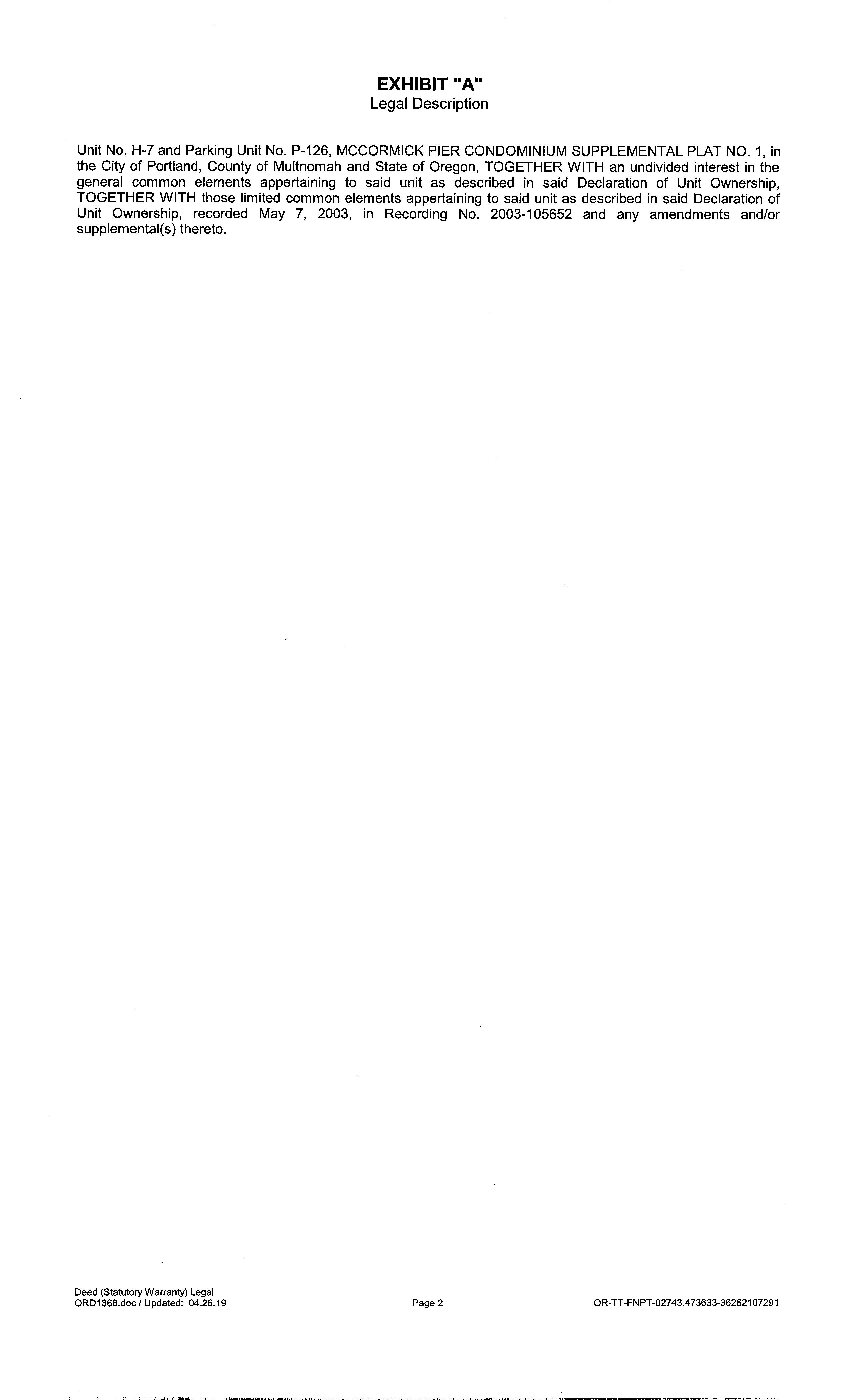 Legal Description MCCORMICKPIERCONDOMINIUM,LOTH-7