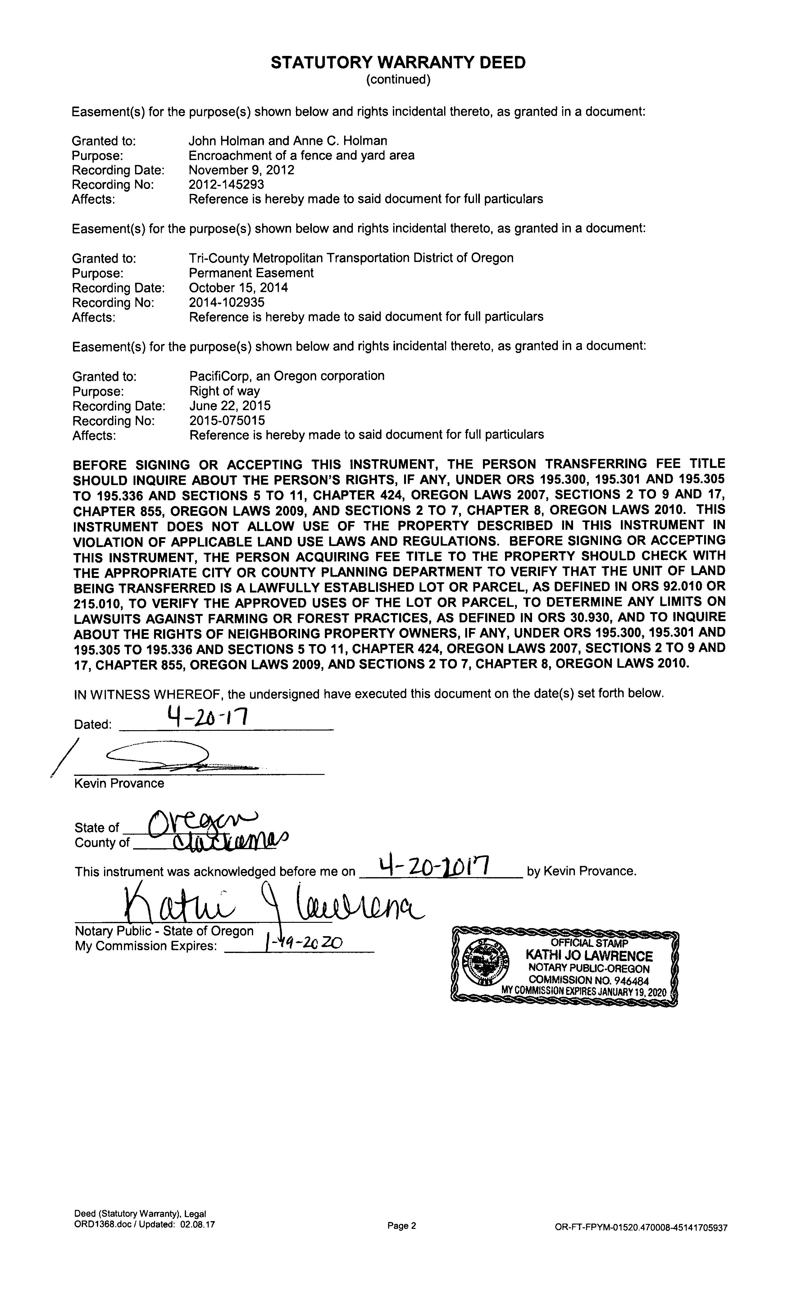 Grantor:PROVANCE KEVIN