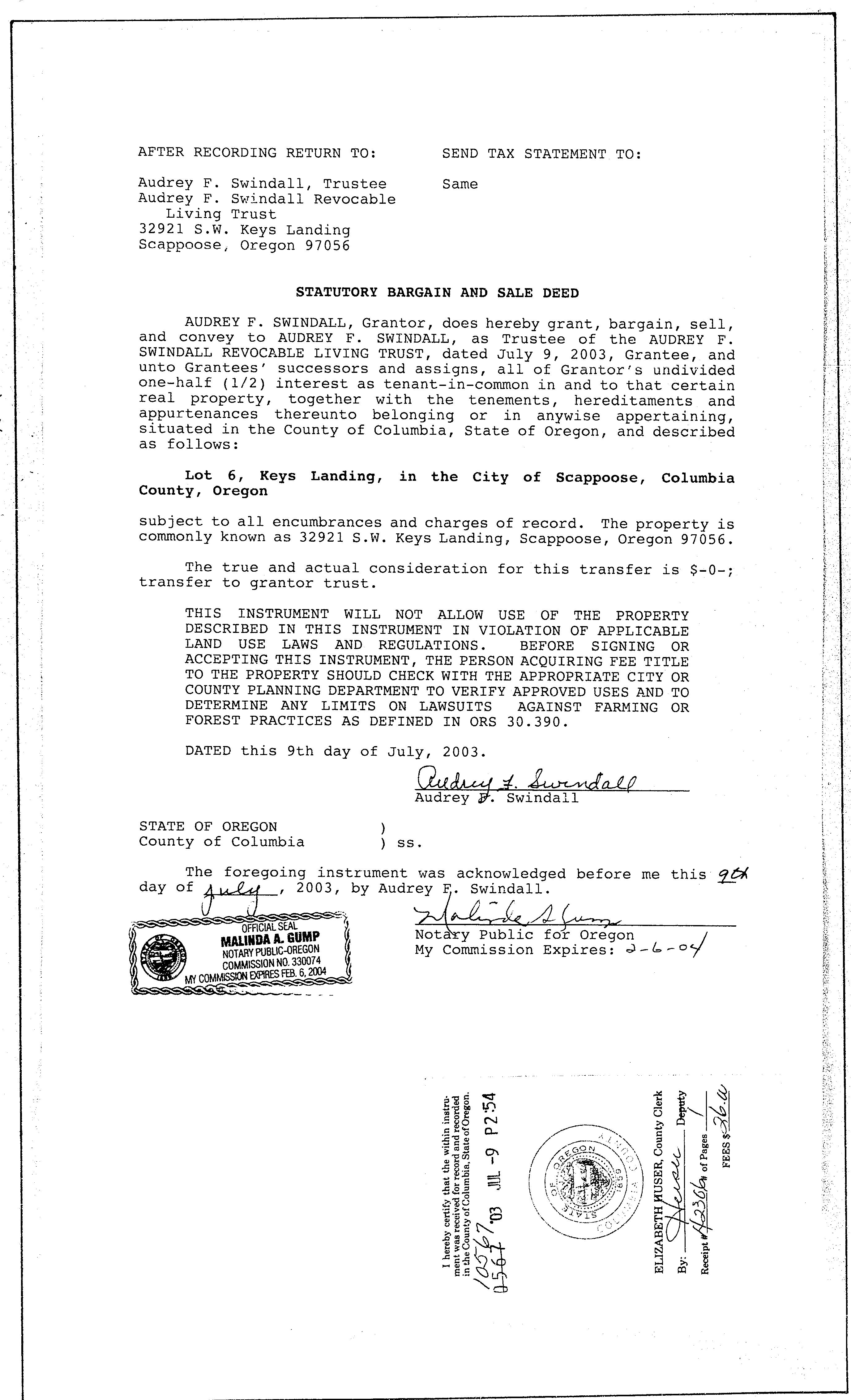 Mailing Address: 32921 SW KEYS LNDG SCAPPOOSE, OR 97056-2625
