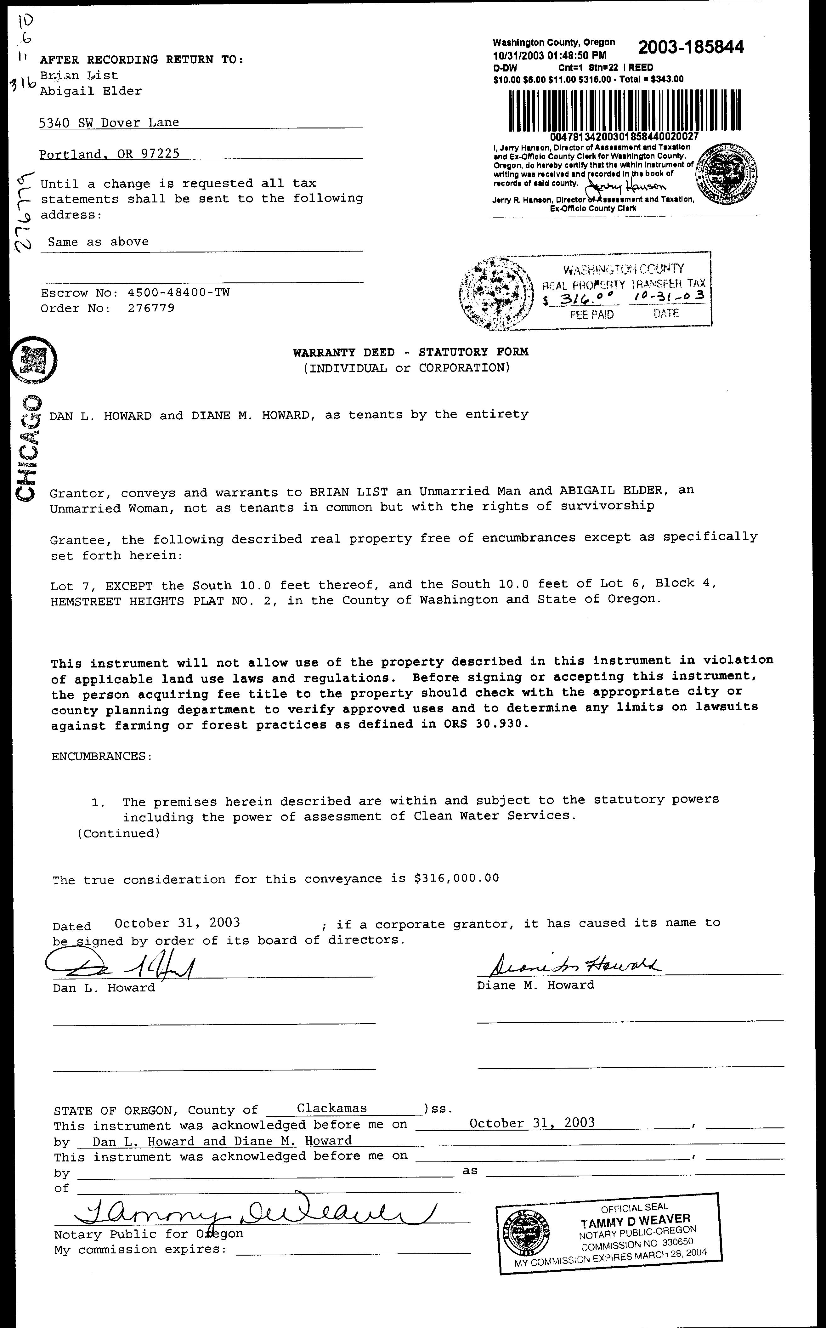 Property Owner Property Address 2023 Real Market Value R99707 LIST, BRIAN & ELDER, ABIGAIL 5340 SW DOVER LN, BEAVERTON, OR 97225 $738,250 Property Page: Property Details 2024 GENERAL INFORMATION Property Status A Active Property Type Residential Legal Description HEMSTREET HEIGHTS NO.2, BLOCK 4, LOT PTS 6 & 7 Alternate Account NumberNeighborhood DOVR DOVER Map Number 1S113DA05100 Property Use 1010: RESIDENTIAL IMPROVED Levy Code Area 052.43 2023 Certi ed Tax Rate 21.1328 2024 OWNER INFORMATION Owner Name LIST, BRIAN & ELDER, ABIGAIL Mailing Address 5340 SW DOVER LN PORTLAND, OR 97225 RELATED PROPERTIES Linked PropertiesProperty Group IDGrouped PropertiesSplit / Merge DateSplit / Merge AccountsSplit / Merge Message2023 IMPROVEMENTS ๏ Expand/Collapse All 2023 LAND SEGMENTS STATE CODE SEGMENT TYPE LAND SIZE L1 01: SGL FAM IMP HS 0.23 acres TOTALS 0.23 acres CERTIFIED / IN PROCESS VALUES YEAR IMPROVEMENTS LAND RMV SPECIAL USE ASSESSED VALUE 2023 $318,160 $420,090 $738,250 $0 $373,820 2022 $309,420 $420,090 $729,510 $0 $362,940 SALES HISTORY SALE DATE SELLER BUYER INST # SALE PRICE INST TYPE 10/31/2003 HOWARD, DAN L AND DIANE M LIST, BRIAN & ELDER, ABIGAIL 2003185844 $316,000 DW 7/1/1984 HOWARD, DAN L AND DIANE M 1984027859 $80,000 UNK HOME PAID USERS LOGIN ๏ Improvement #1 Improvement Type Beds / Baths - Single-Family Residence 3 / 3 ๏ผ Sketch ๏ Improvement #2 Improvement Type - Other Improvements ๏ผ Sketch