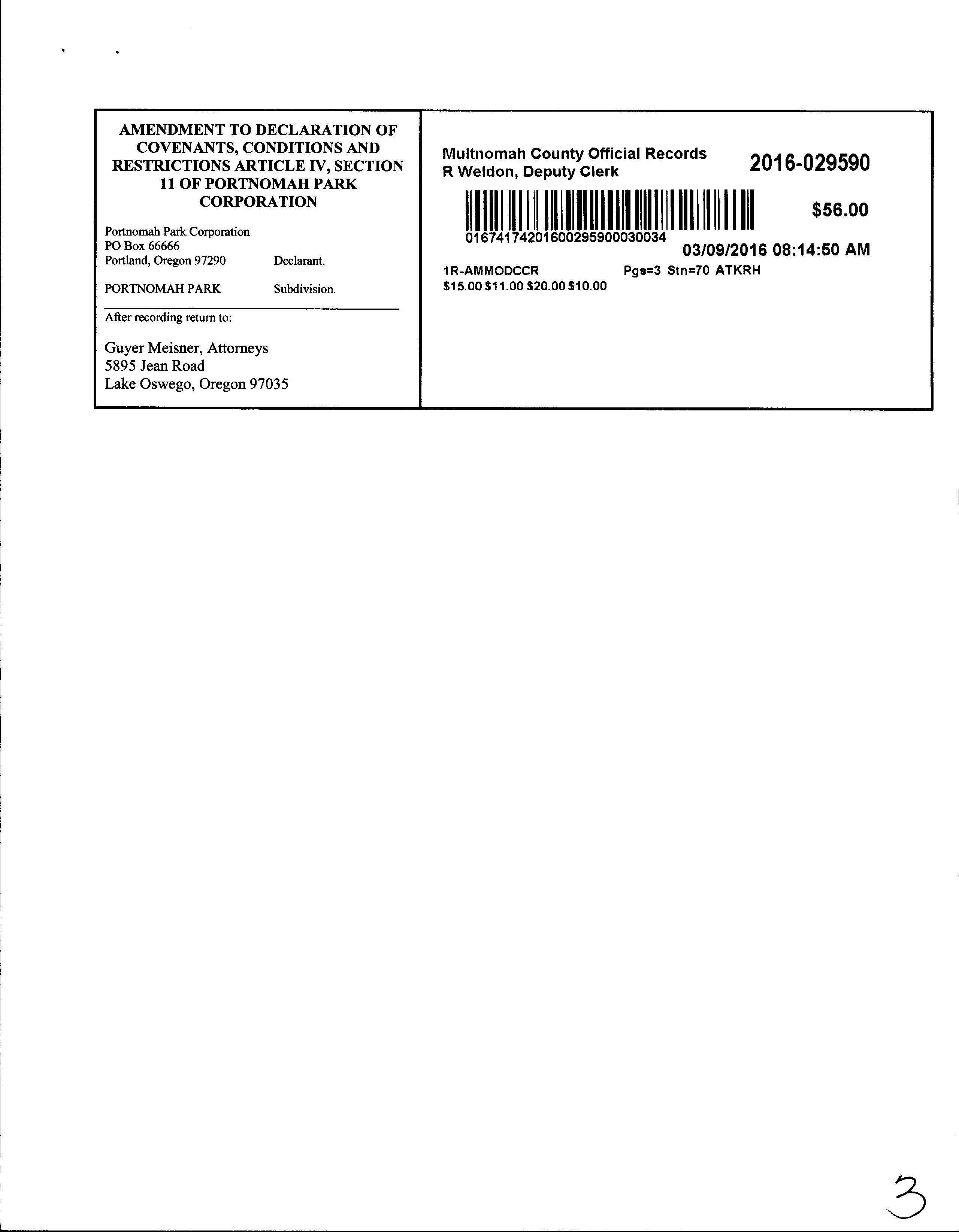 Tract / Subdivision: / Portnomah Park