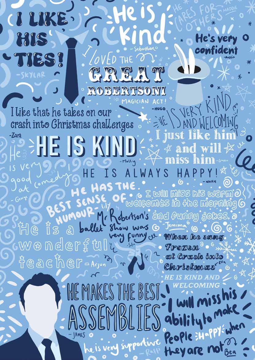 Ambar Mann, Head GirlWe want to say a big thank you to Mr Robertson. Thank you for being there for us every day, leading assemblies, caring about us, organising everything and making sure the school is as excellent as it can be!