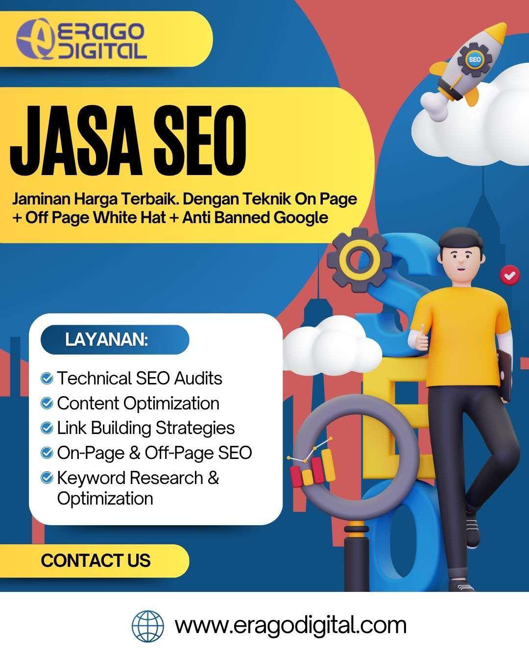 Website Anda belum muncul di halaman pertama Google? Saatnya menggunakan jasa optimasi SEO website dari PT Erago Digital. Kami memiliki tim ahli SEO yang siap mengoptimalkan performa situs Anda secara menyeluruh, mulai dari teknikal, konten, hingga off-page SEO. Kami pastikan website Anda lebih mudah ditemukan calon pelanggan. Dengan layanan yang transparan dan hasil yang terukur, PT Erago Digital adalah pilihan tepat. Jadikan website Anda aset digital yang menghasilkan. Hubungi kami di 081222555757 untuk penawaran terbaik.