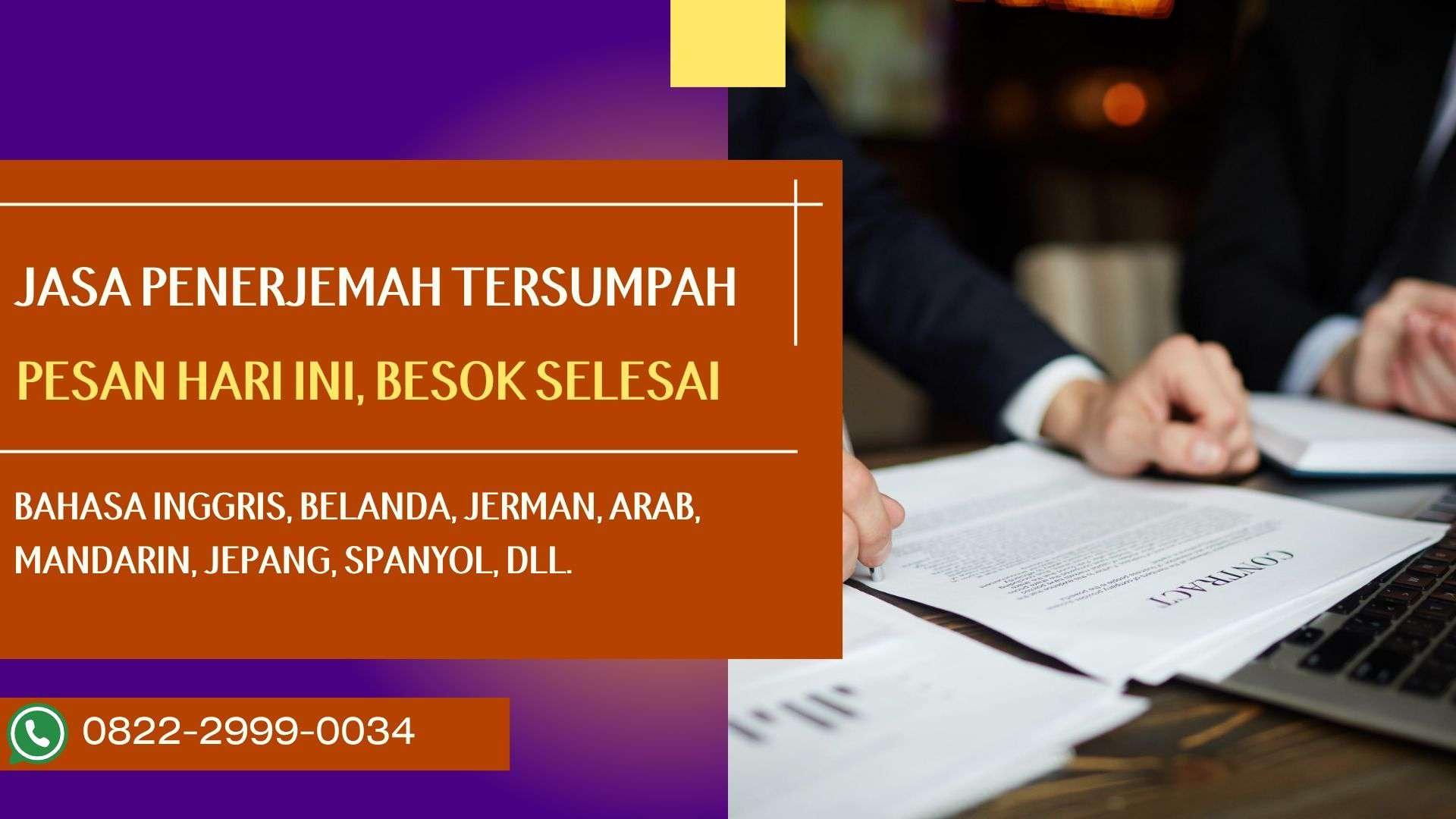 Perusahaan kami hadir sebagai mitra terpercaya dalam menyediakan jasa penerjemah tersumpah di Bengkayang. Kami menyadari pentingnya keaslian dokumen, terutama untuk keperluan legal dan administrasi. Oleh karena itu, layanan kami didukung oleh penerjemah bersertifikat dan berpengalaman yang mampu menerjemahkan berbagai jenis dokumen secara akurat dan sah. Dengan pelayanan yang cepat dan aman, perusahaan kami mendukung proses legalisasi, pengurusan dokumen, maupun kebutuhan bisnis Anda. Hubungi TLP/WA 0822-2999-0034 untuk mendapatkan layanan penerjemahan yang profesional dan terpercaya.