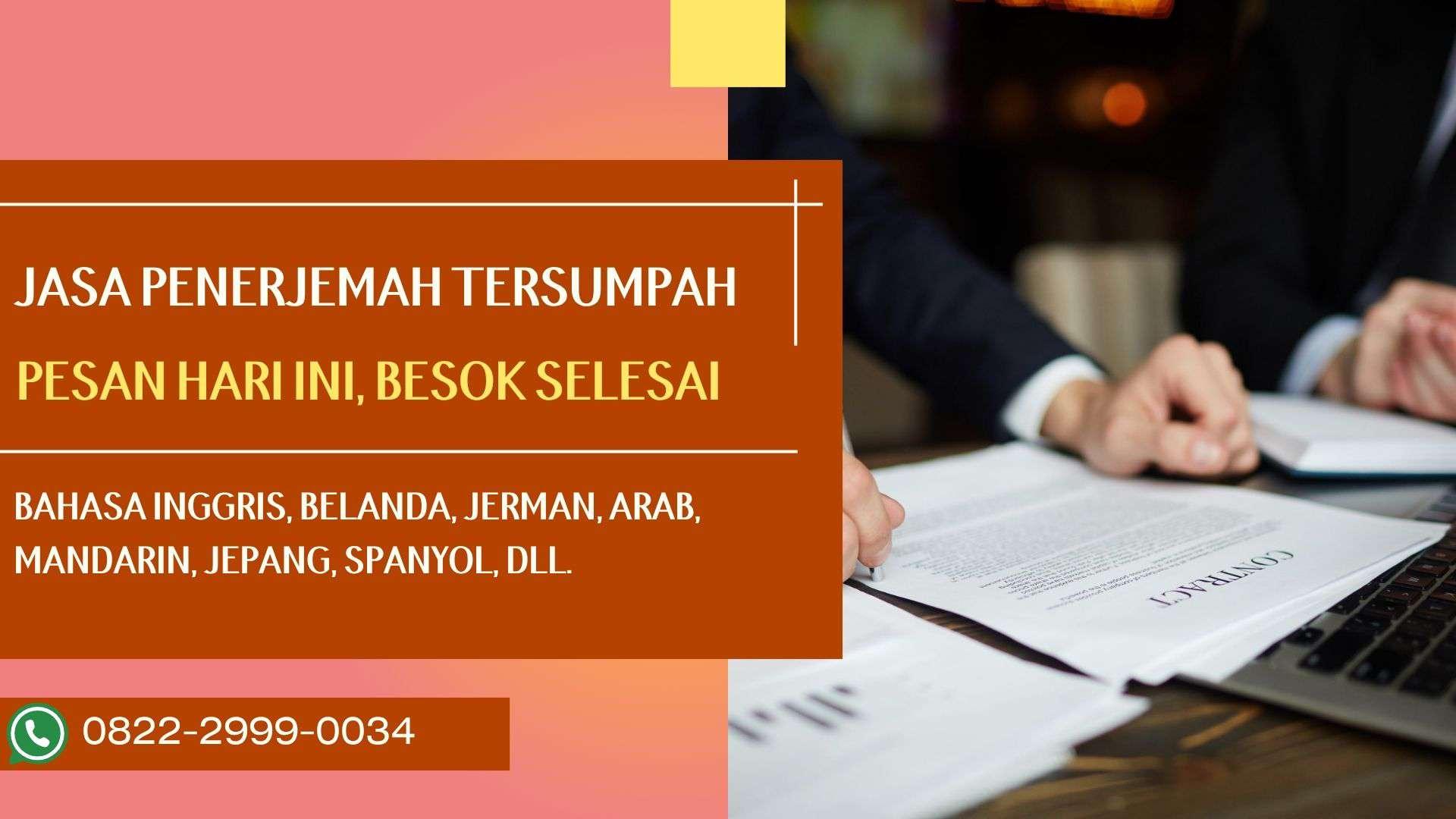 Murung Raya membutuhkan layanan penerjemah tersumpah yang profesional dan terpercaya. Perusahaan kami hadir sebagai solusi dengan tenaga penerjemah bersertifikat dan berpengalaman dalam menerjemahkan dokumen resmi dari berbagai bidang. Kami menjamin hasil yang akurat, sesuai standar, dan rahasia terjaga. Pelayanan kami meliputi penerjemahan dokumen hukum, akademik, dan bisnis yang dilakukan dengan cepat dan efisien. Hubungi perusahaan kami melalui TLP/WA 0822-2999-0034 untuk mendapatkan layanan penerjemahan terbaik dari perusahaan kami yang selalu mengutamakan kepuasan pelanggan.