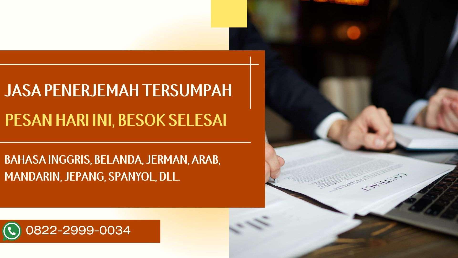 Untuk kebutuhan penerjemah tersumpah di Sorong, perusahaan kami adalah pilihan terbaik. Kami menawarkan layanan penerjemahan dokumen resmi dan legal oleh tenaga bersertifikat, memastikan hasil yang akurat dan cepat. Kerahasiaan dokumen terjamin. Hubungi kami di TLP/WA 0822-2999-0034 untuk layanan profesional dan terpercaya.