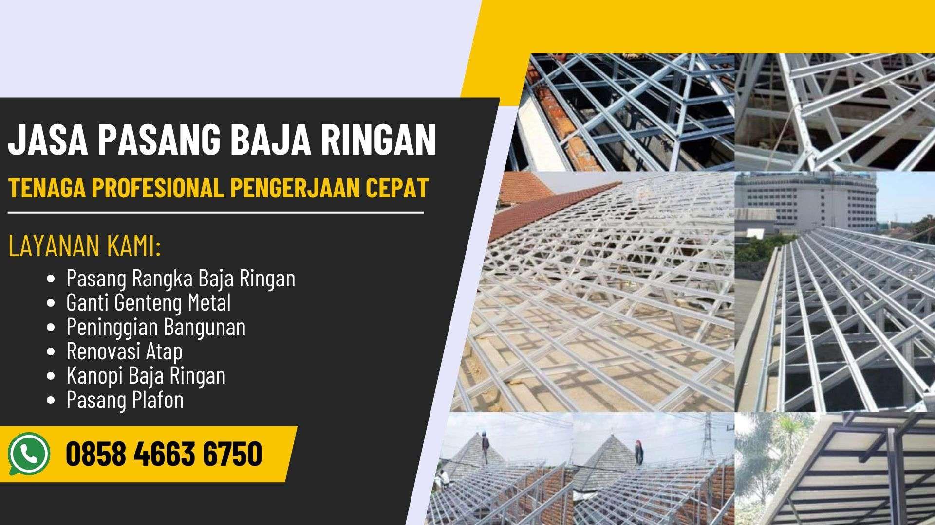 Kami menawarkan jasa pasang baja ringan di Donggala dengan tenaga ahli berpengalaman dan bahan berkualitas. Baja ringan dari kami tahan terhadap cuaca ekstrem dan gempa, serta mampu memberikan kekuatan maksimal untuk struktur bangunan. Tim kami bekerja secara efisien dari tahap pengukuran hingga pemasangan, memastikan hasil yang rapi dan kokoh. Hubungi TLP/WA 0858 4663 6750 untuk penawaran terbaik.