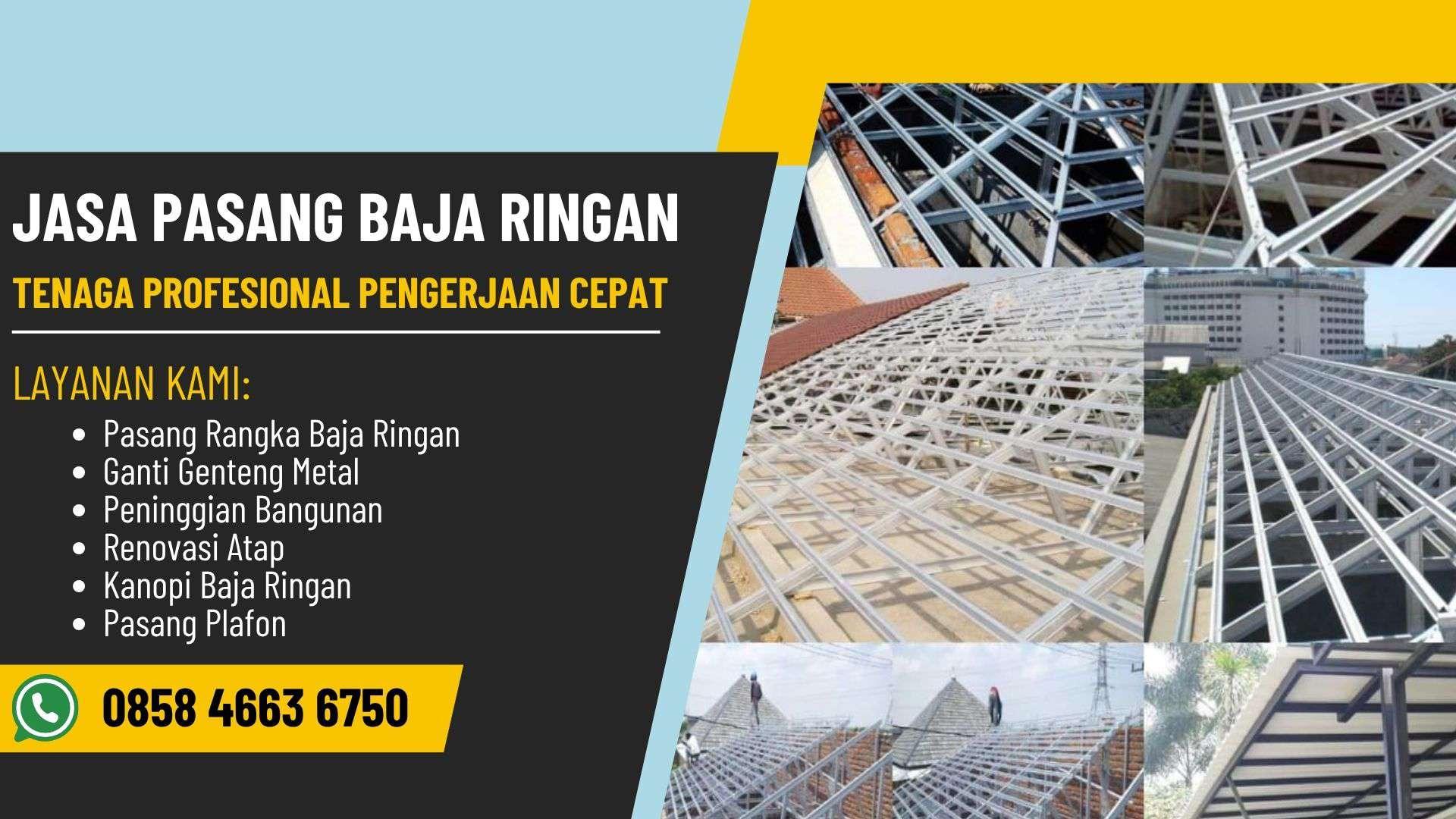 Kami menawarkan jasa pasang baja ringan di Konawe yang berpengalaman dan terpercaya. Baja ringan dari kami tahan terhadap cuaca ekstrem, gempa, dan korosi, cocok untuk pembangunan rumah, kantor, dan fasilitas industri. Tim kami bekerja secara profesional dari tahap pengukuran, pengangkutan, hingga pemasangan, memastikan hasil yang rapi dan kokoh. Hubungi TLP/WA 0858 4663 6750 untuk layanan dan penawaran menarik.