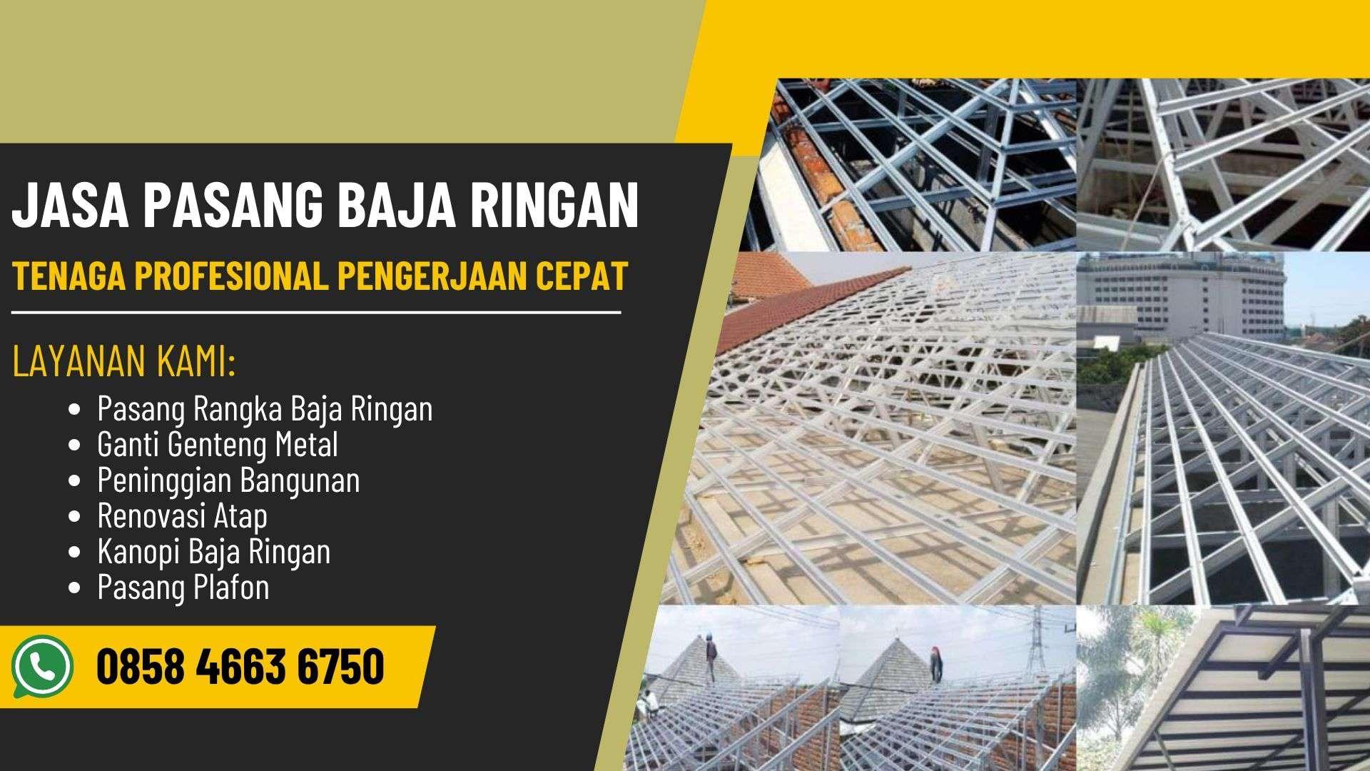 Kami melayani jasa pasang baja ringan di Nganjuk dengan bahan berkualitas dan tenaga berpengalaman. Baja ringan yang kami pasang memiliki keunggulan dari segi kekuatan dan keawetan. Proses pemasangan dilakukan secara cepat dan rapi, memastikan bangunan kokoh dan tahan lama. Hubungi TLP/WA 0858 4663 6750 dari Kami untuk info dan pemesanan dari Kami.