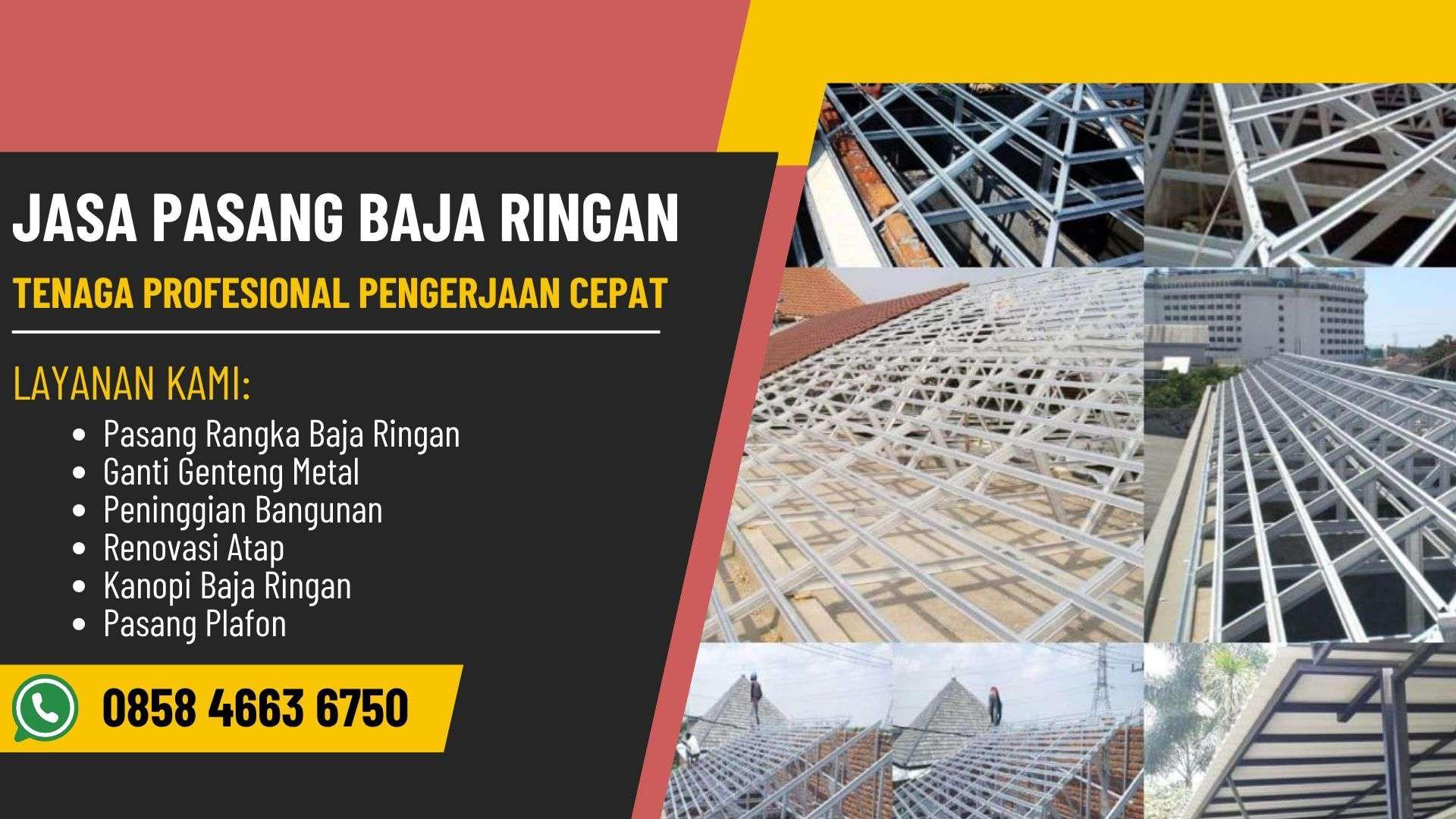 Di Sumba Barat, kami menawarkan jasa pasang baja ringan berkualitas dan terpercaya. Baja ringan dari kami tahan terhadap cuaca ekstrem dan gempa, serta mampu memberikan kekuatan maksimal untuk bangunan Anda. Tim kami bekerja secara efisien dari tahap pengukuran hingga pemasangan, memastikan hasil rapi dan kokoh. Hubungi TLP/WA 0858 4663 6750 untuk layanan lengkap dan penawaran menarik.