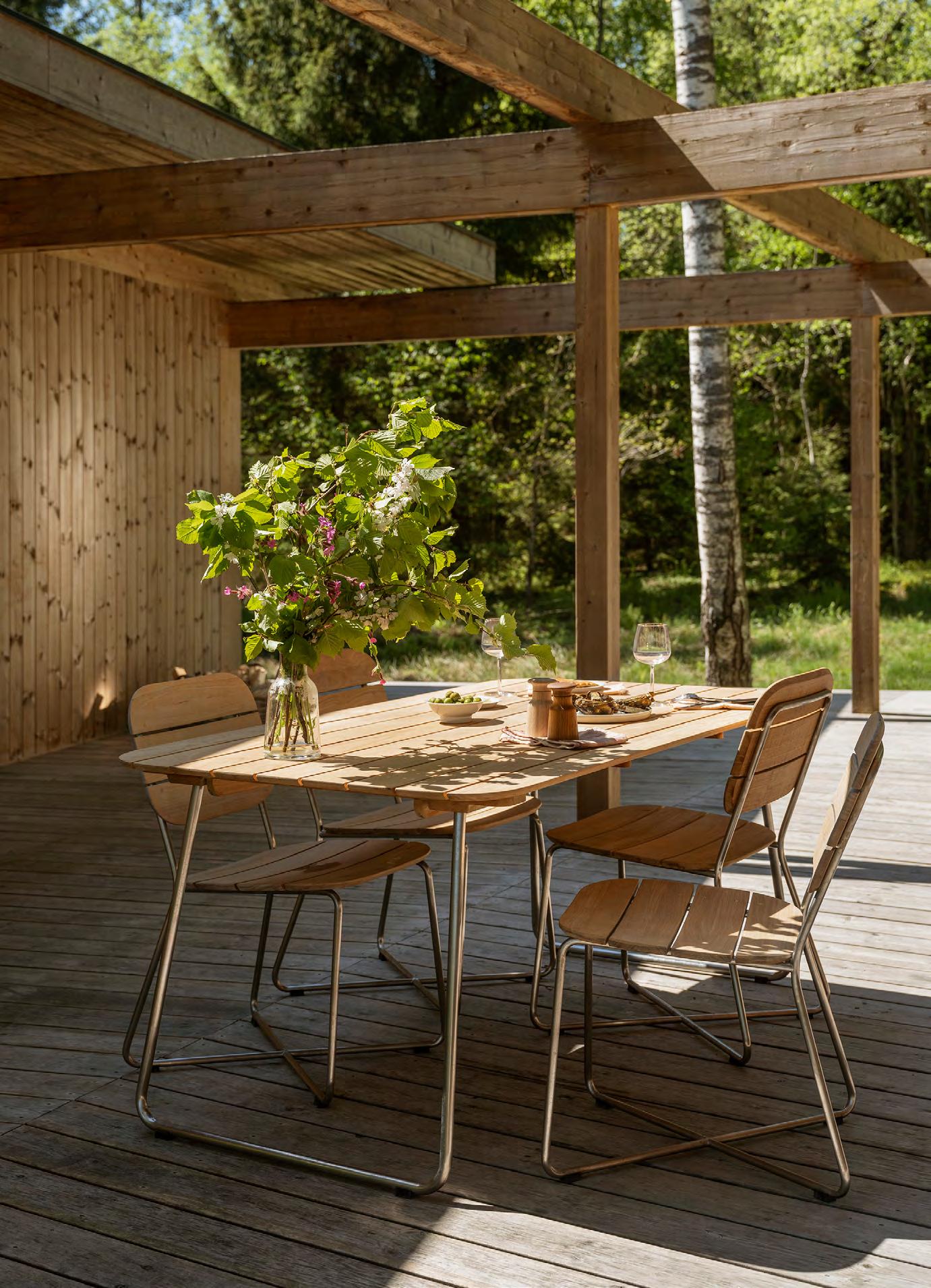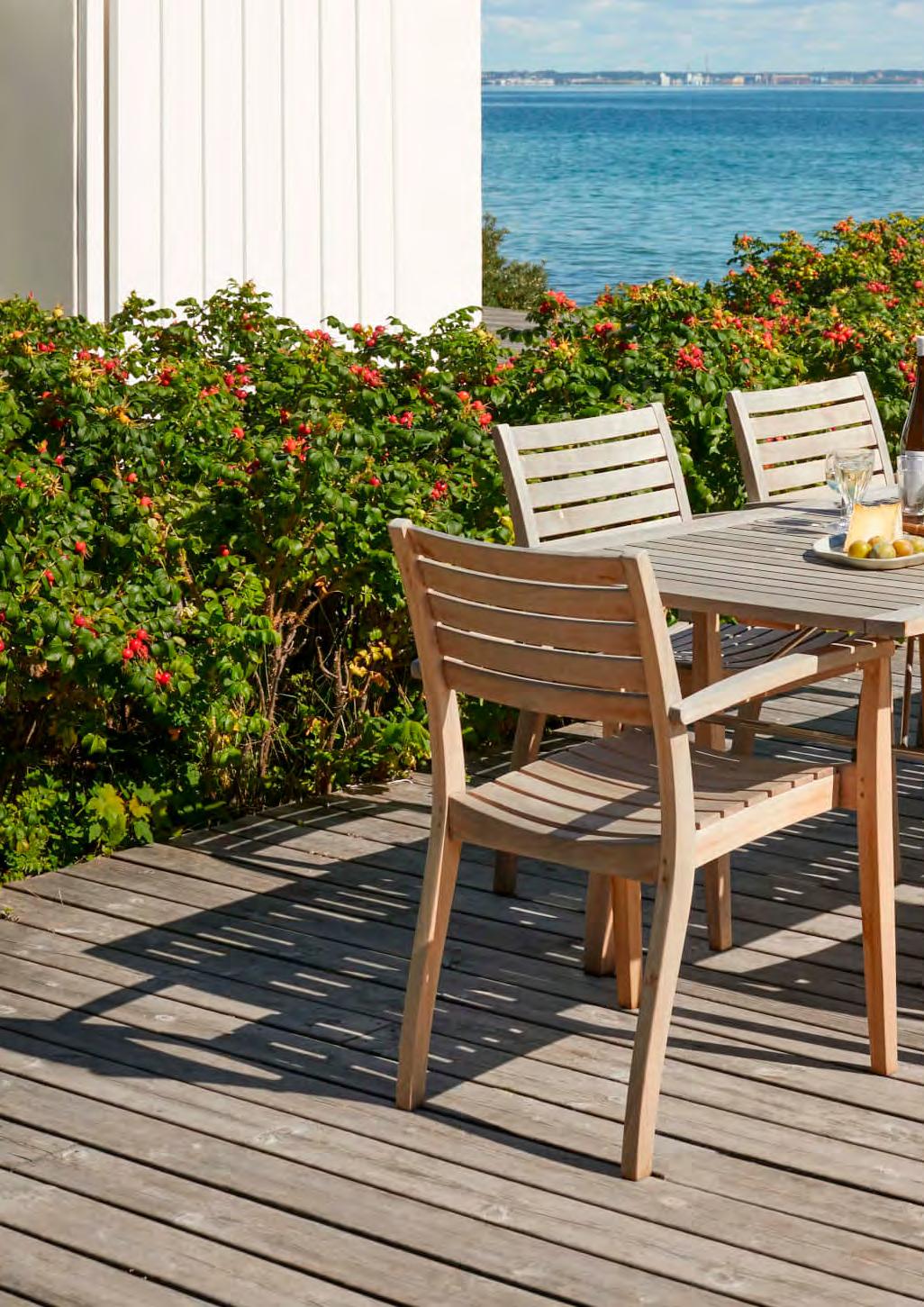 Selandia’s signature slight curves and elegant Nordic look with subtle French references that hint at long summer nights in the open air. Crafted from FSC™certified teak, the Selandia series of tables and chairs is made to age beautifully. Spare parts are available to ensure it lasts a lifetime.