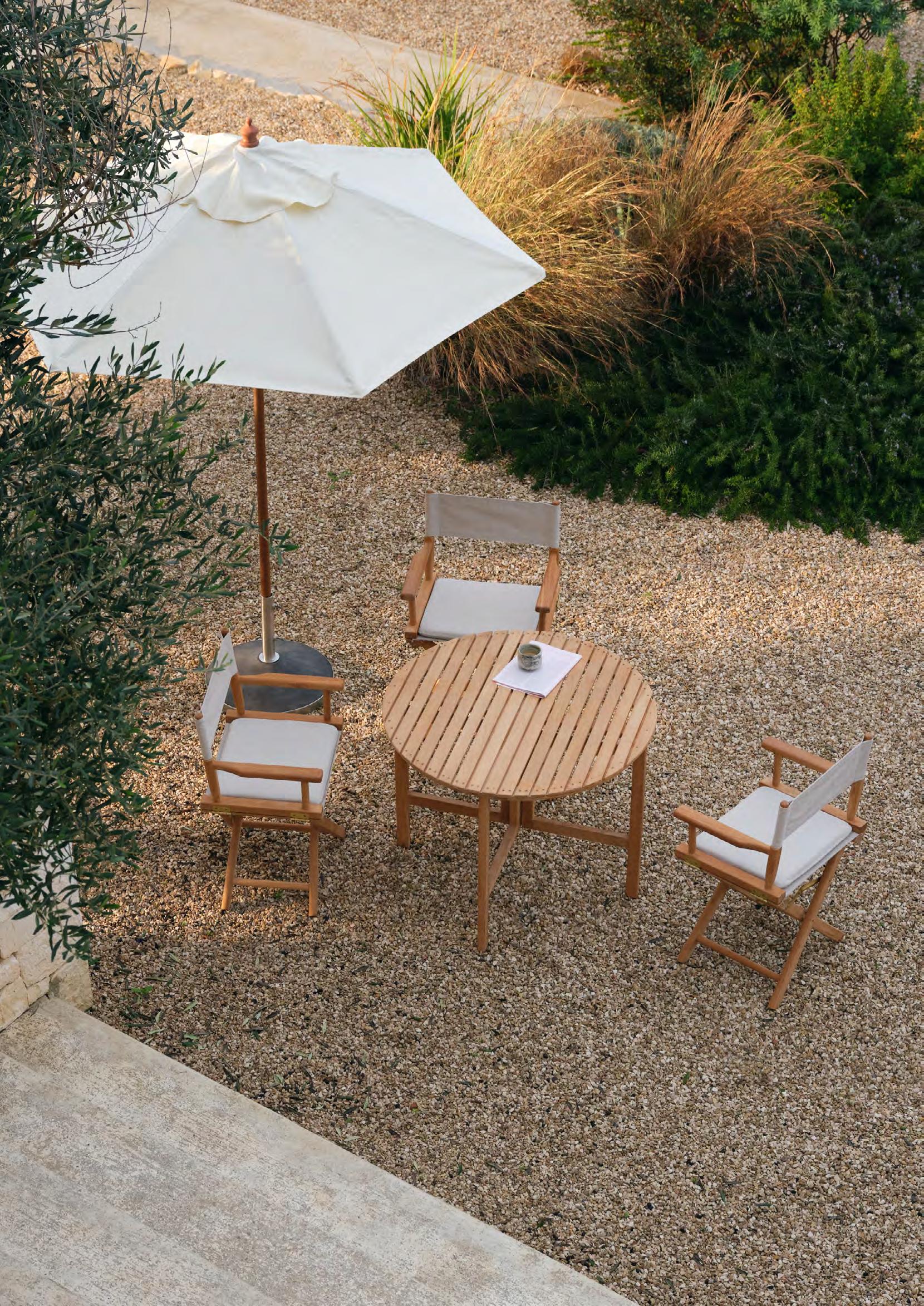 Director’s Chair is a Nordic interpretation of the classic director’s chair, defined by a clear silhouette and a foldable construction. Crafted with a solid teak frame and brass fittings, the construction is precise and durable, with materials chosen to age well over time. Available in both indoor and outdoor-ready versions.