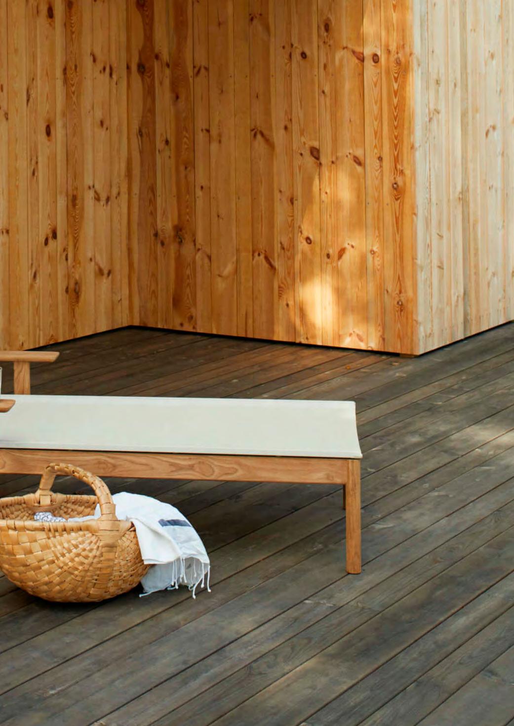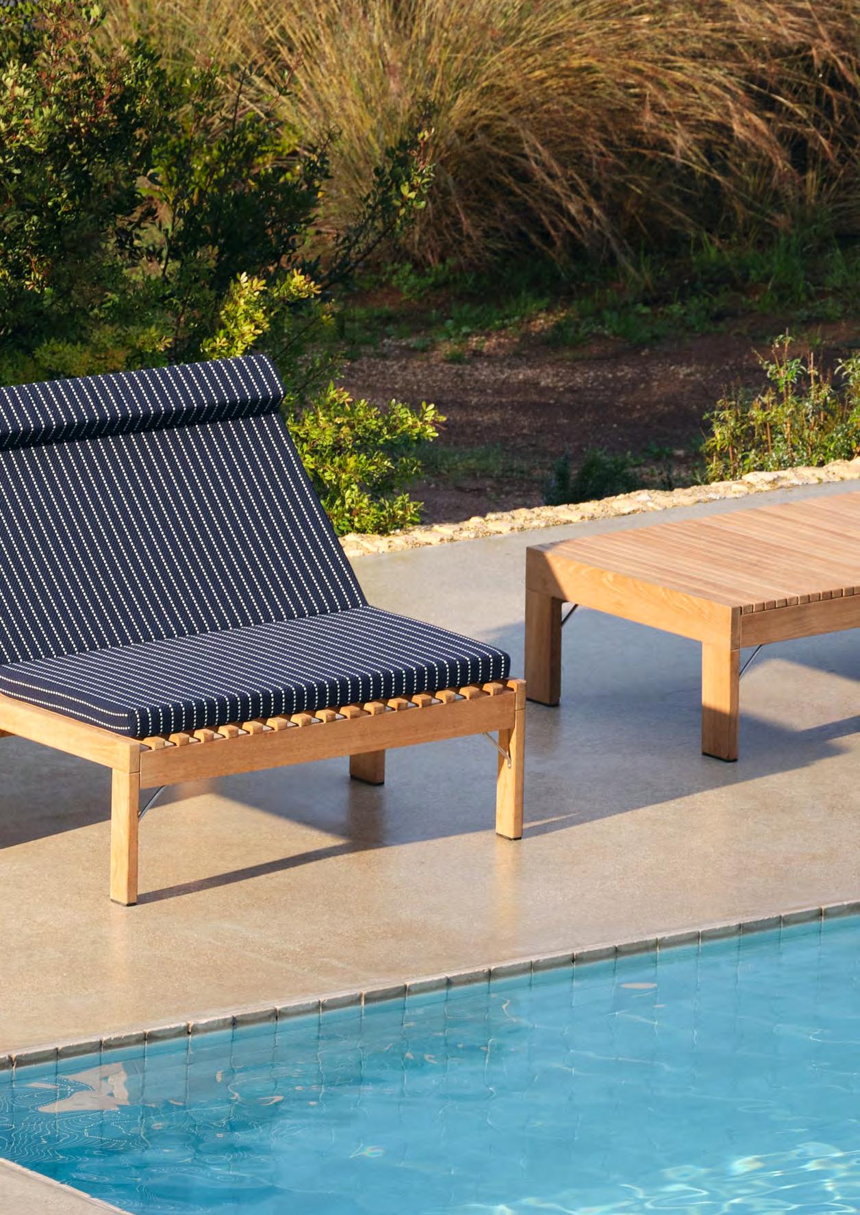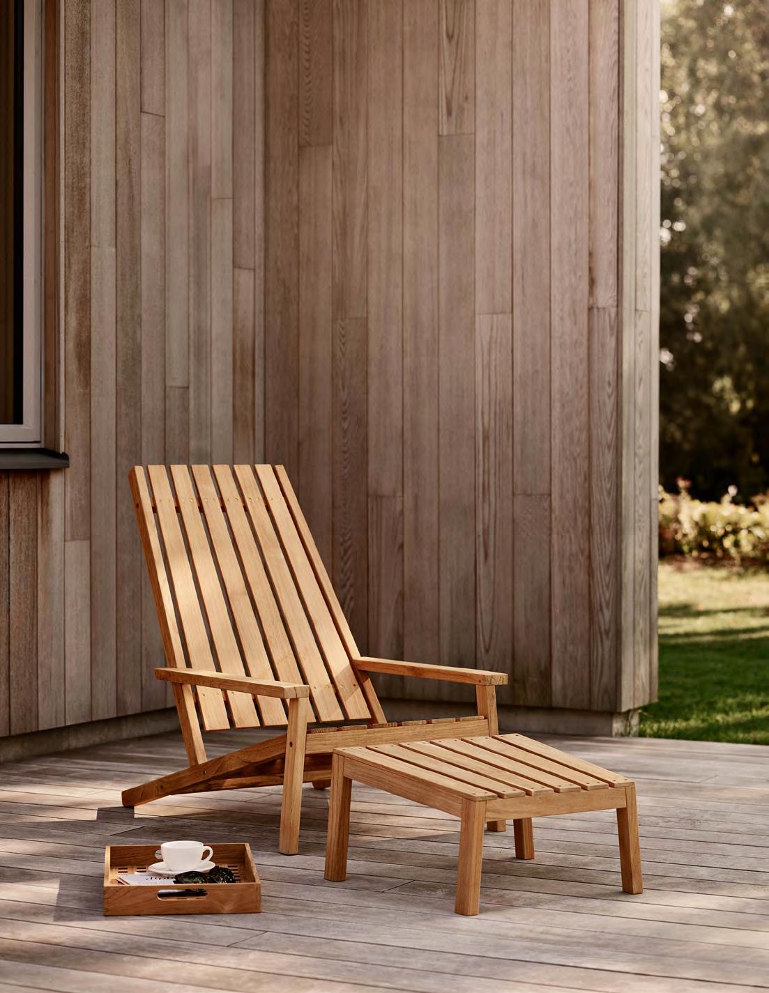 Crafted with comfort, quality and durability in mind, Between Lines deck chair and stool have a restful expression, perfect for enjoying life slowly in the great outdoors. Designed in collaboration with Danish designer Stine Weigelt.