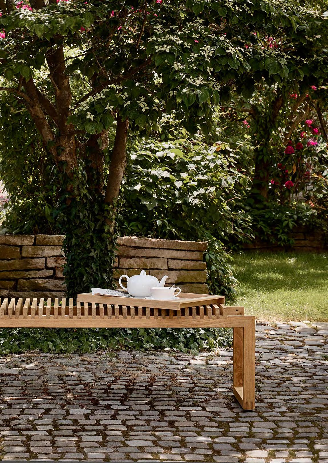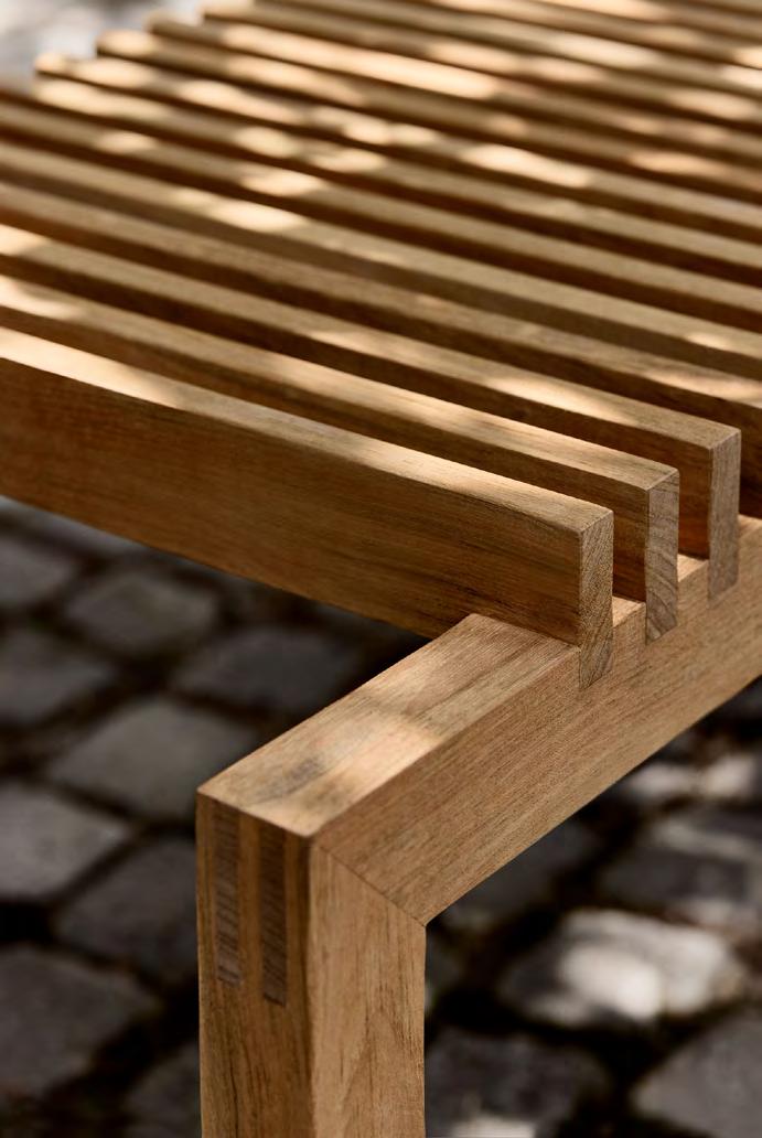 The iconic Cutter bench and stool in teak are minimalistic, functional and eyecatching designs for everyday outdoor and indoor use. Designed in collaboration with Danish designer, Niels Hvass.